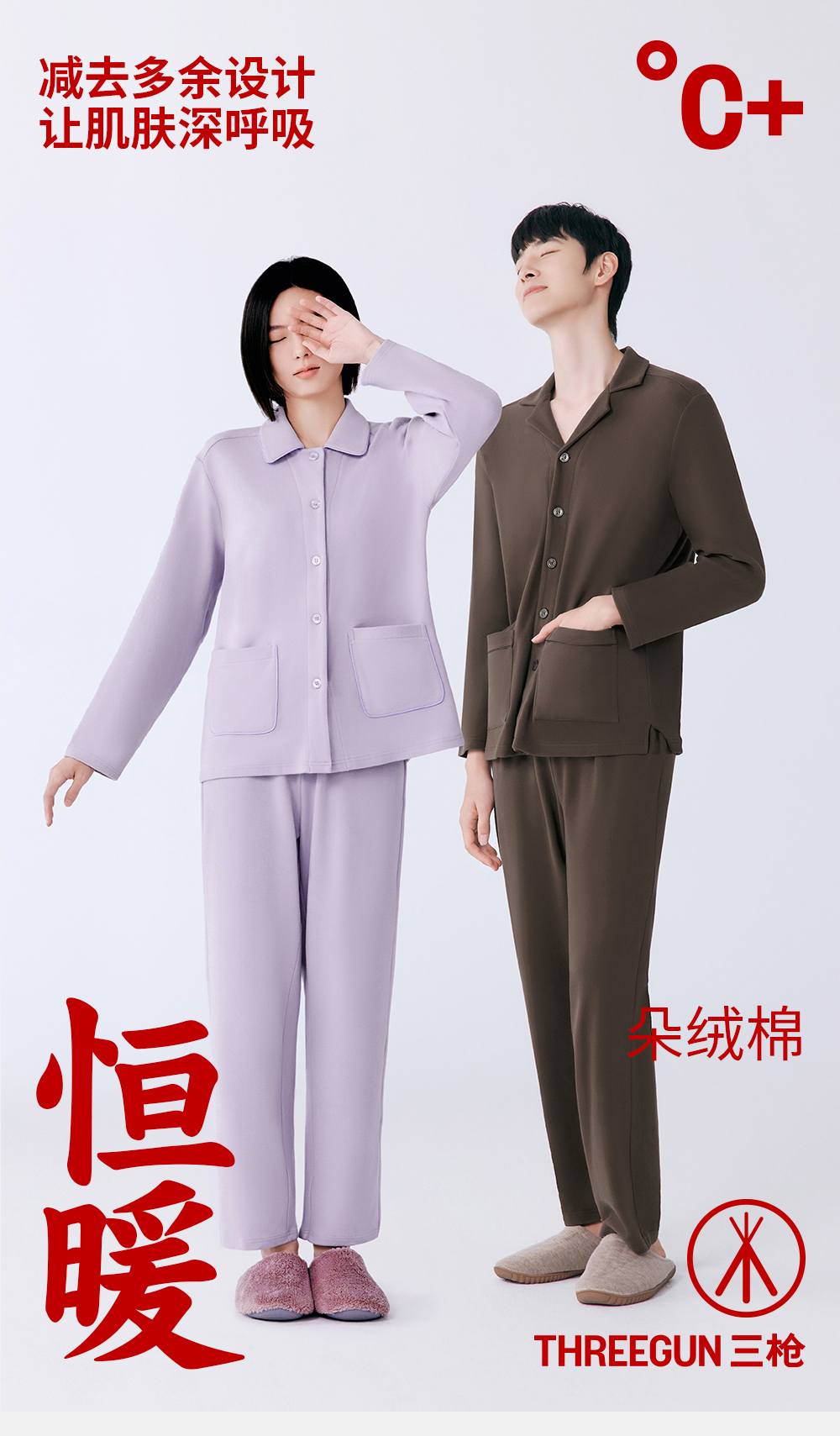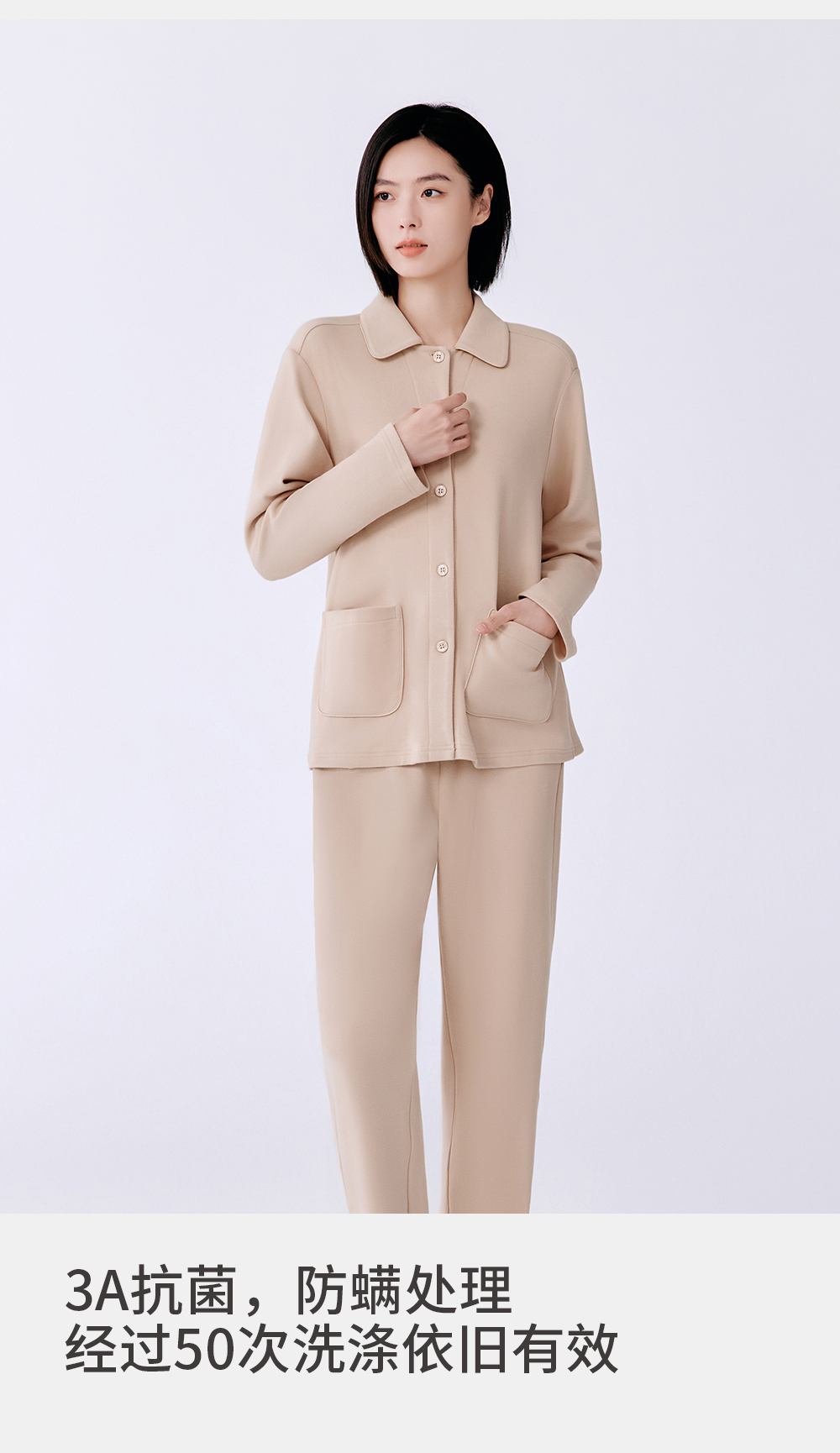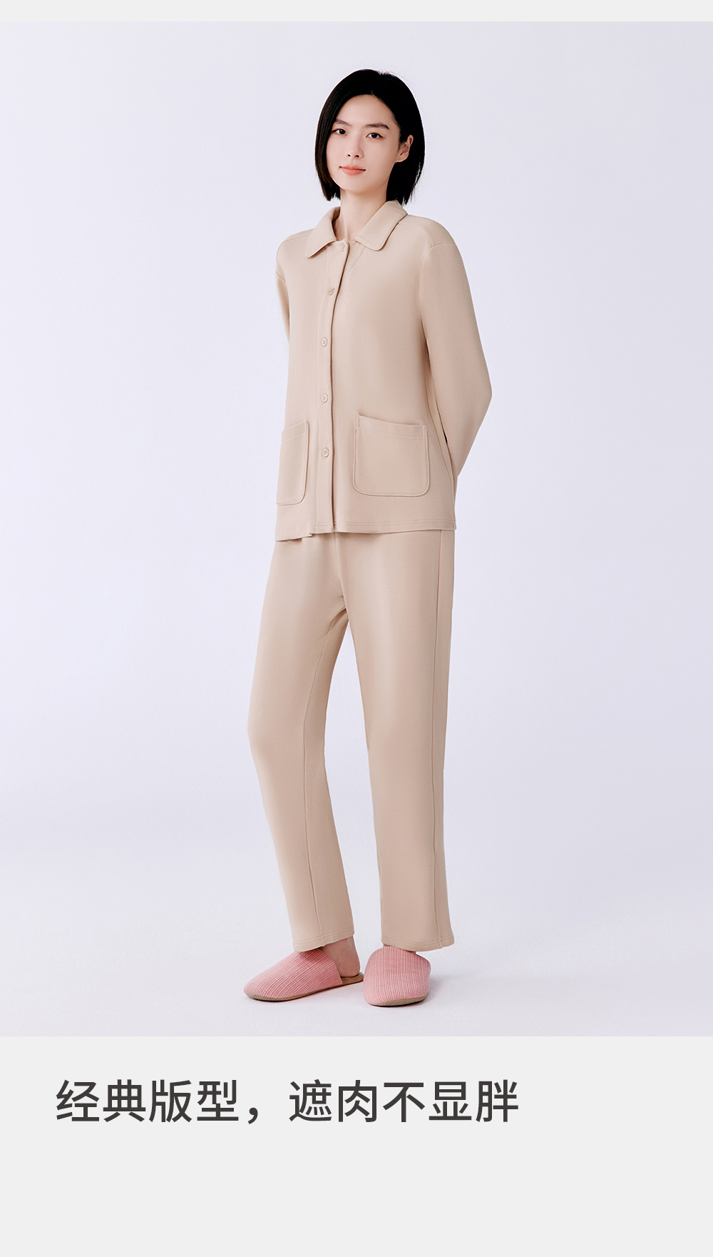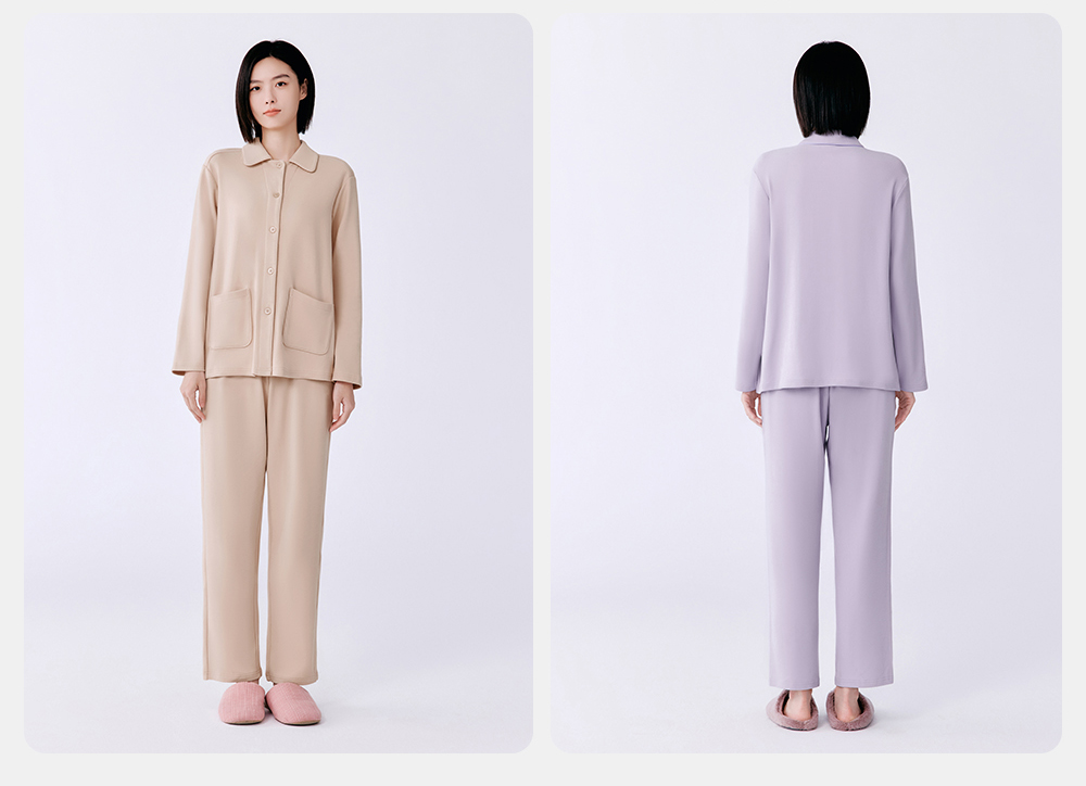 Threegun三枪 朵绒棉翻领开襟女士家居套-T80088D02