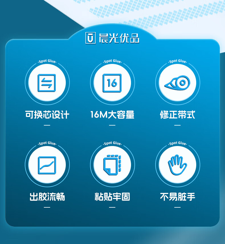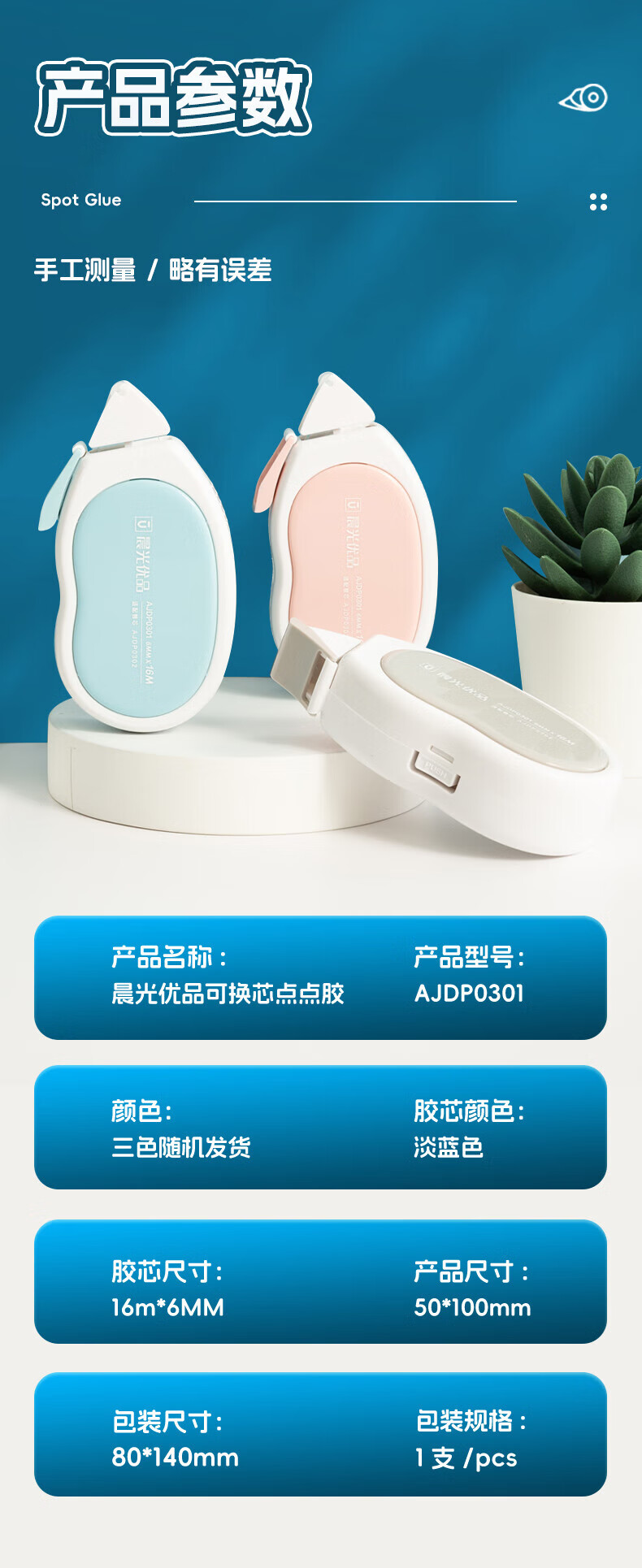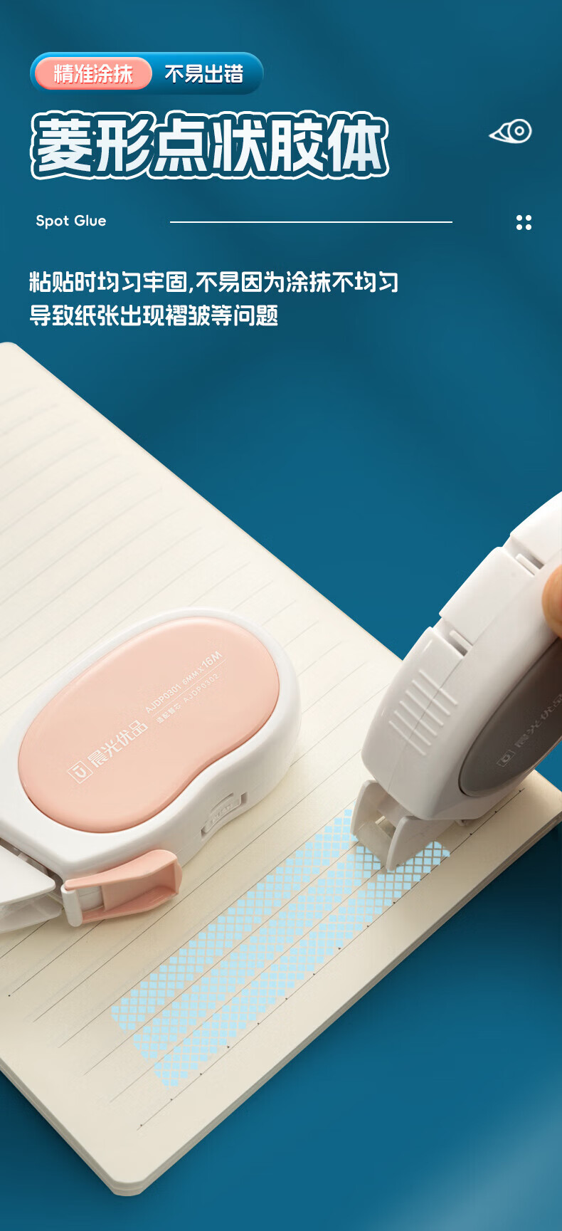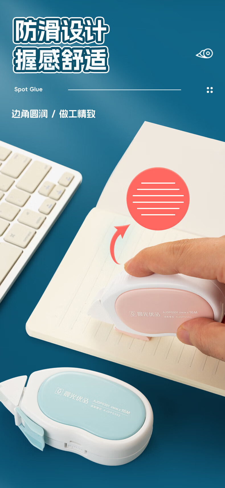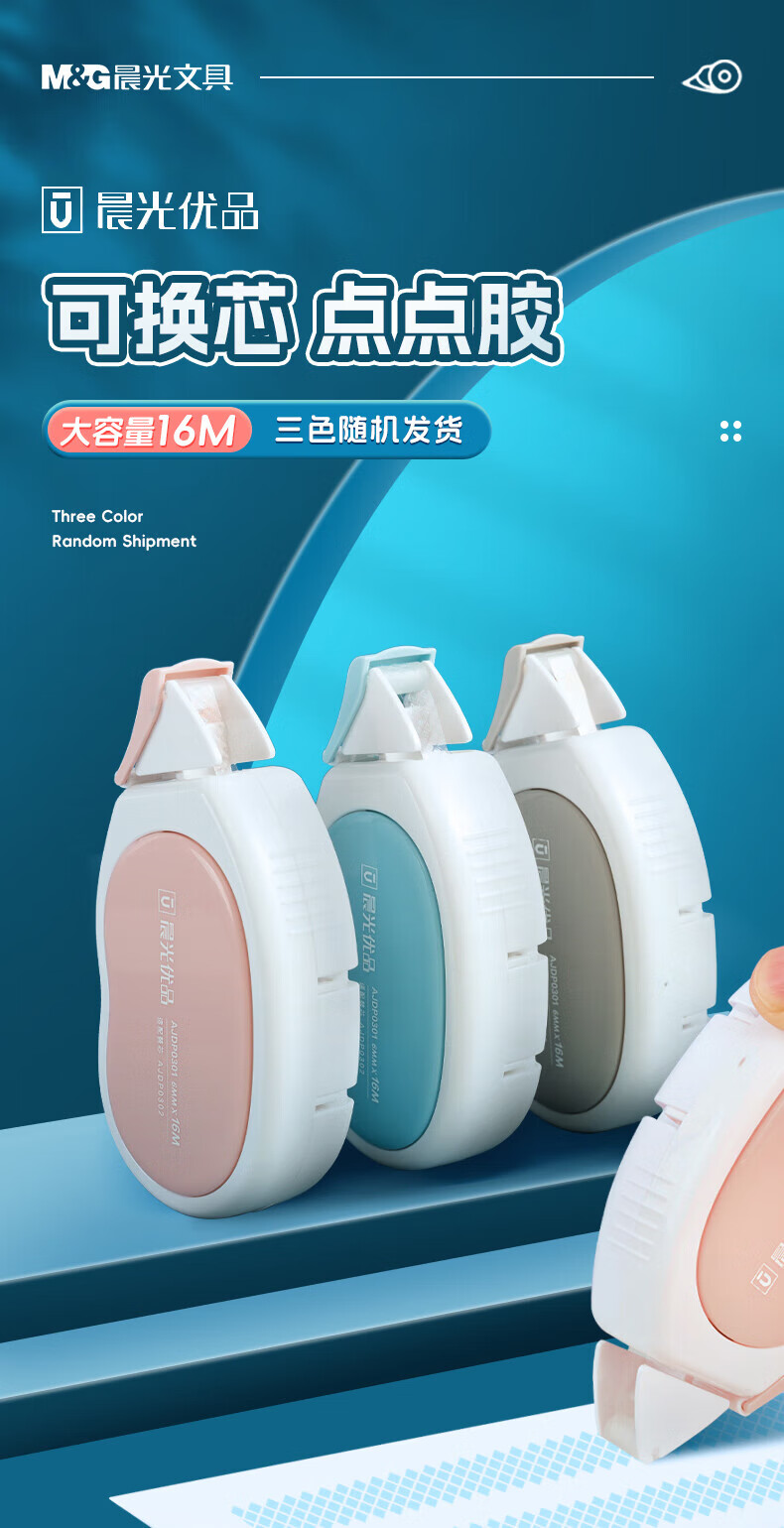 AJDP0301晨光可换芯点点胶优品蓝16M 学生创意手工手账diy胶带办公文具