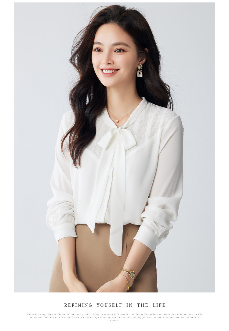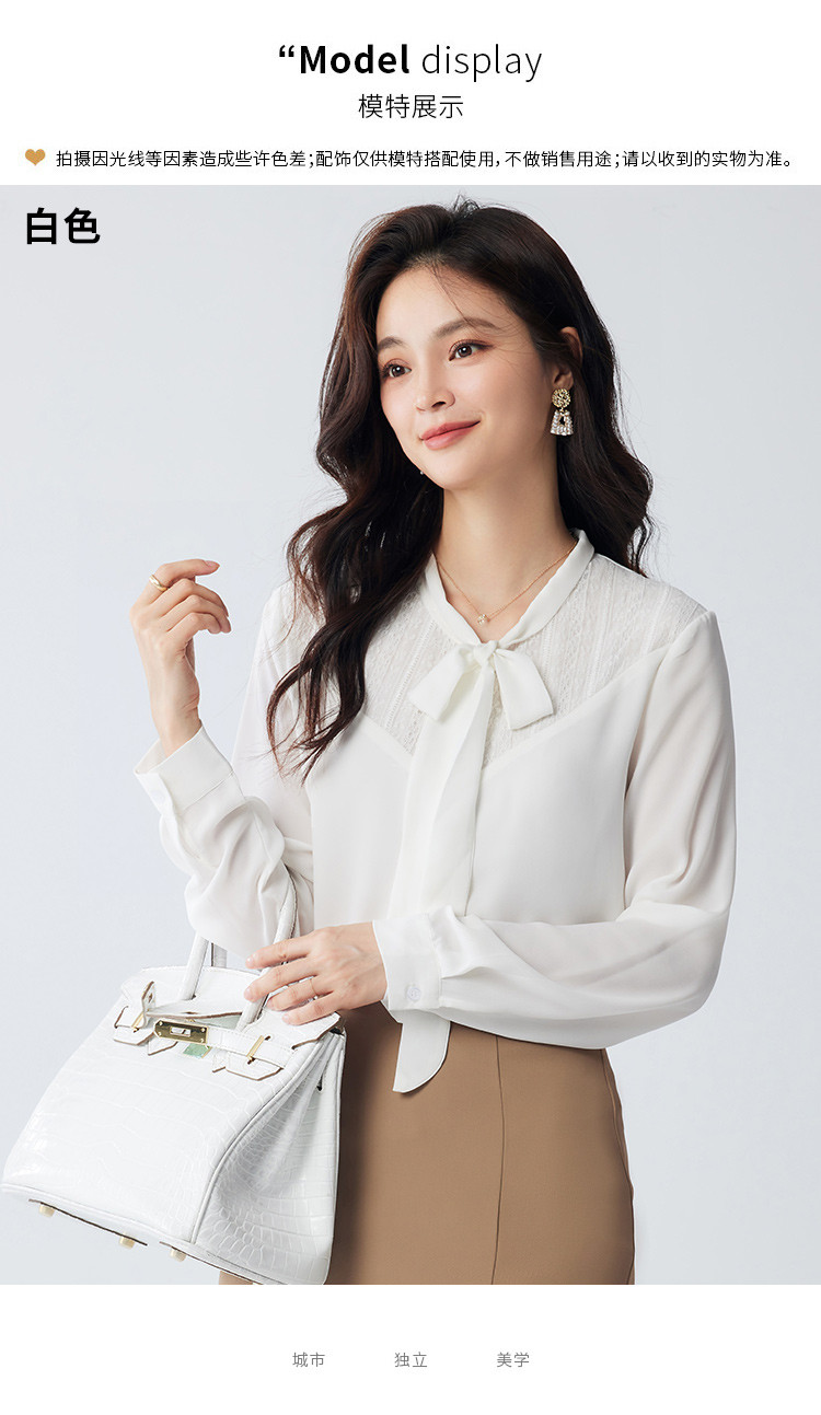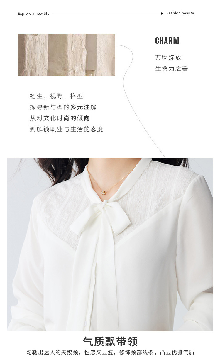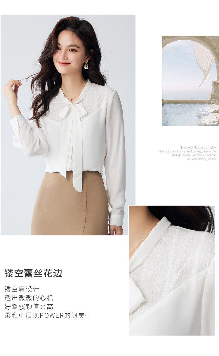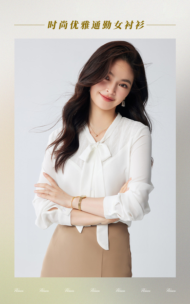 【气质飘带领】罗蒙女式长袖衬衫亲肤舒适简约大方优雅时尚开衫衬衫女