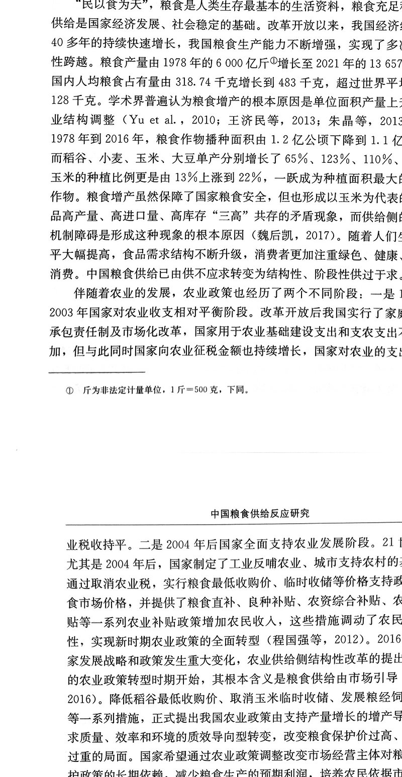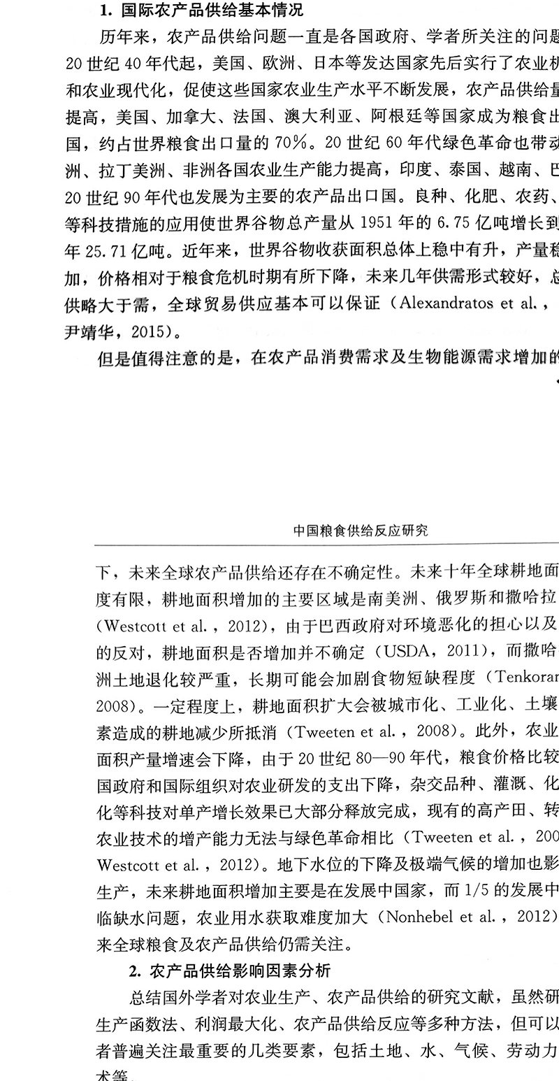 中国粮食供给反应研究 王晨,王济民 中国农业 小麦 水稻 29905