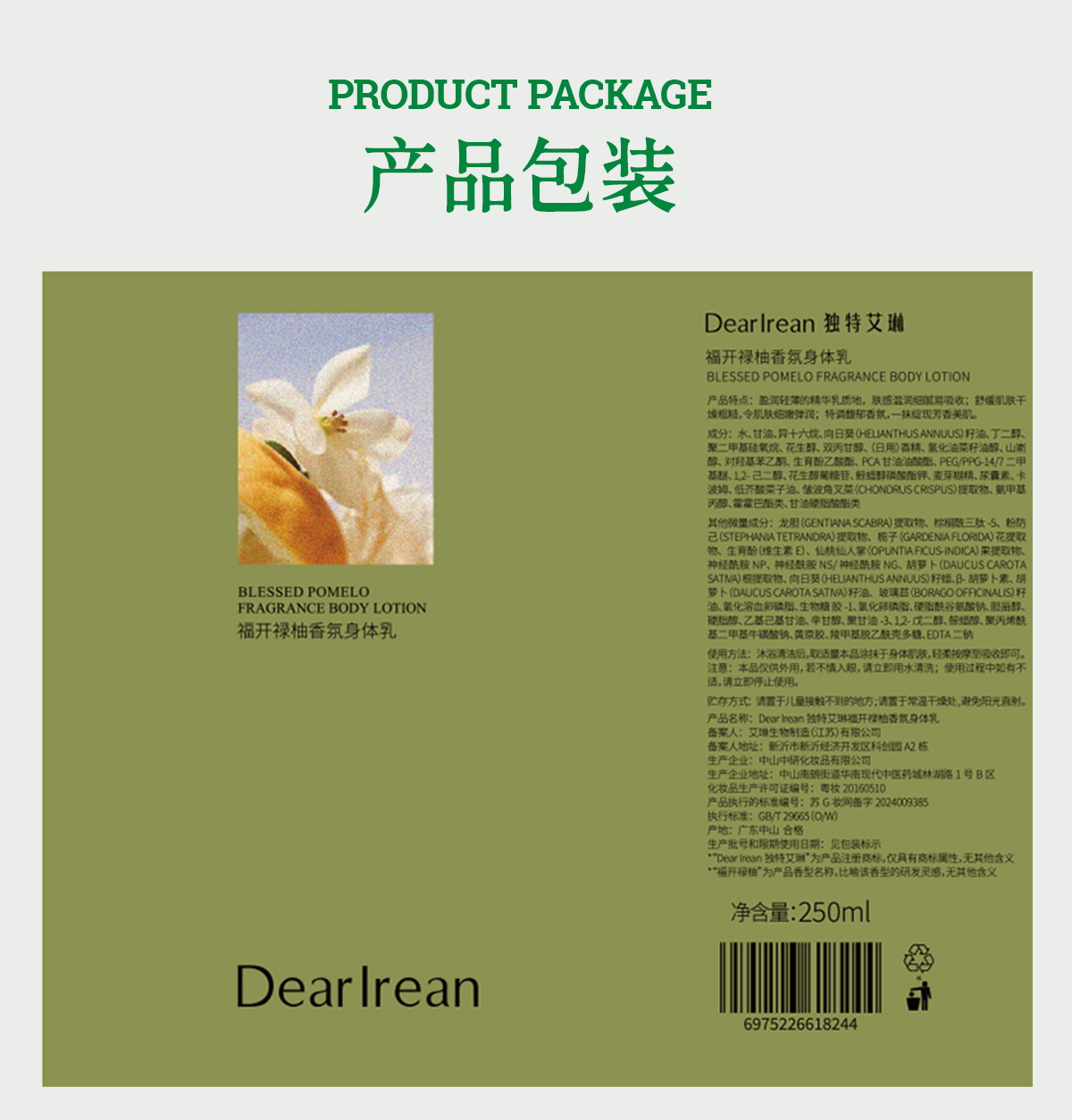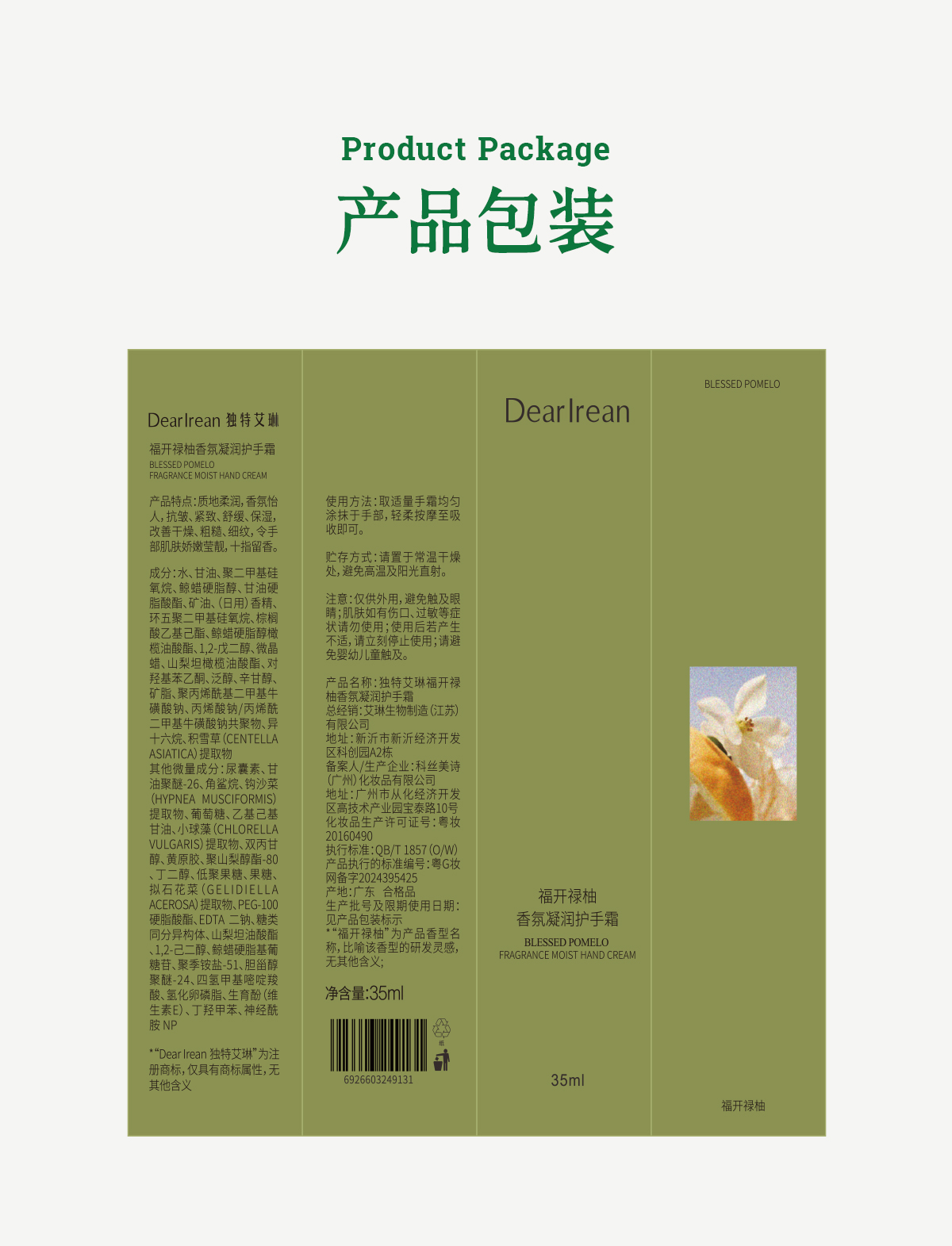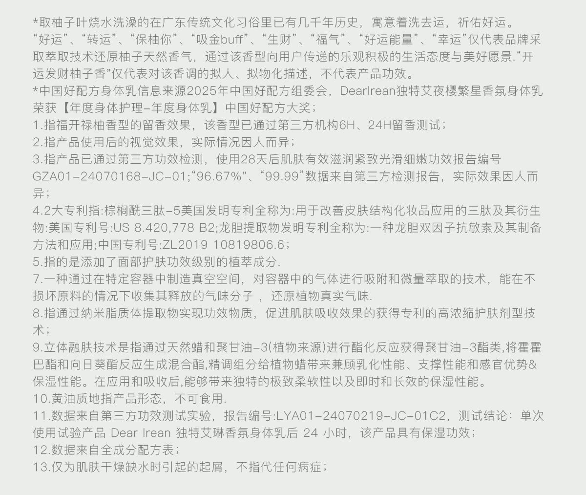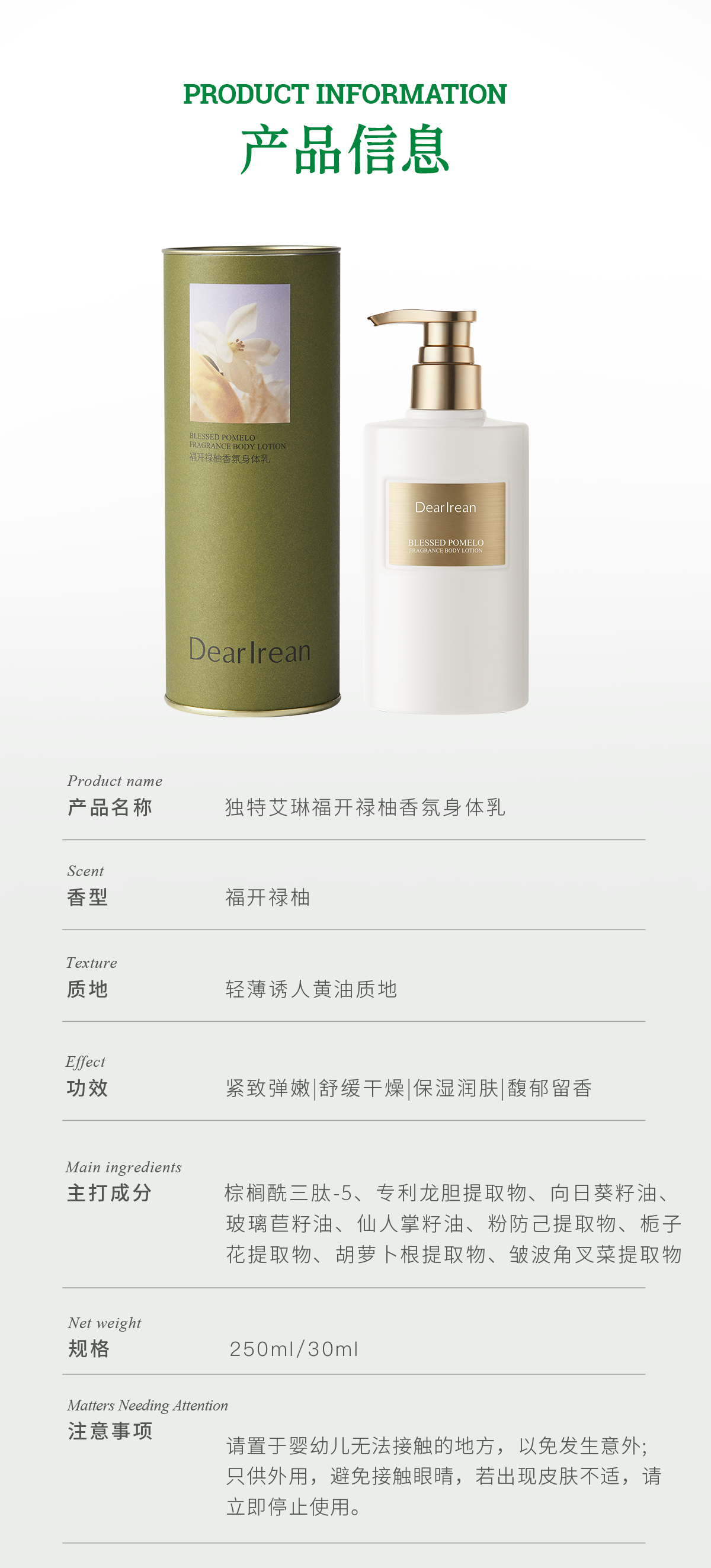 【有钱花联名】DearIrean 独特艾琳新品福开禄柚香氛系列护手霜/沐浴露/身体乳福开禄柚发财香