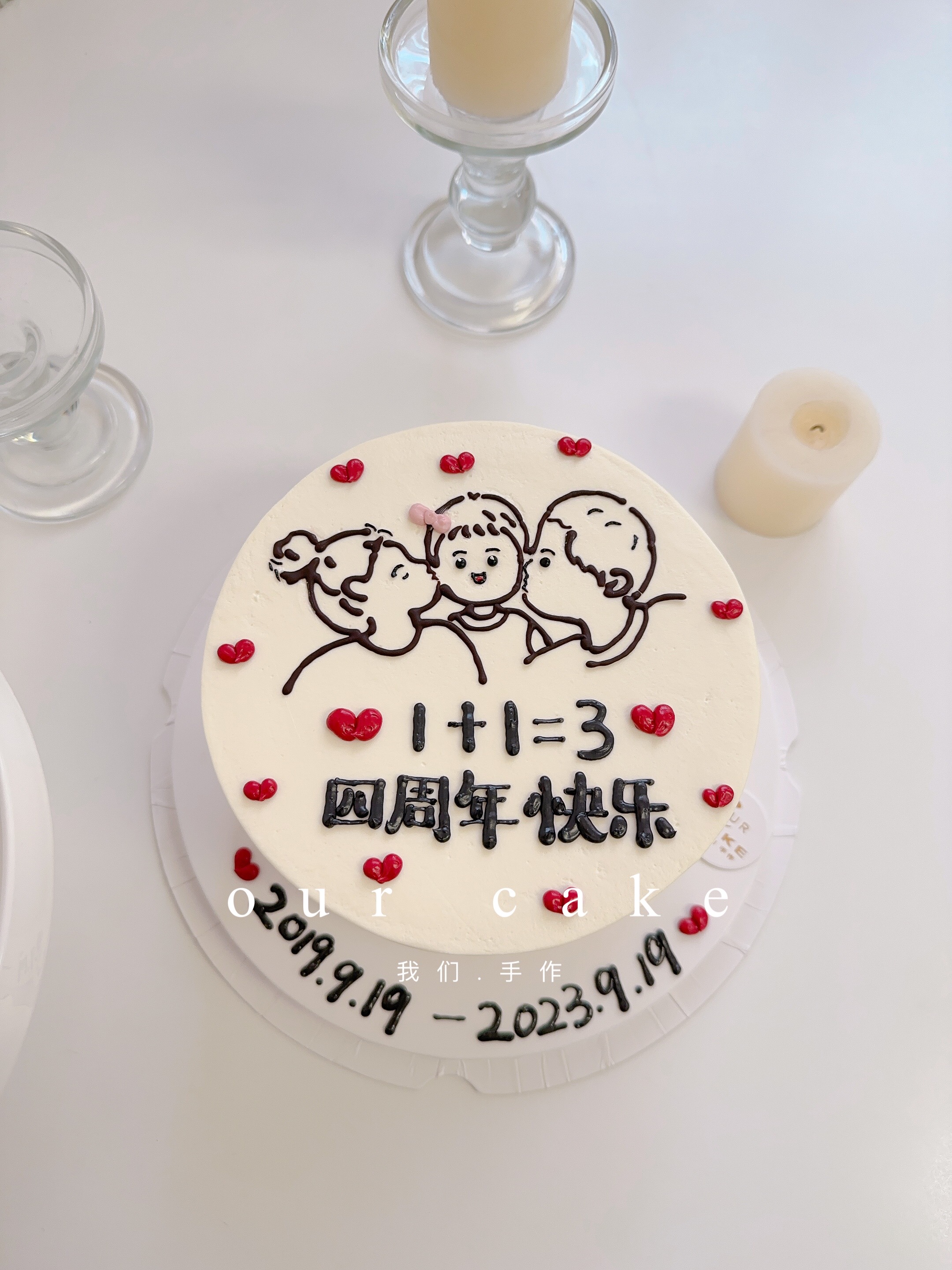简笔画一家纪念日蛋糕-低糖处理无添加
