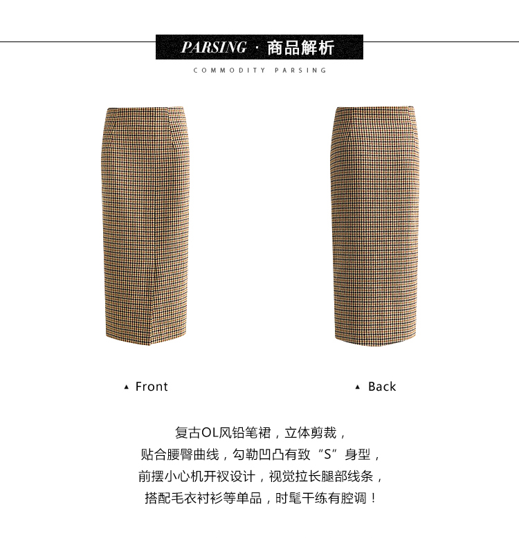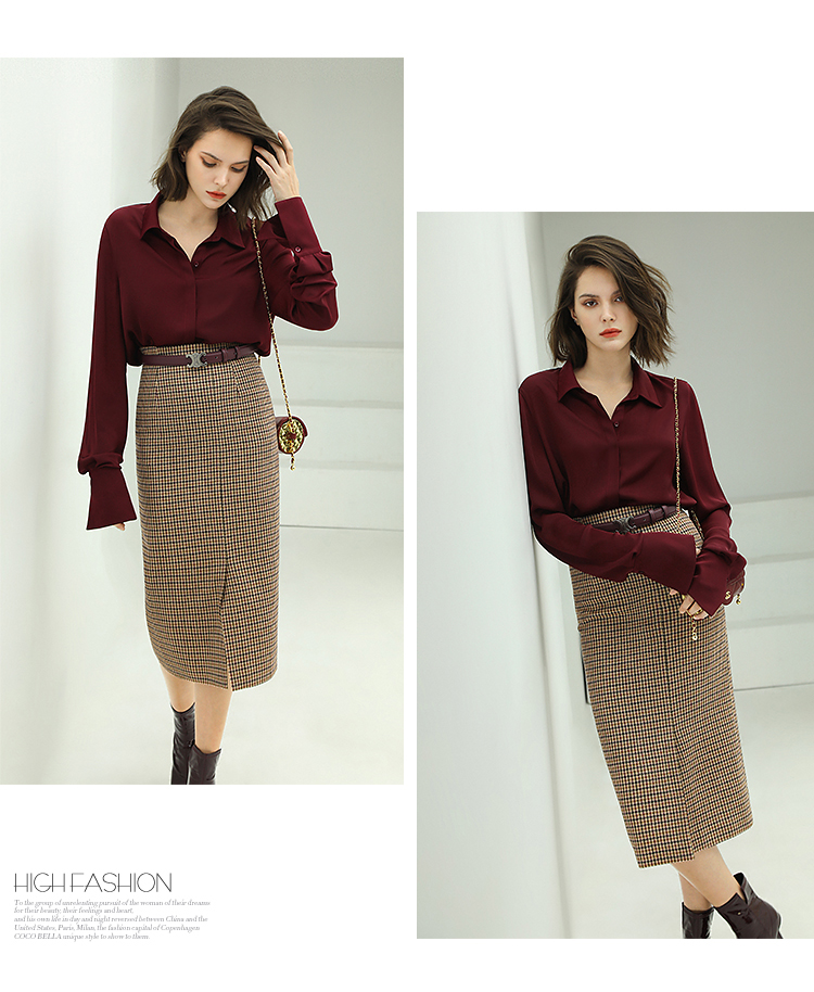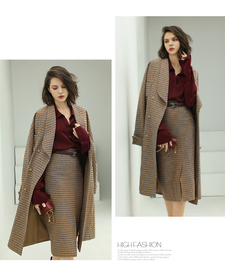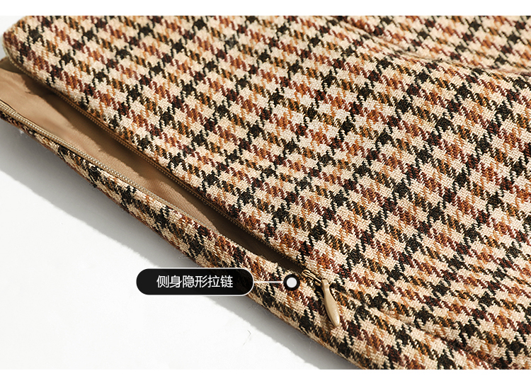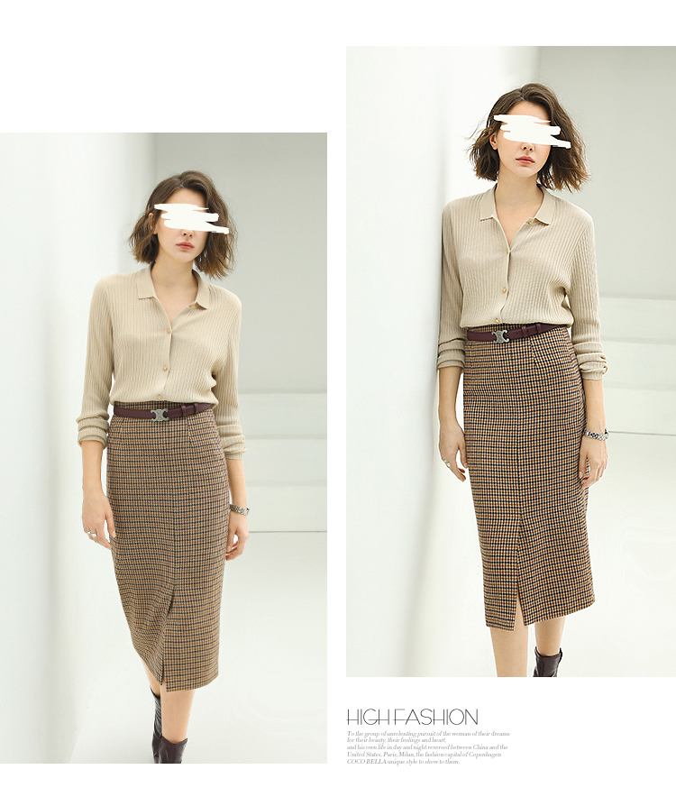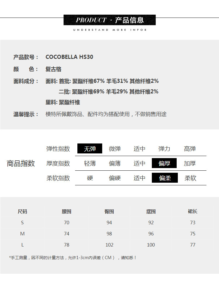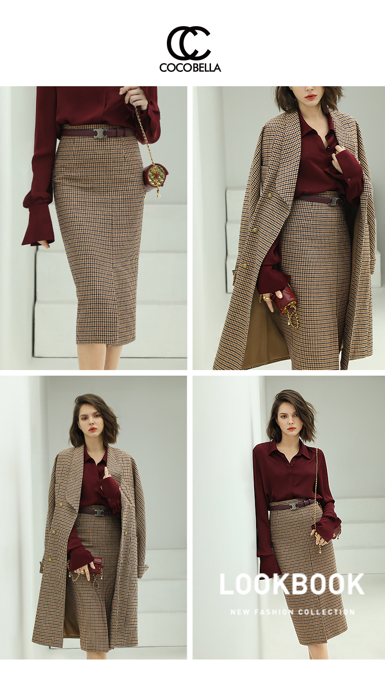 COCOBELLA复古英伦格纹羊毛半身裙中长款通勤半裙HS30