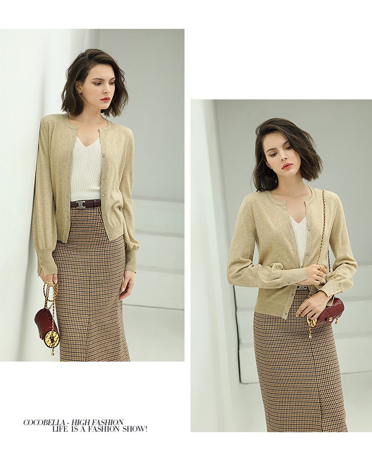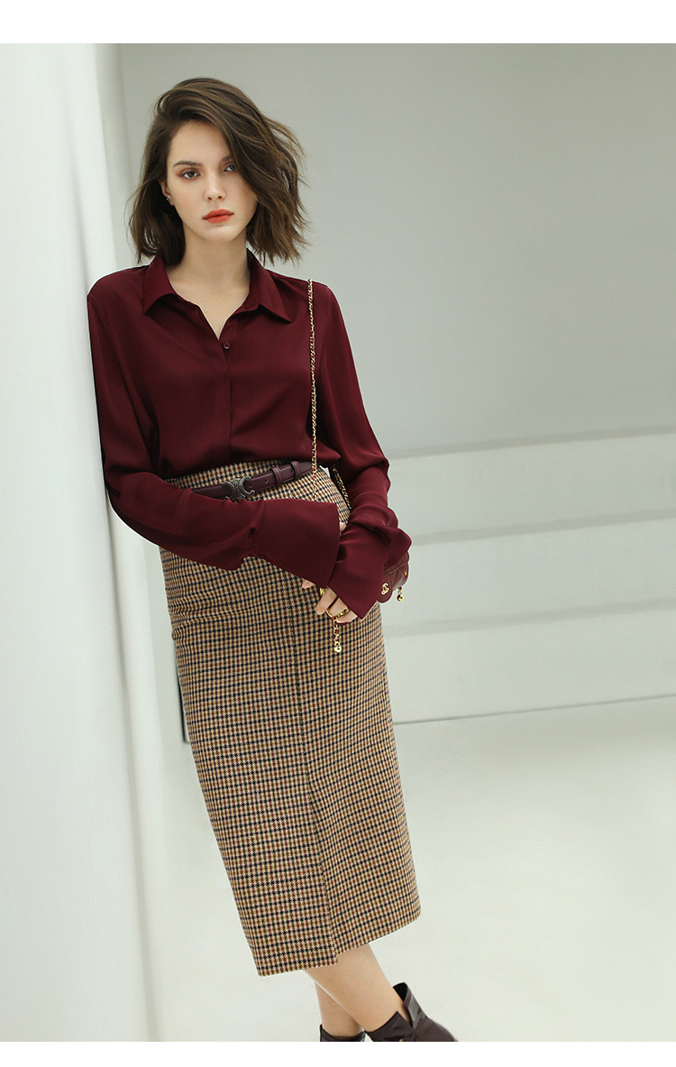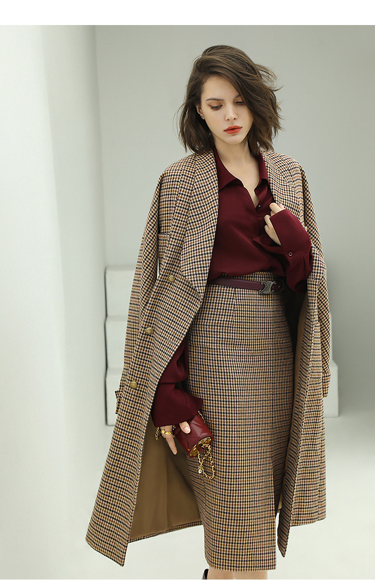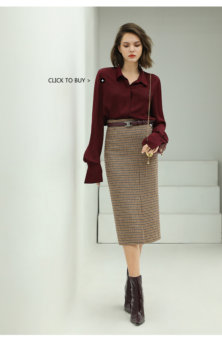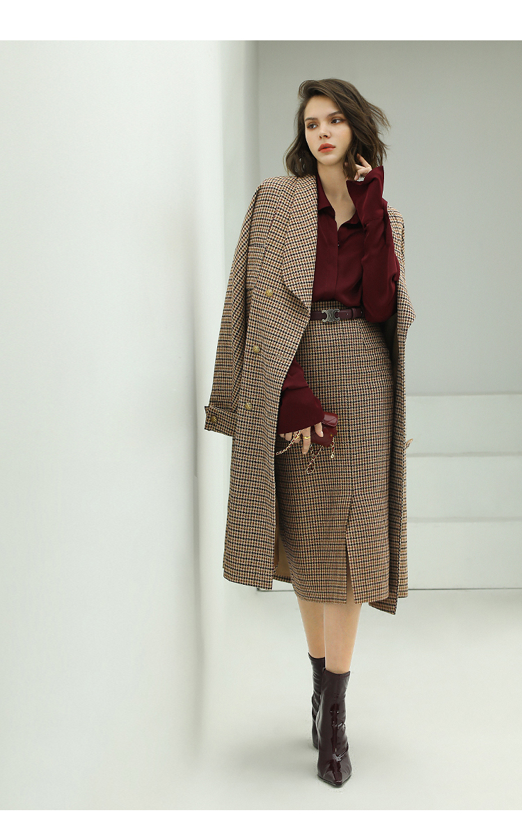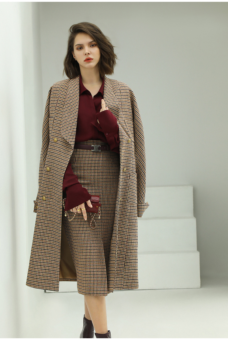 COCOBELLA复古英伦格纹羊毛半身裙中长款通勤半裙HS30