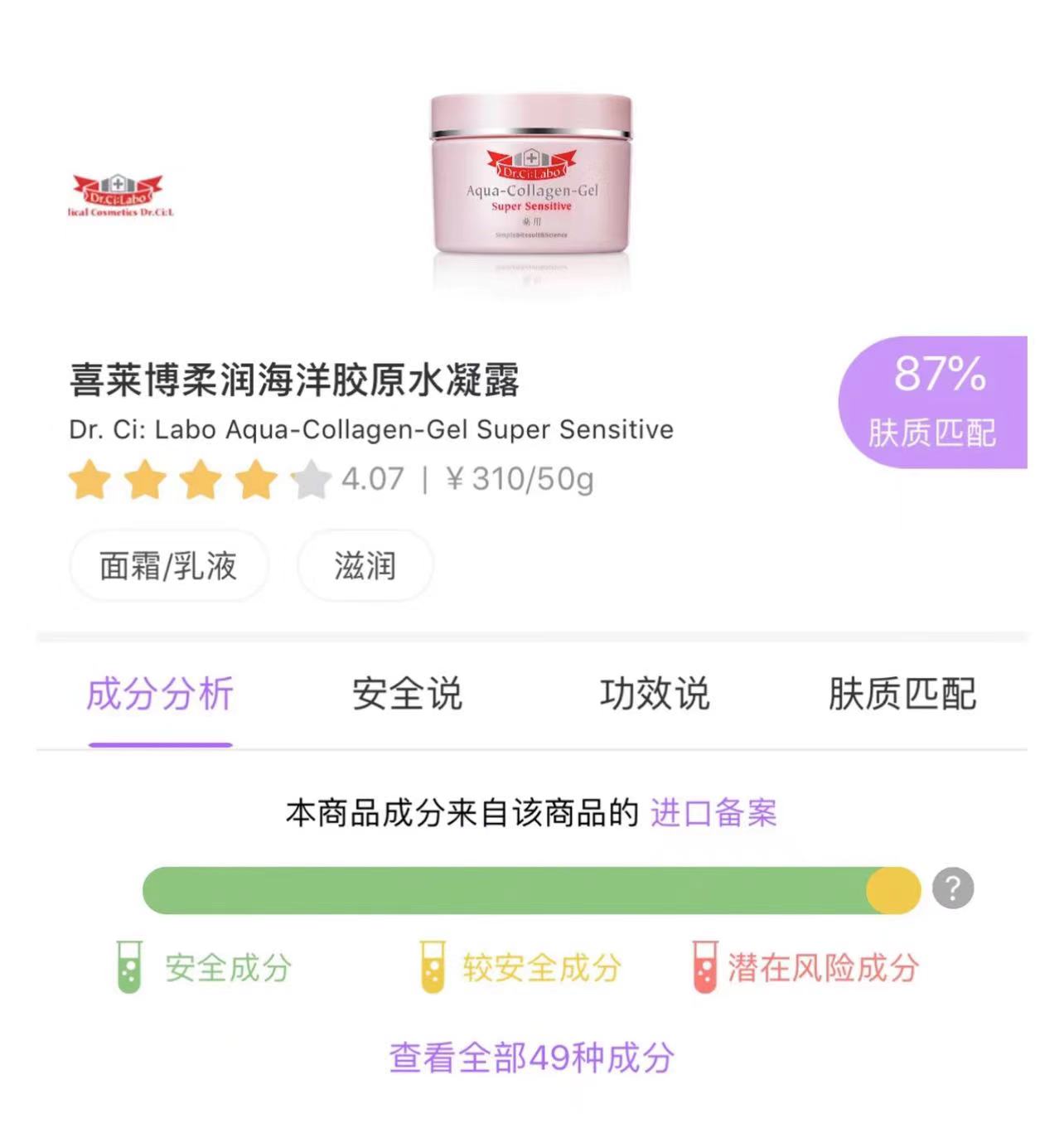 商品名称:【新品】城野医生 水凝胶原致护水漾凝霜50g