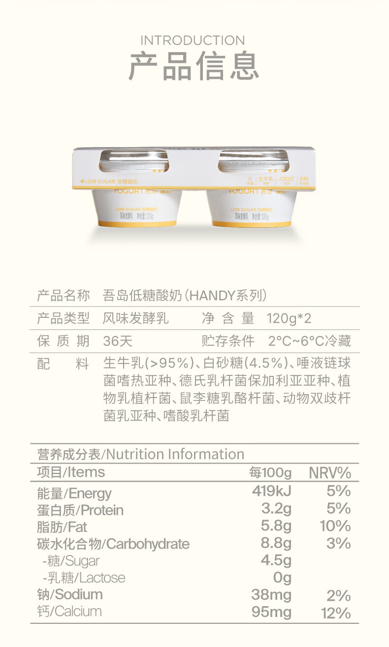 吾岛 低糖酸奶120g*2/组