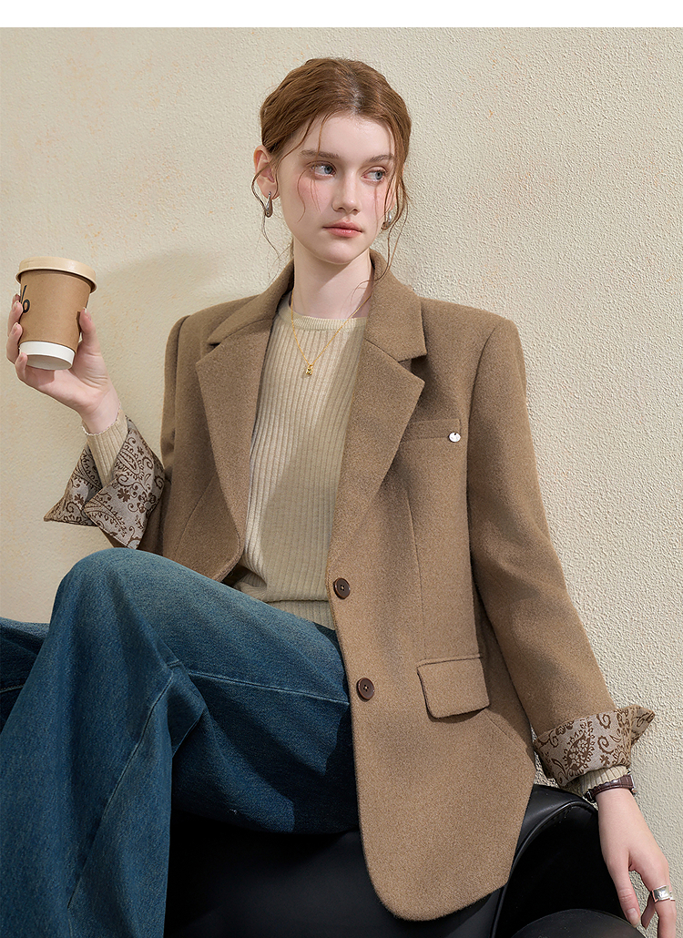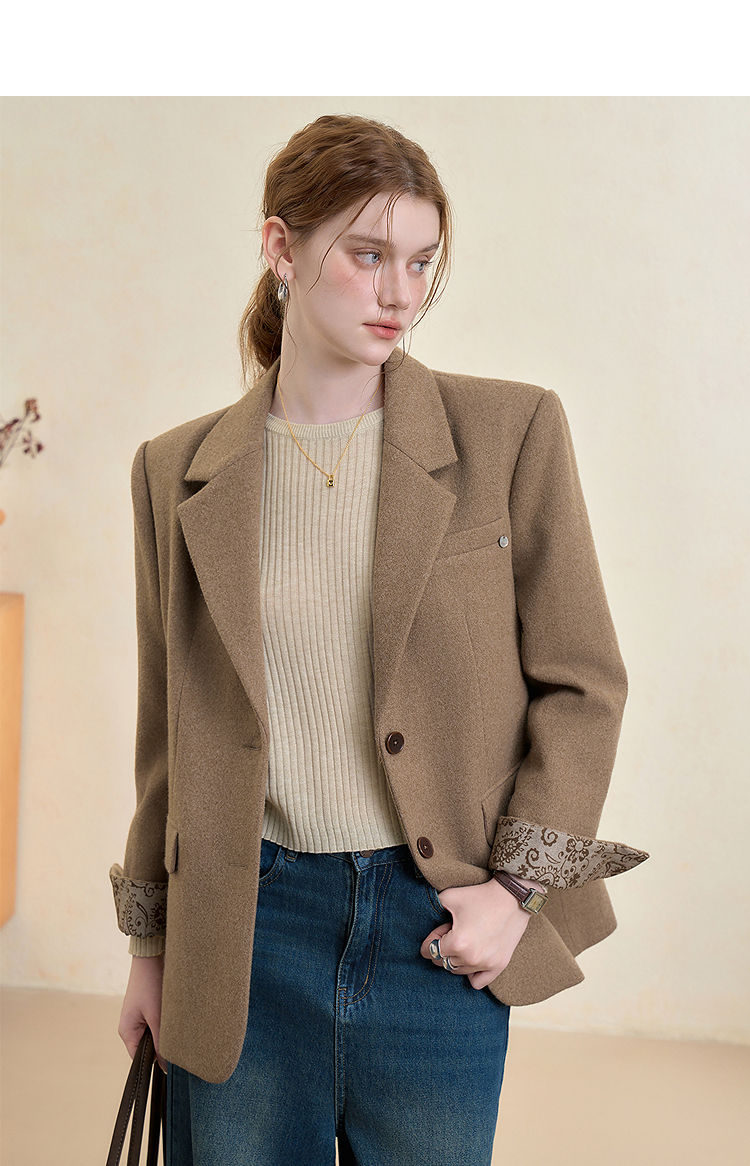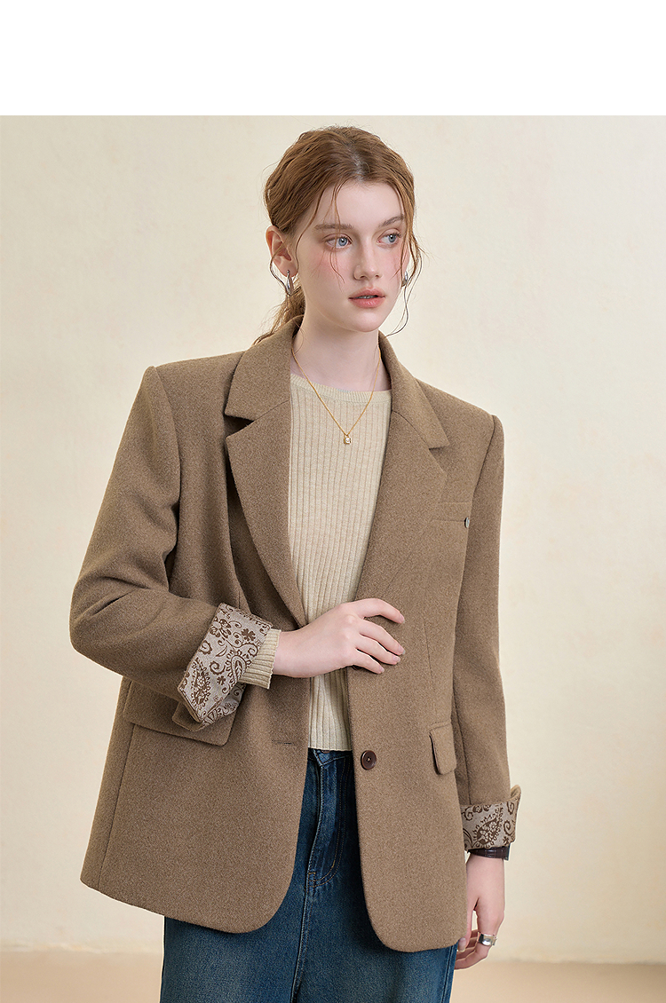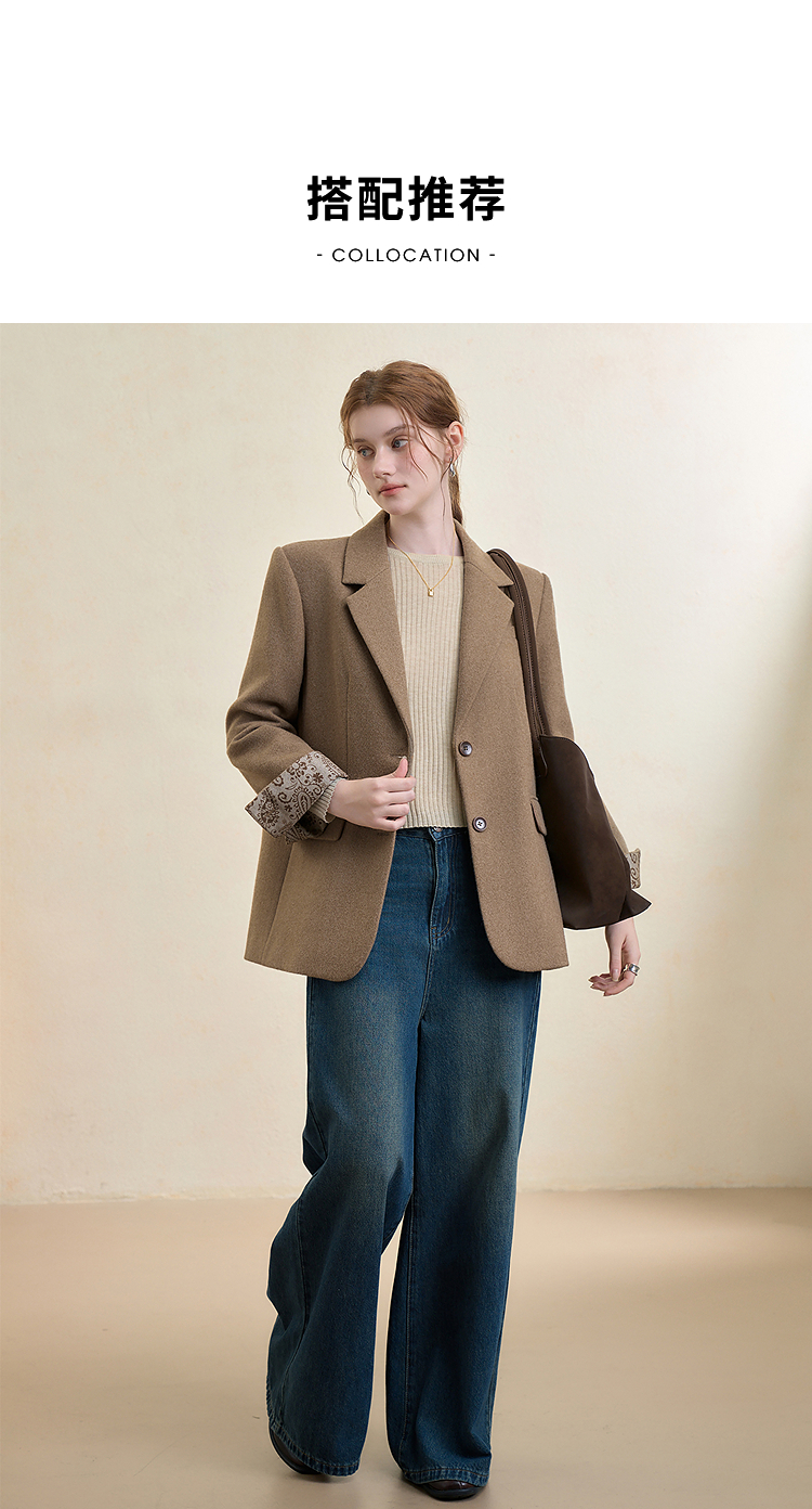 西遇英伦风复古毛呢西装外套女秋季新款气质翻领高级感西服V3655266