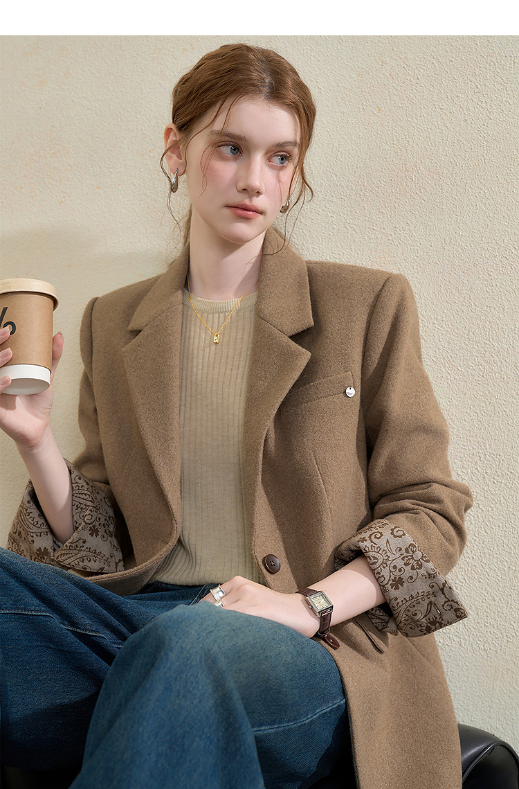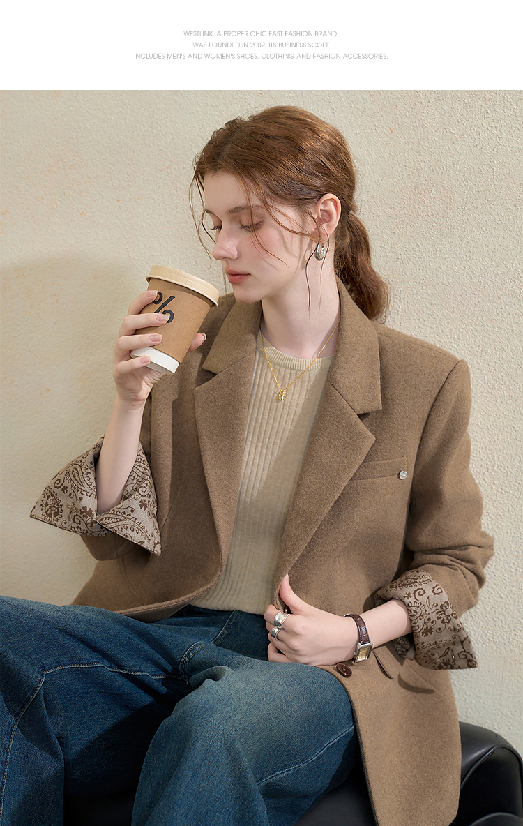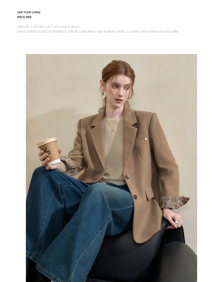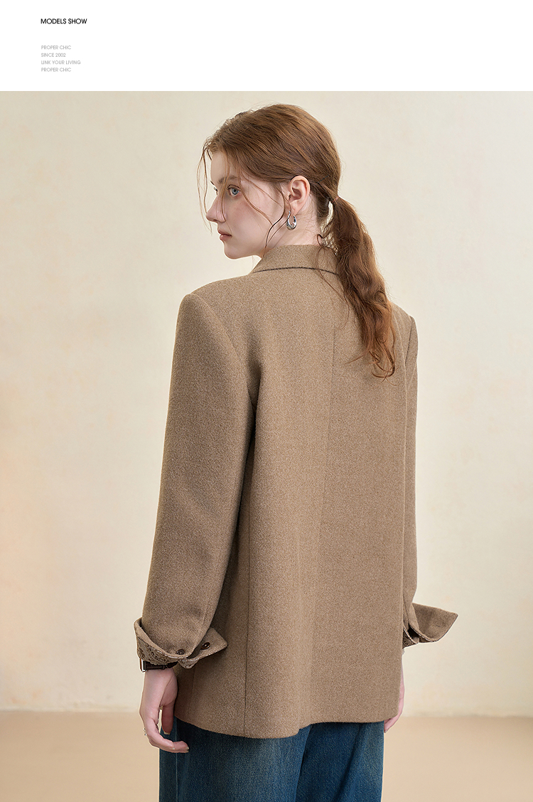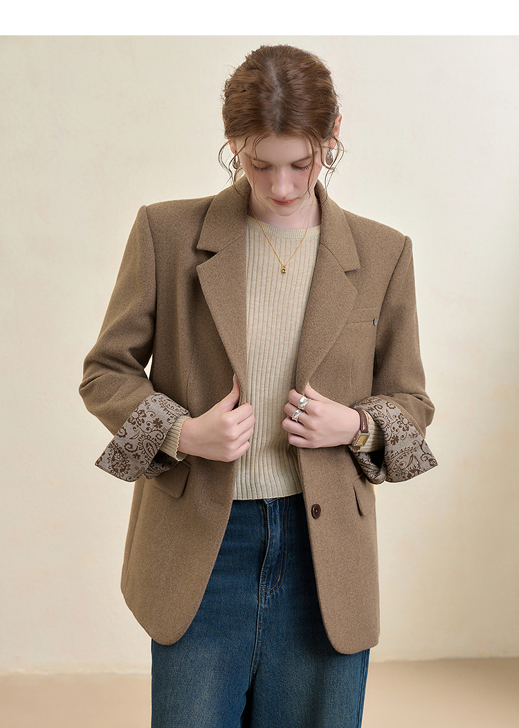 西遇英伦风复古毛呢西装外套女秋季新款气质翻领高级感西服V3655266