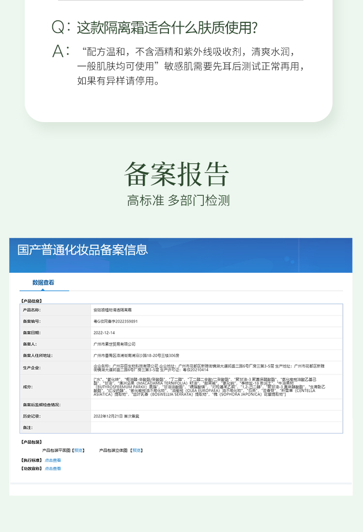 故而不能直接用防晒命名去备案,才用隔离霜命名。