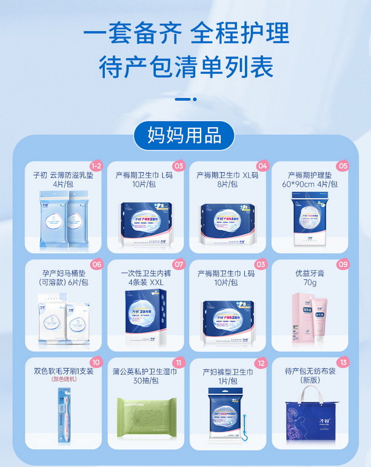 子初17件套待产包入院孕妈产后月子用品孕产妇待产护理垫防溢乳垫卫生巾
