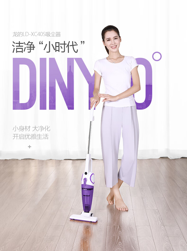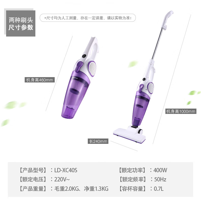 【小家电】龙的(longde)吸尘器 大功率大吸力多重过滤更持久 推杆手持二合家庭卧式吸尘器 180度灵活推刷轻松拆卸易清洗 LD-XC40S HF