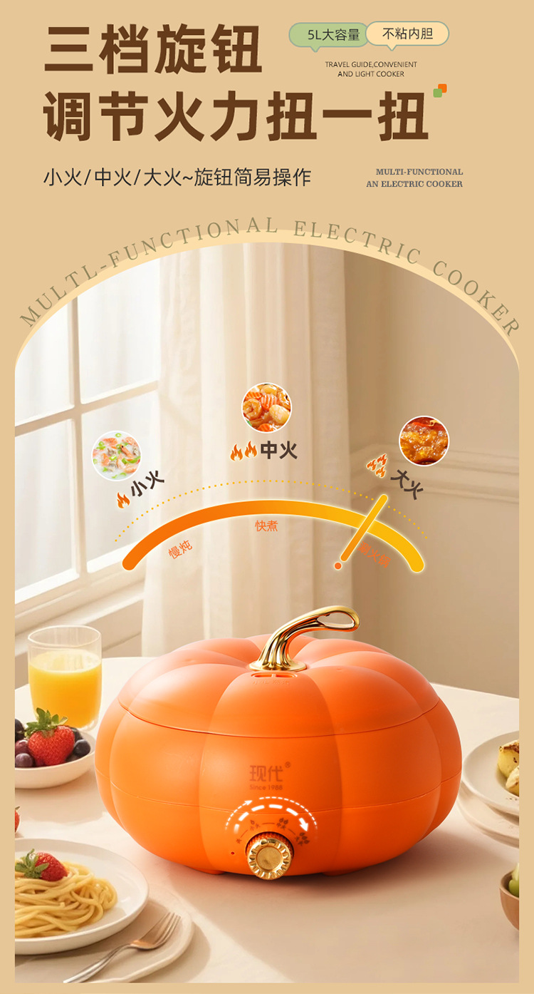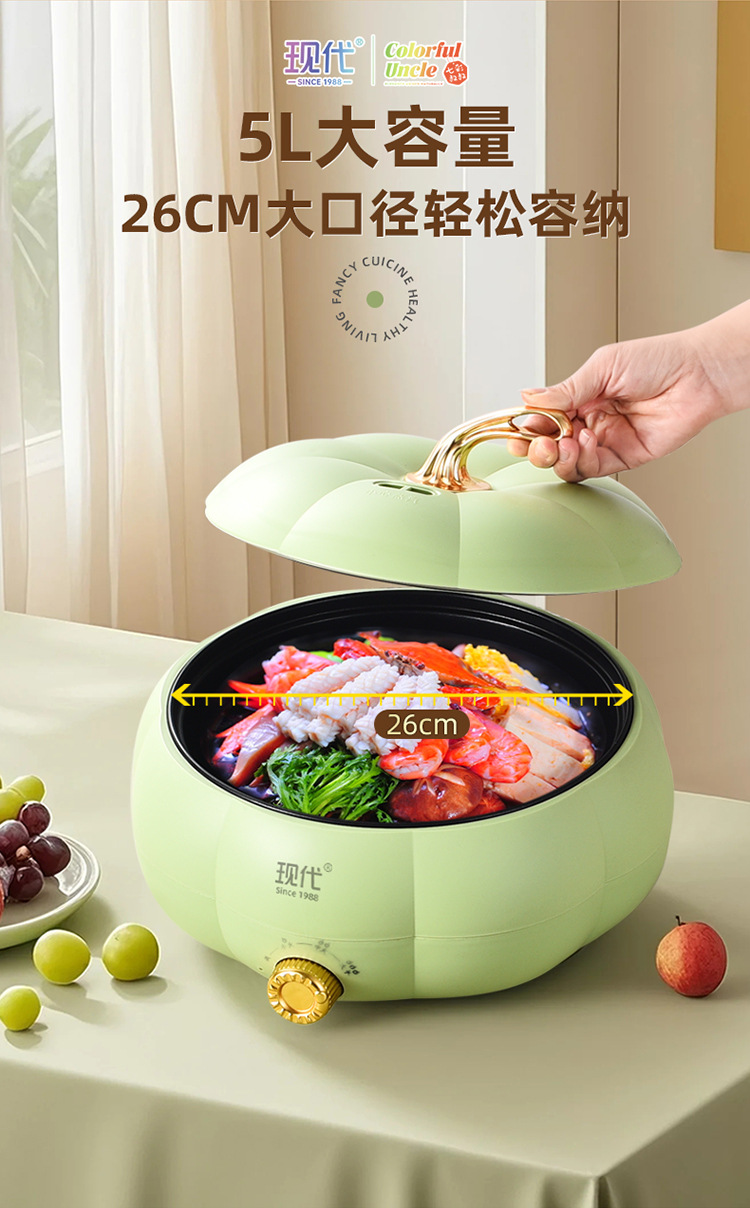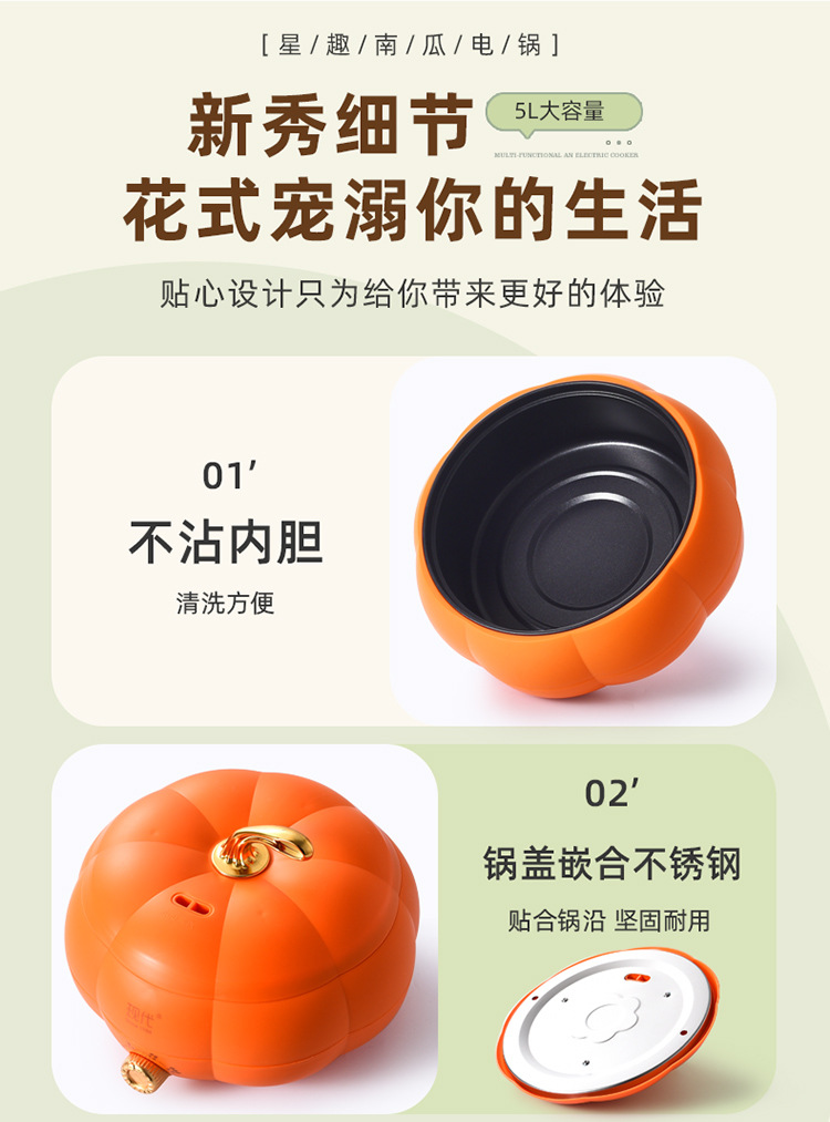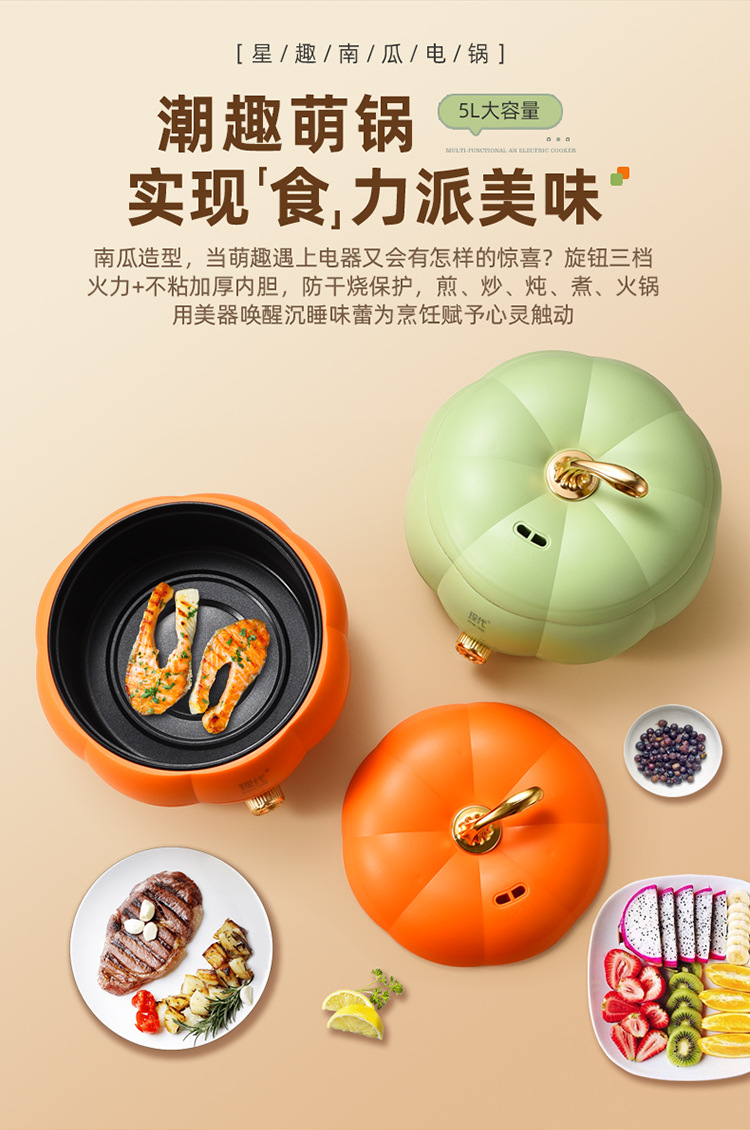 【多功能南瓜电火锅】一体电煮锅 家用不粘电锅 星趣现代5L大容量南瓜电锅
