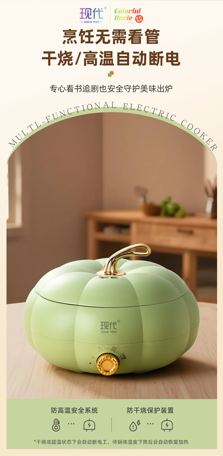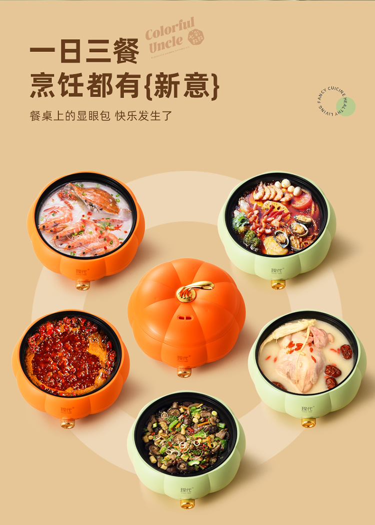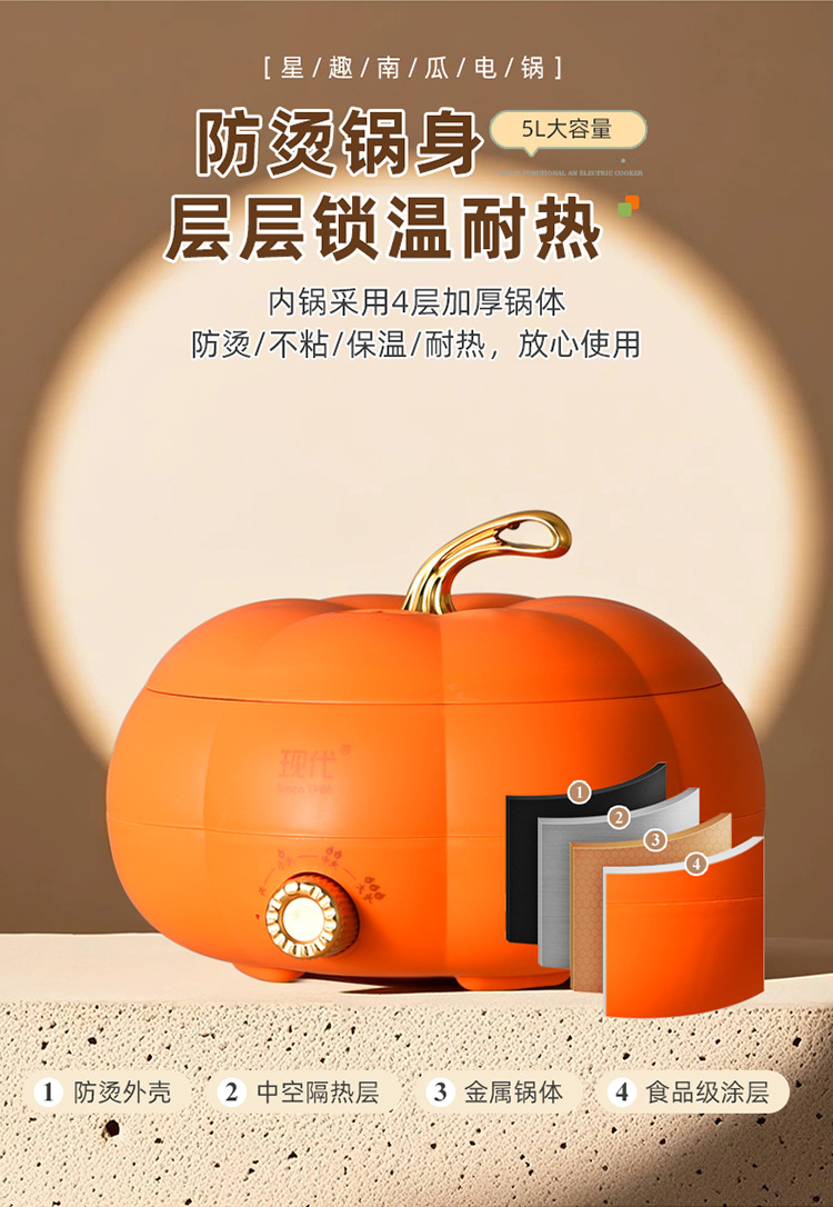 【多功能南瓜电火锅】一体电煮锅 家用不粘电锅 星趣现代5L大容量南瓜电锅