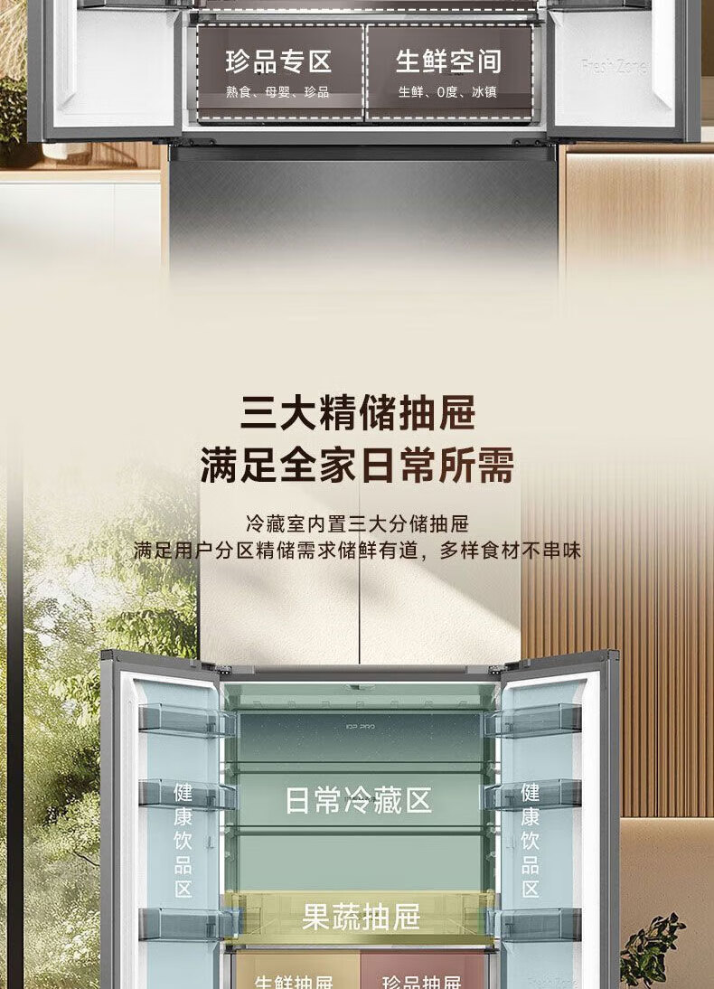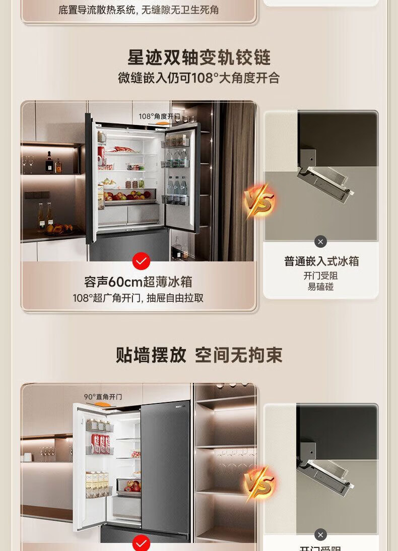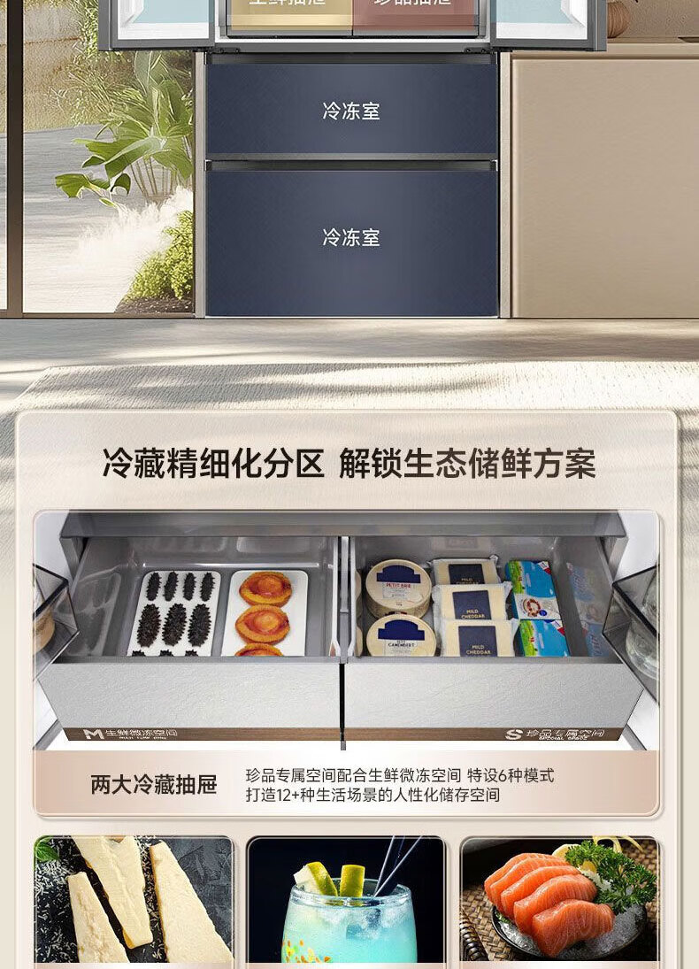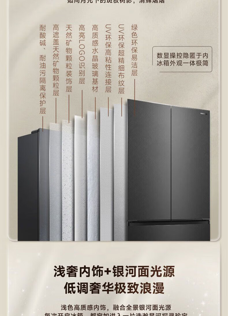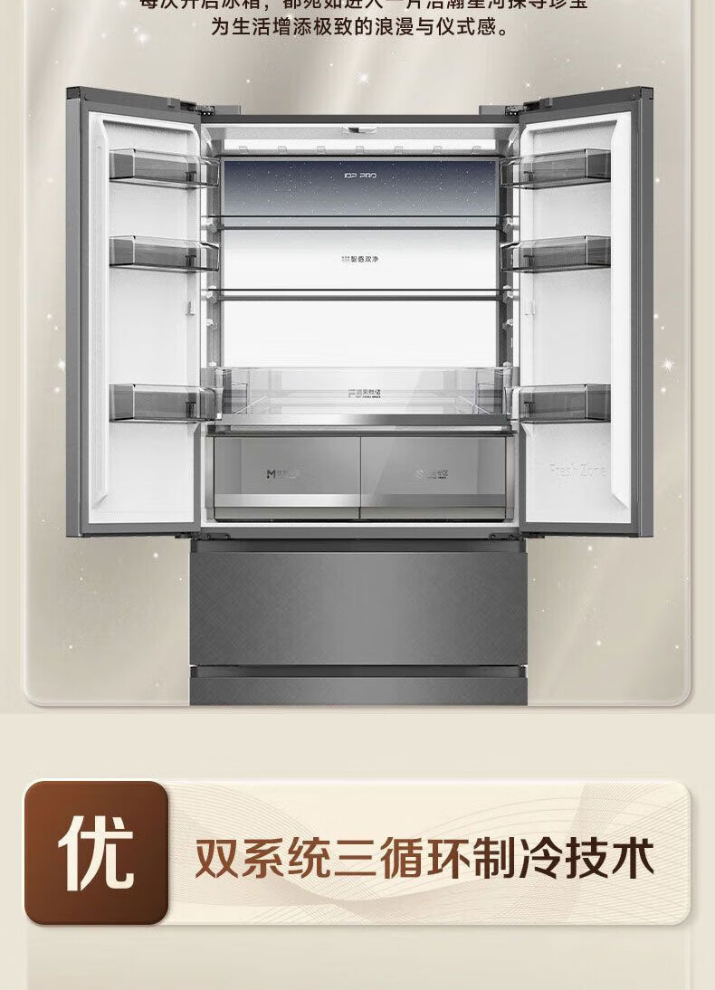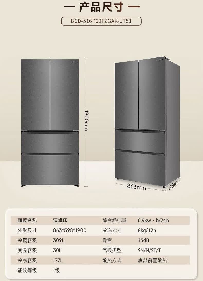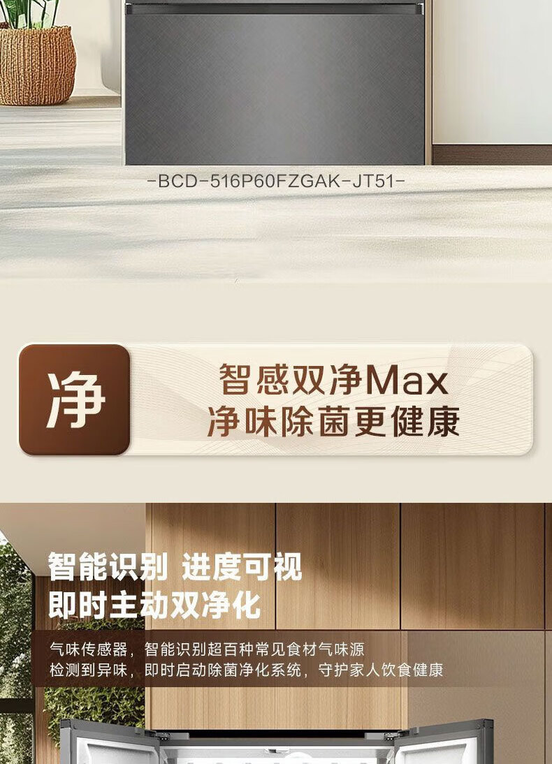 容声冰箱 516P60FZGAK-JT51 清辉印 家用大容量法式多门四门一级变频风冷无霜电冰箱