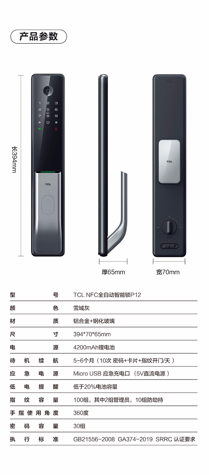 TCL-O2O指纹电子密码防盗锁防盗门铃P12 智能门锁