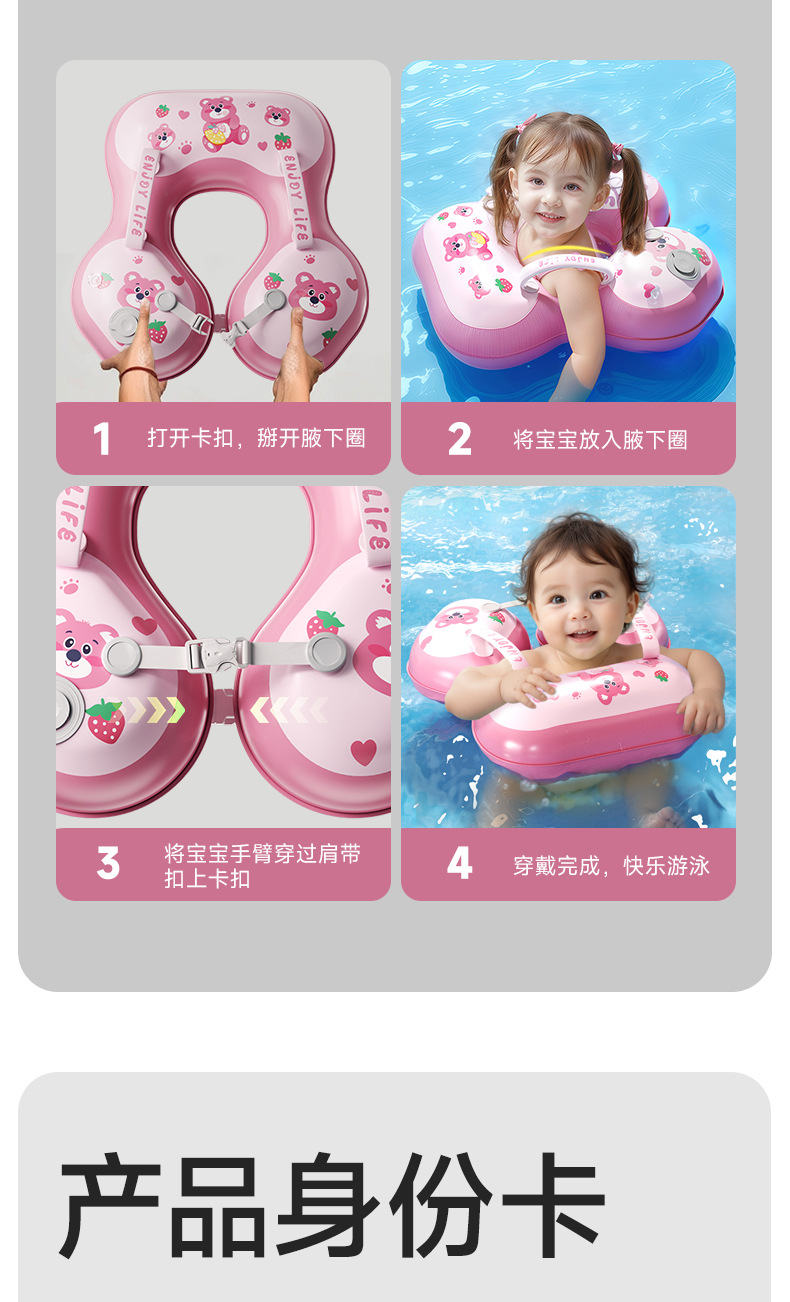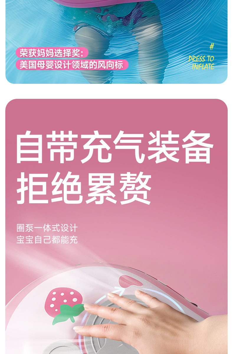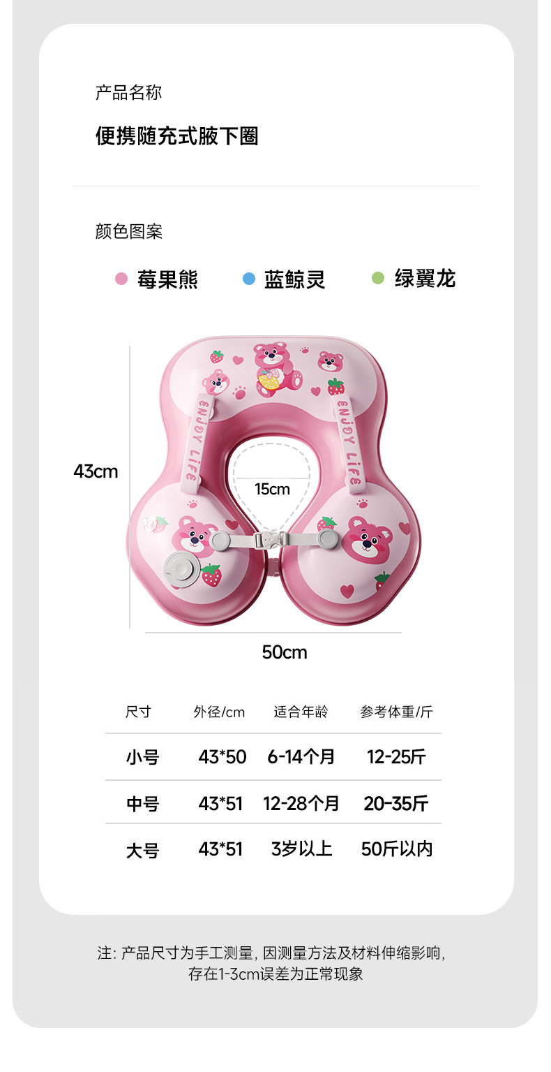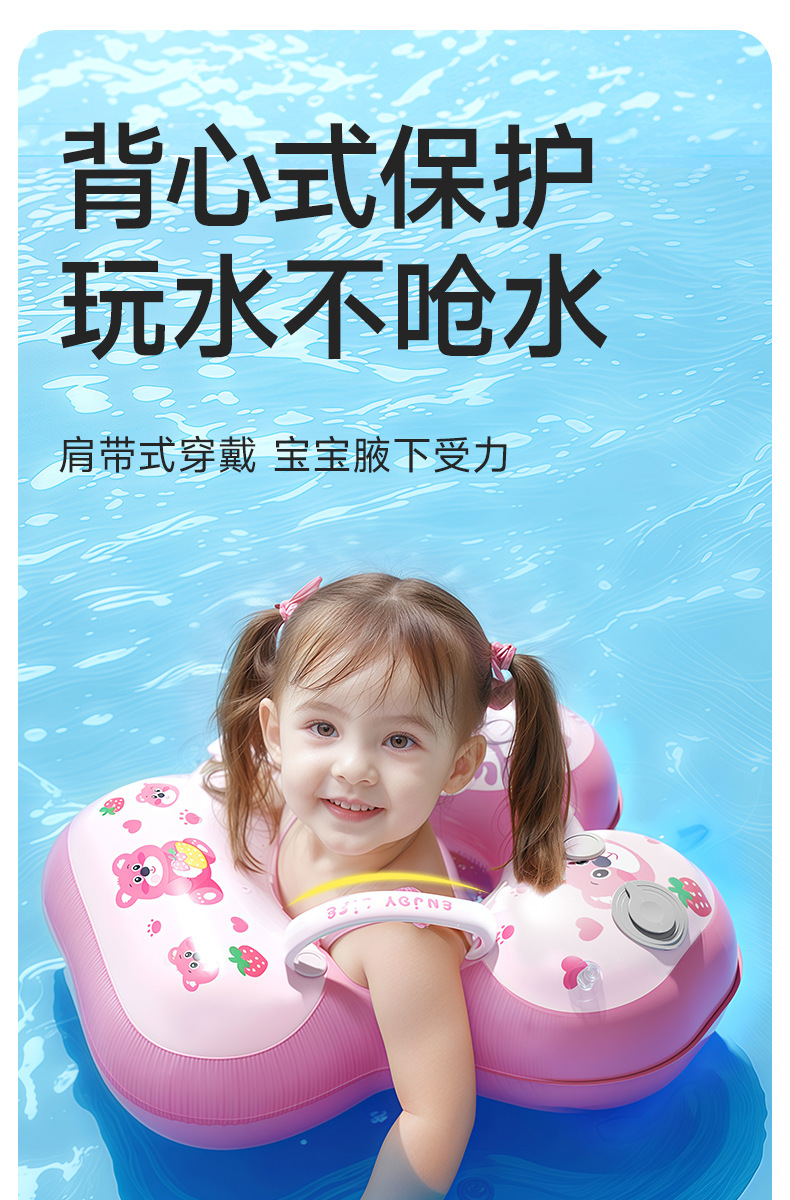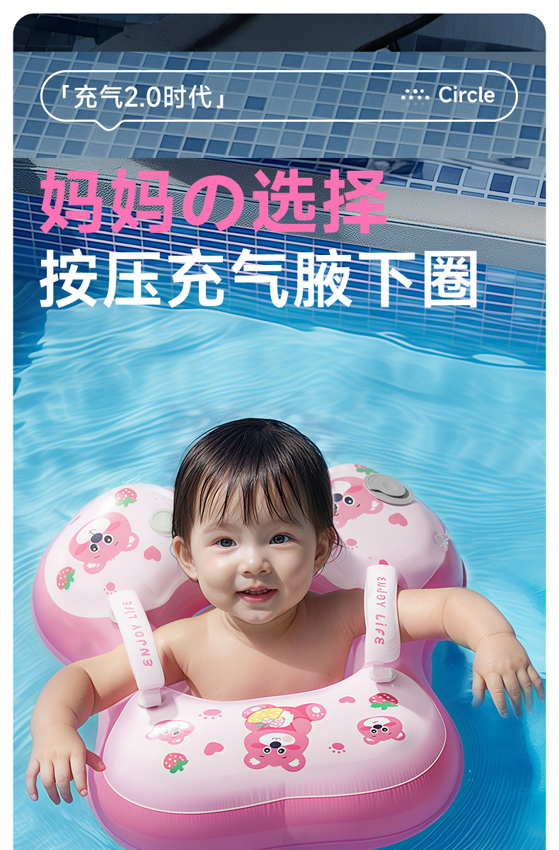 青色儿童游泳圈卡通宝宝按压充气婴儿腋下圈加厚浮力游泳装备新款新品