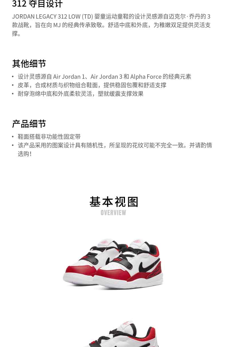 小耐克JORDAN LEGACY 312 LOW TD婴童运动童鞋CD9056-116