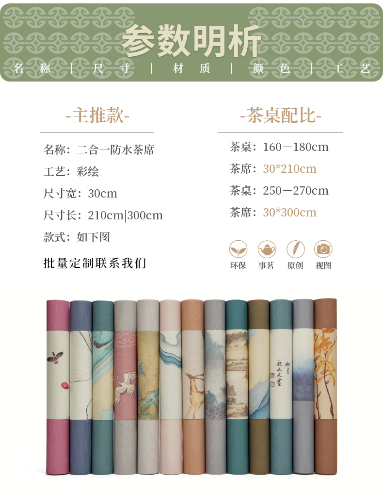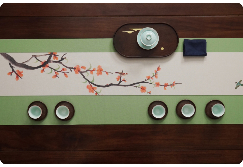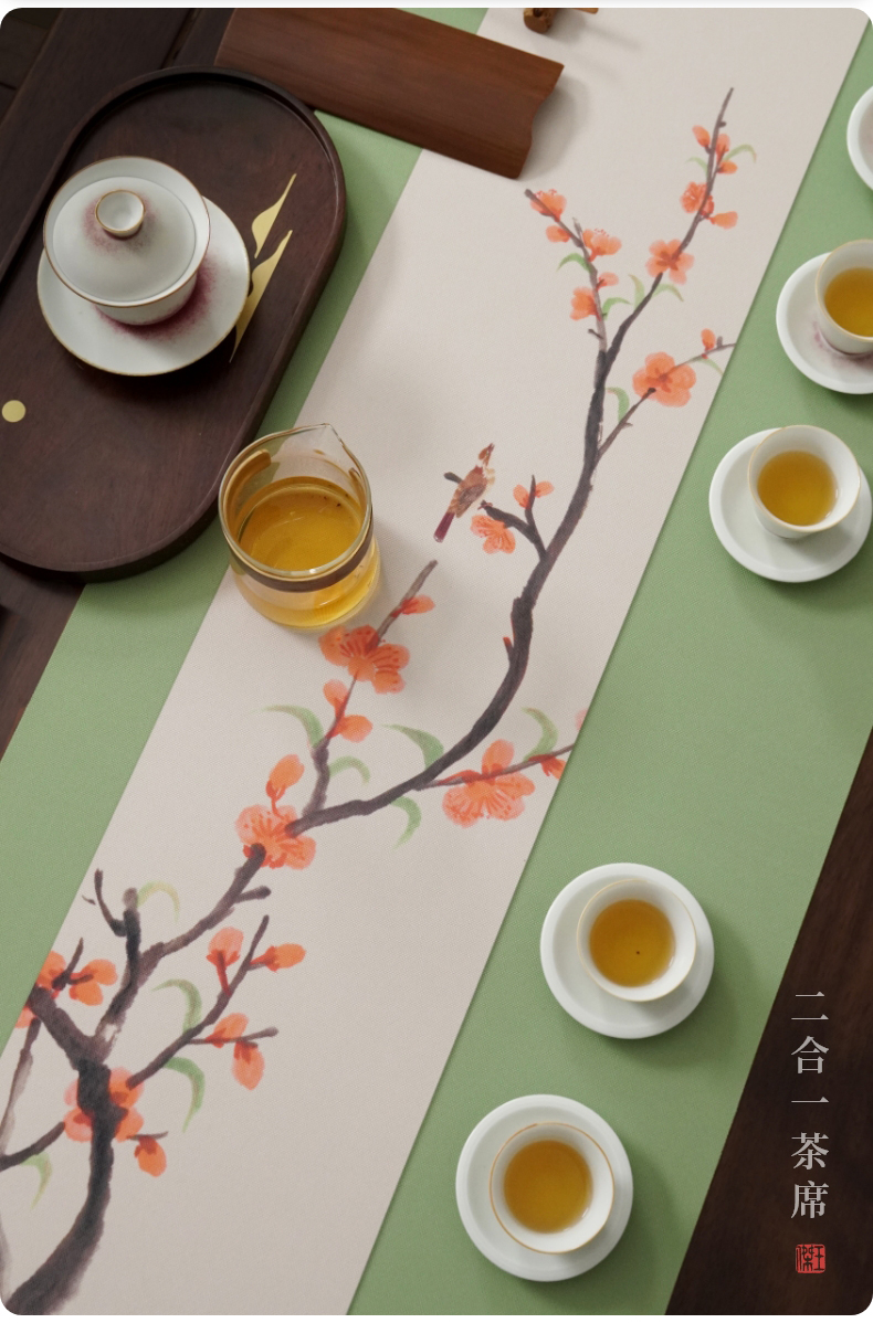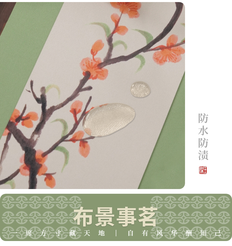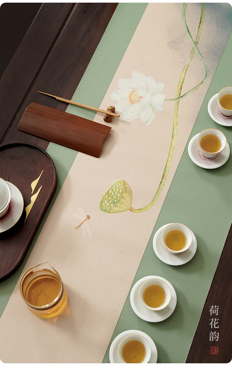 台隆金 防水彩绘茶席桌旗家用茶桌布茶道桌旗茶垫中式长条中国风桌巾 防水彩绘茶席-荷花韵