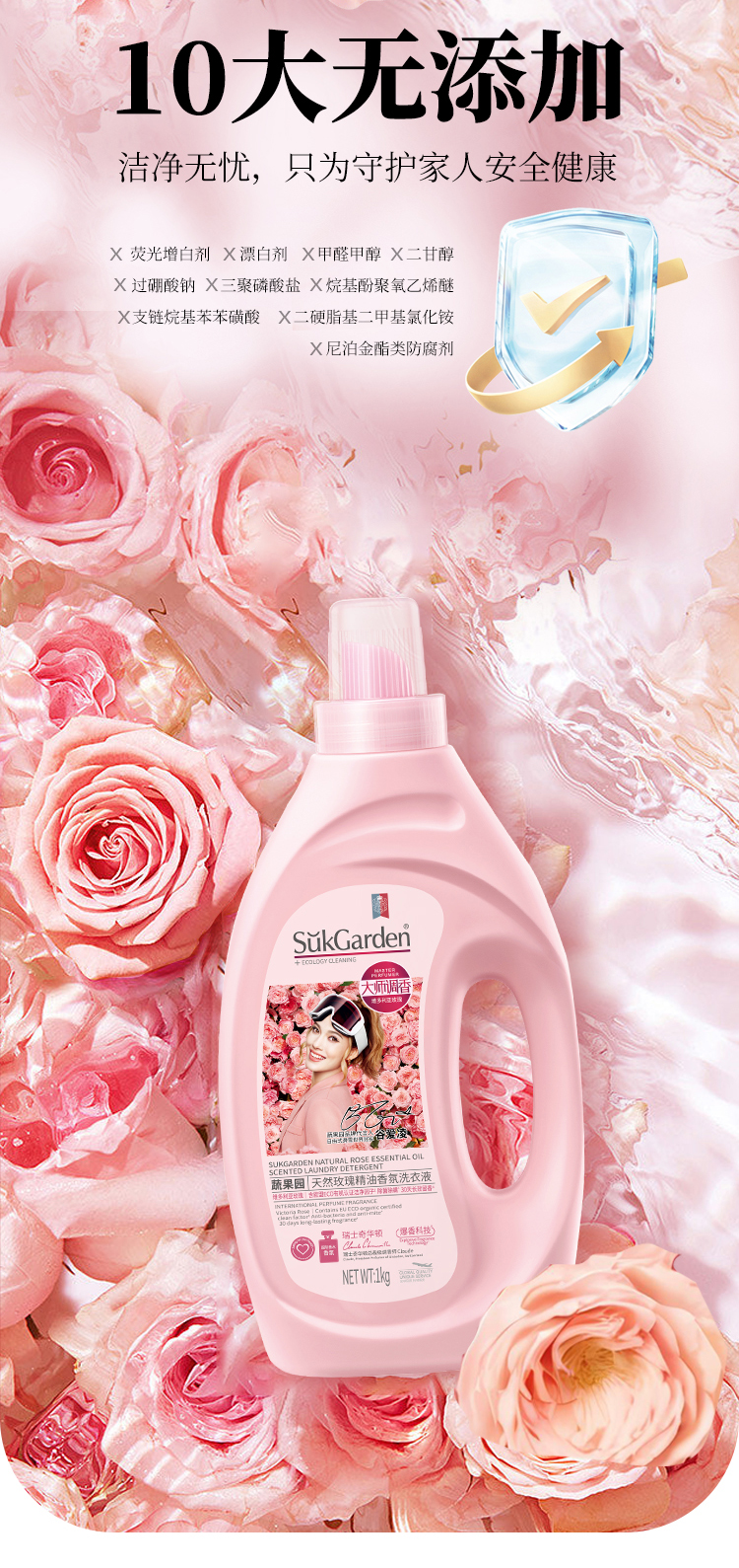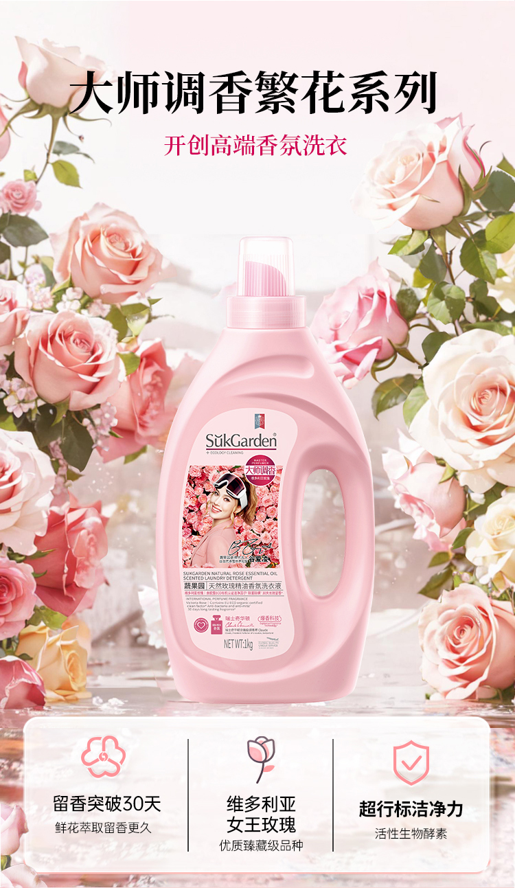 SukGarden 蔬果园大师调香维多利亚玫瑰精油香氛洗衣液 1KG
