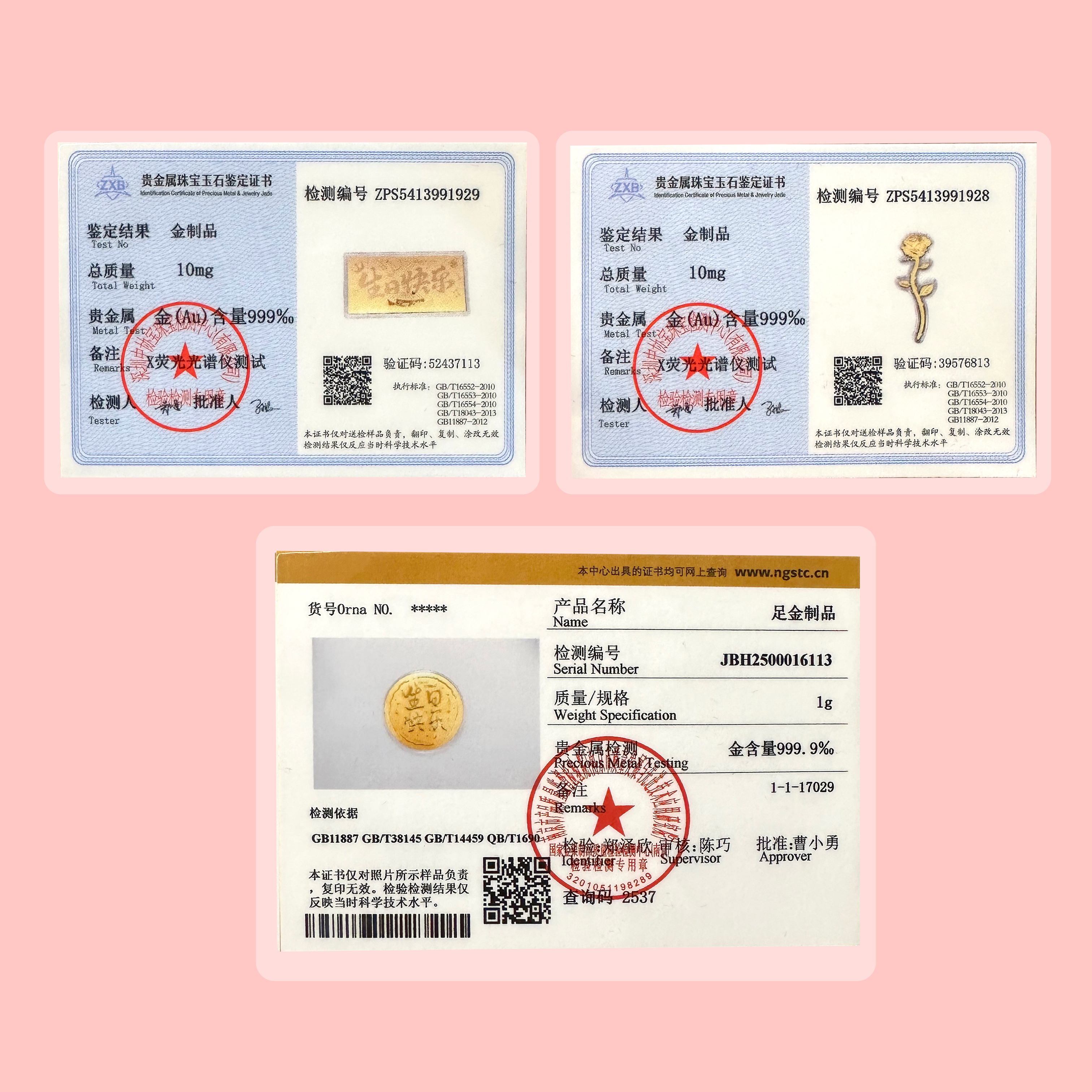 注意事项 :1、金价涨跌幅度较大,下单后我们会第一时间订货,除质量问题外,不接受退货退款,望各位理解,谢谢!2、带证书