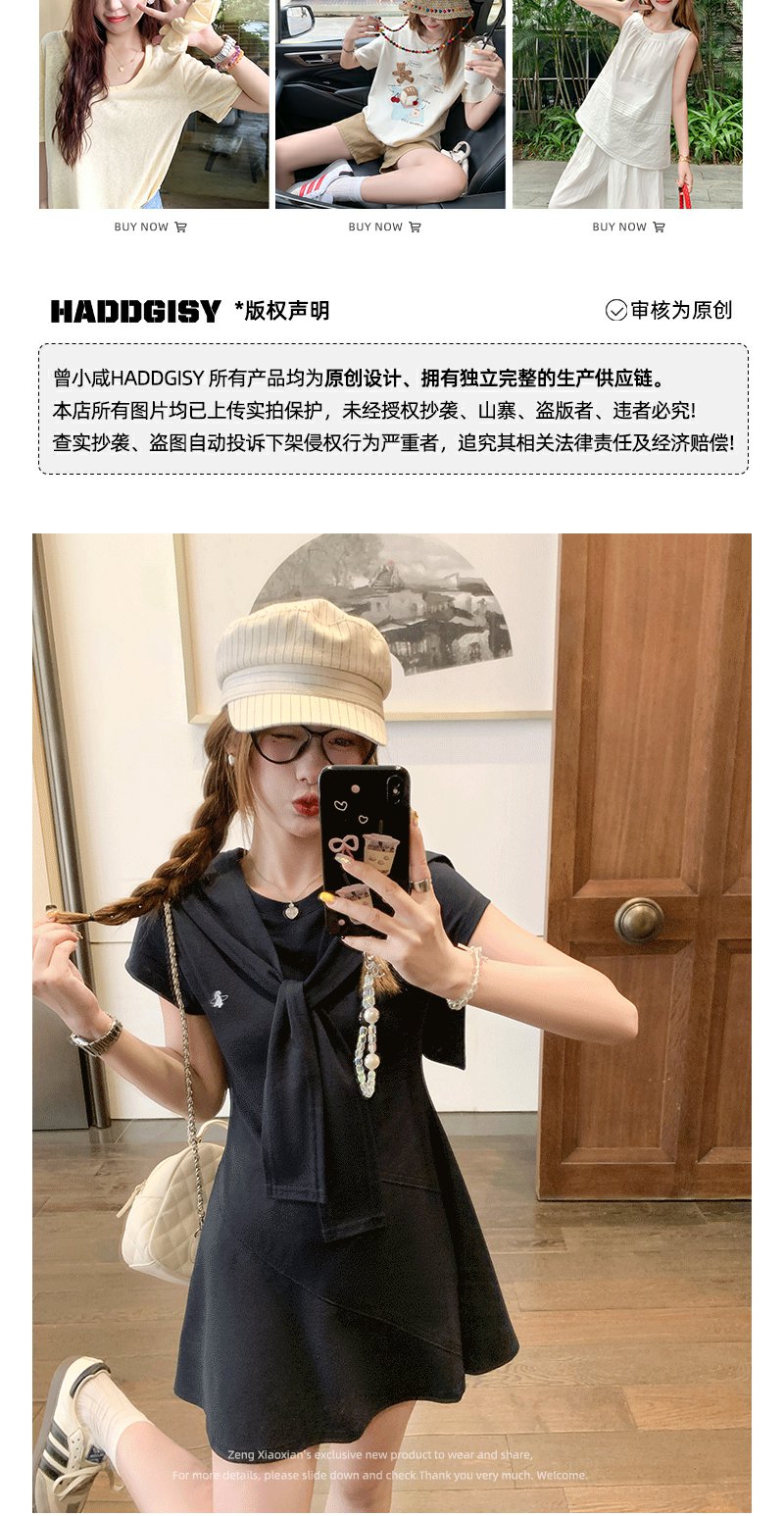 <曾小咸推荐>两色老钱风T恤裙带披肩款连衣裙