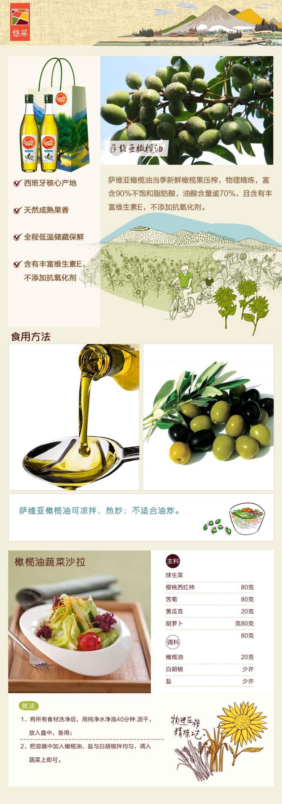 中粮悠采 食用油 萨维亚特级初榨橄榄油礼盒 500ml*2