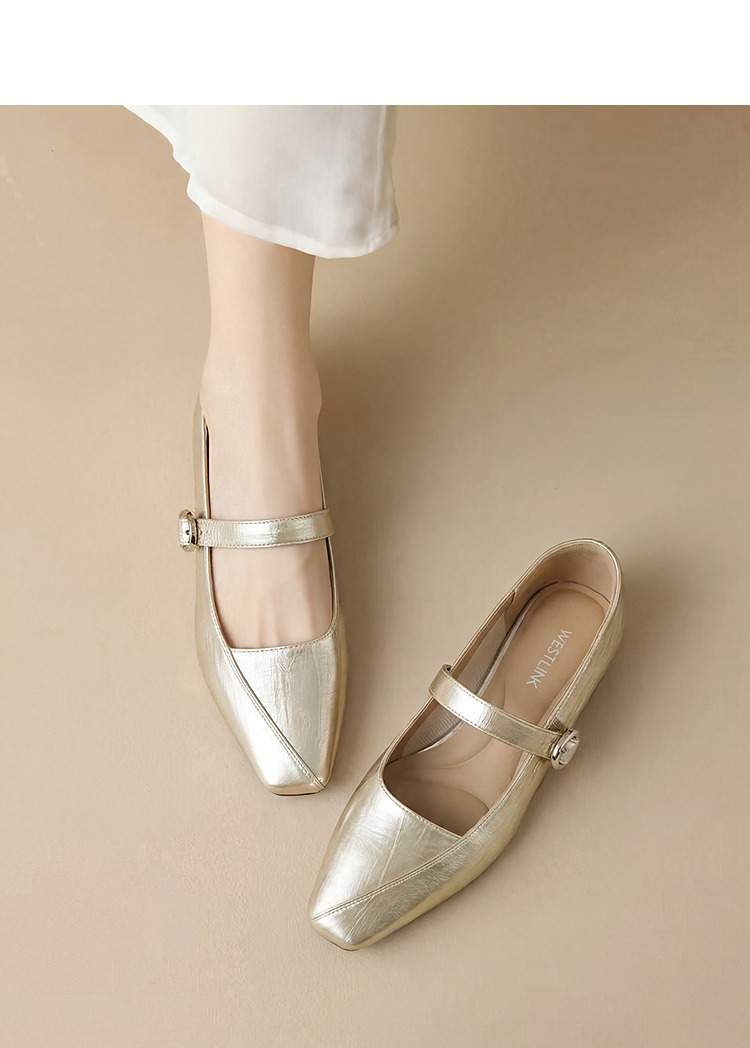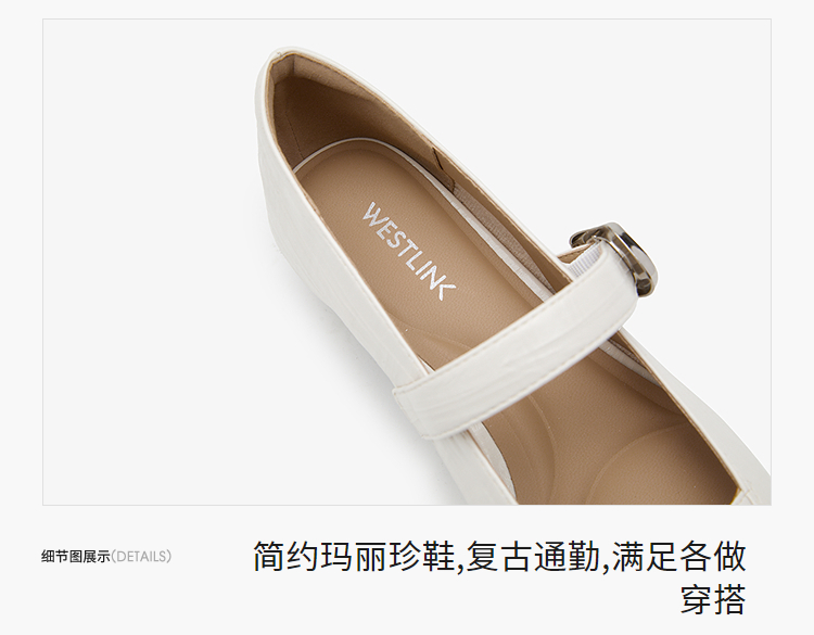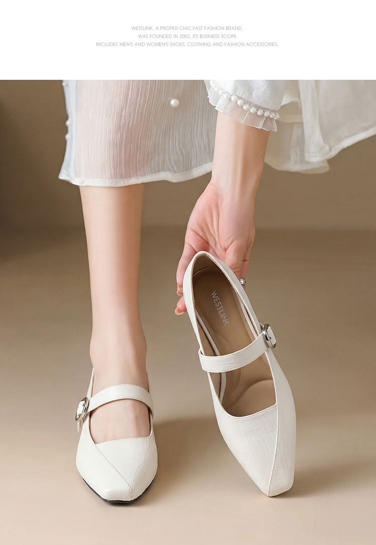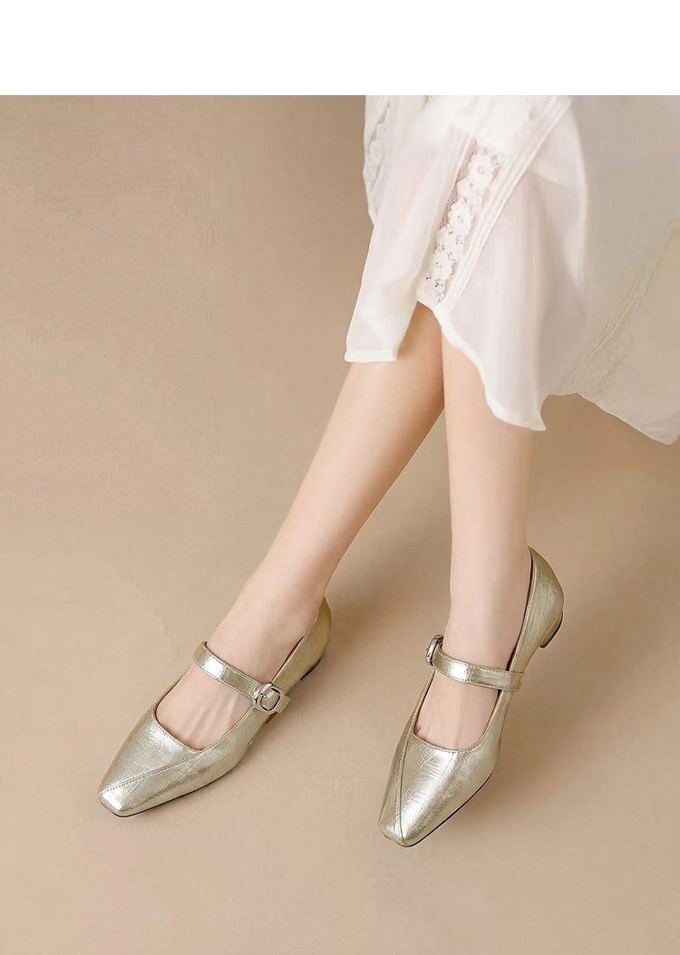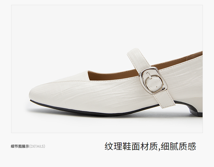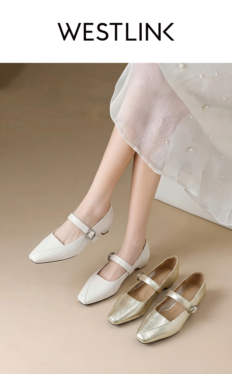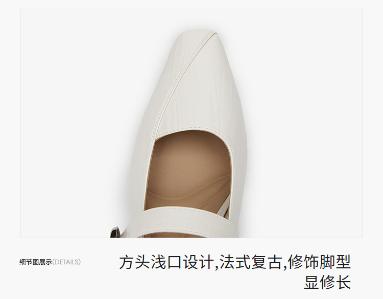 西遇一字带粗跟浅口单鞋2026春季新款法式复古通勤方头玛丽珍鞋女V0566334