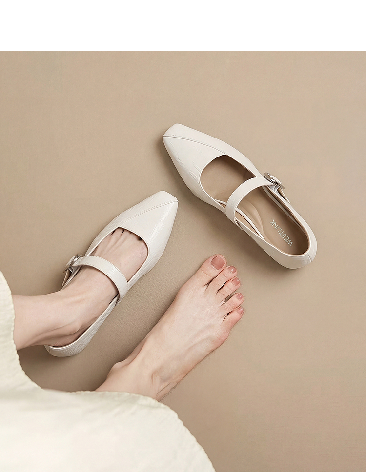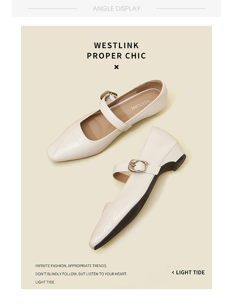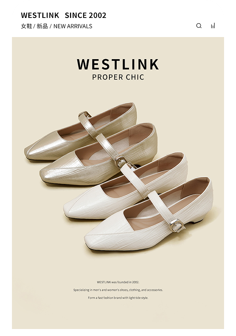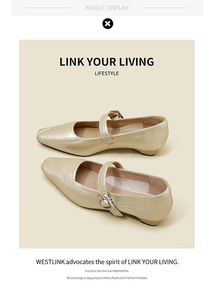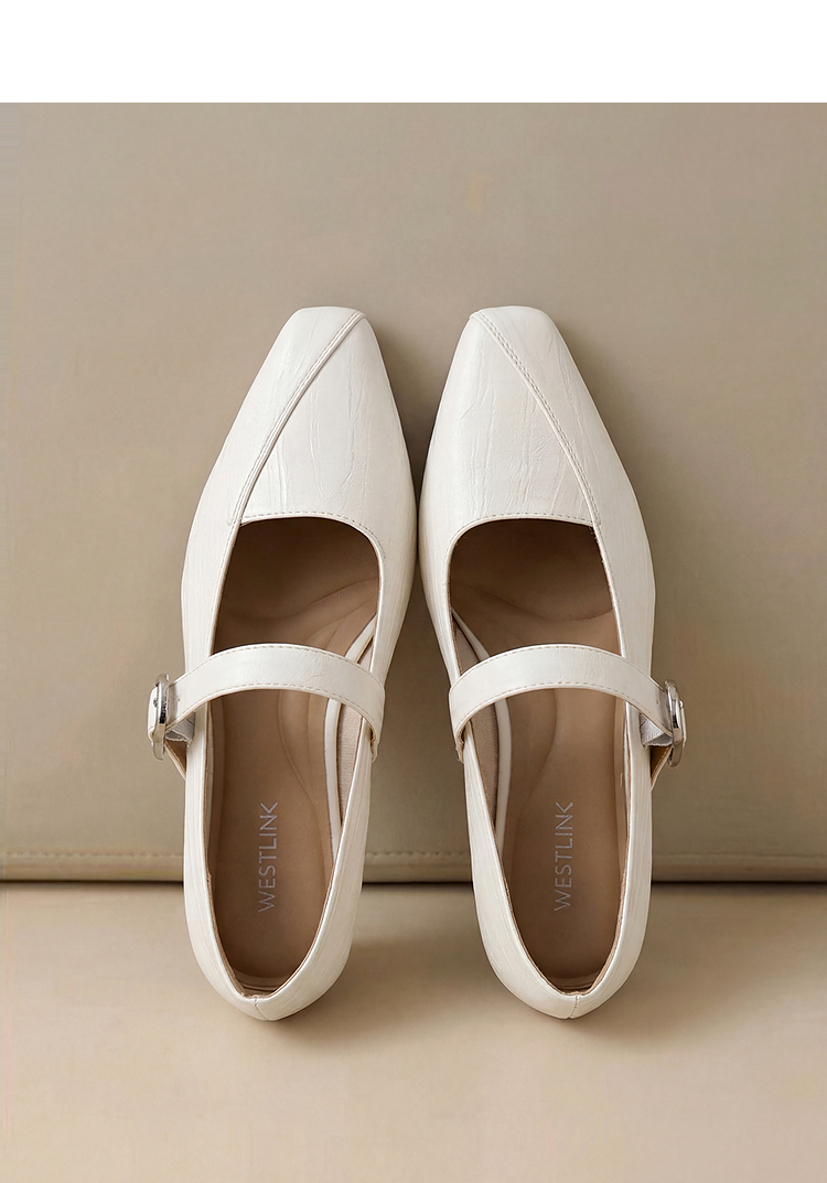 西遇一字带粗跟浅口单鞋2026春季新款法式复古通勤方头玛丽珍鞋女V0566334