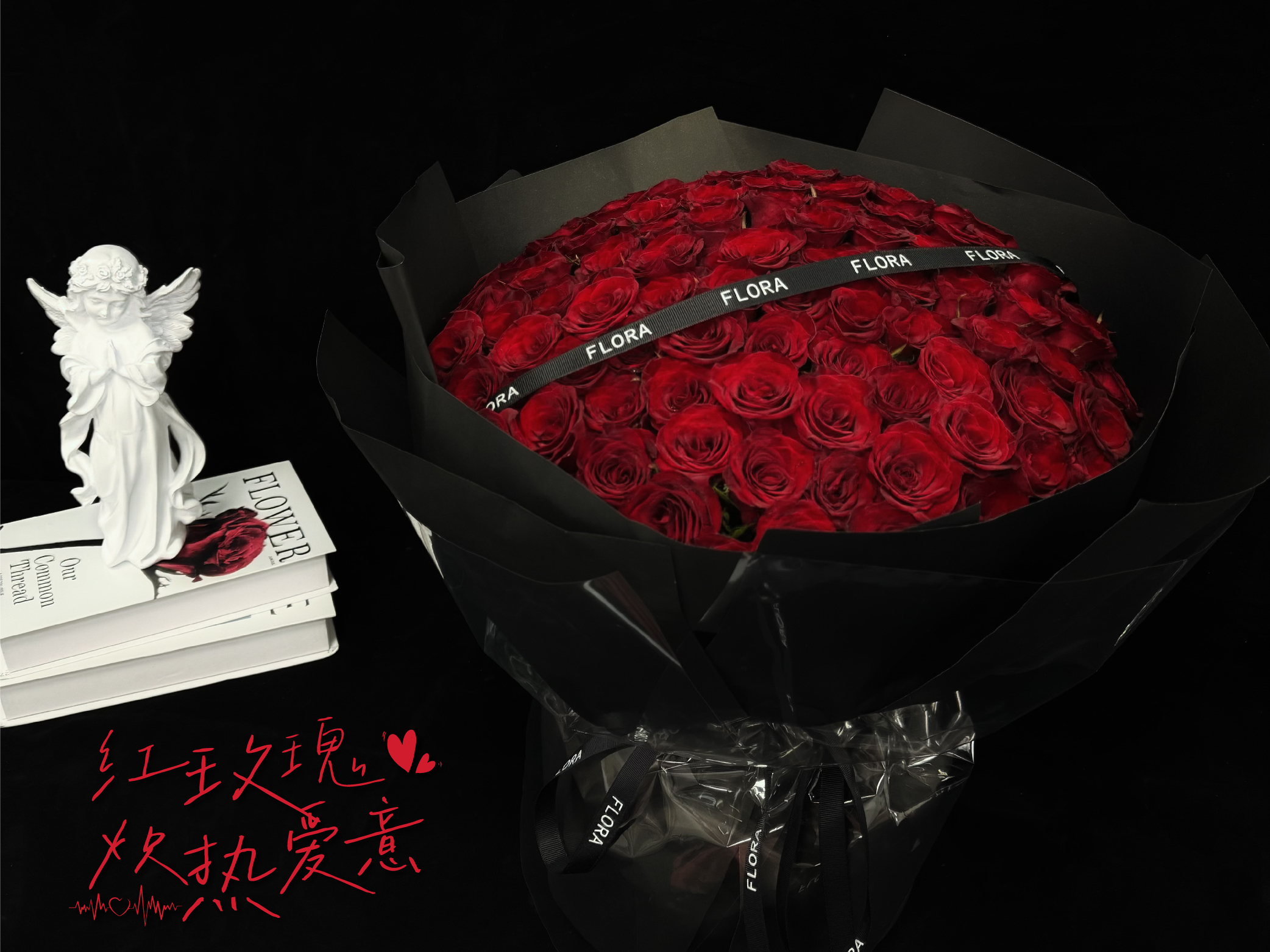 高奢款【红玫瑰的炽热爱意】 99 朵高原红玫瑰/求婚纪念日告白花束/高级感/仪式感/深圳配送