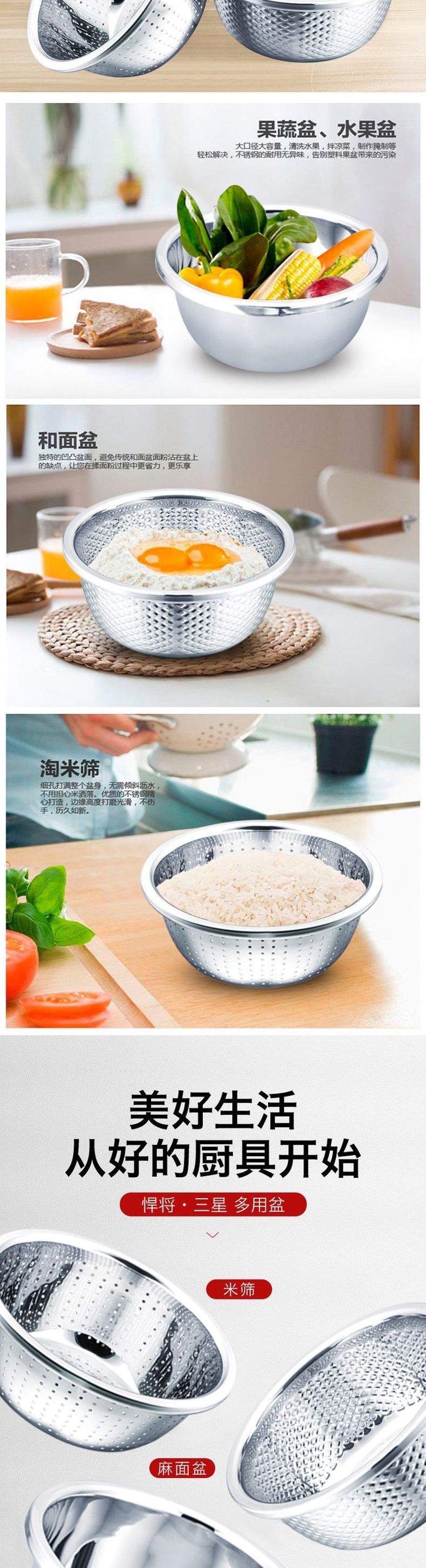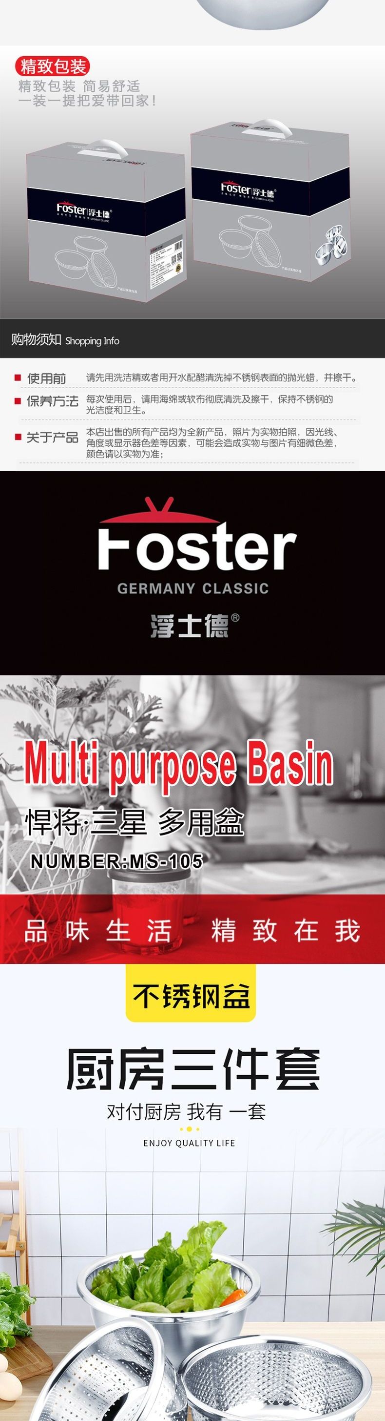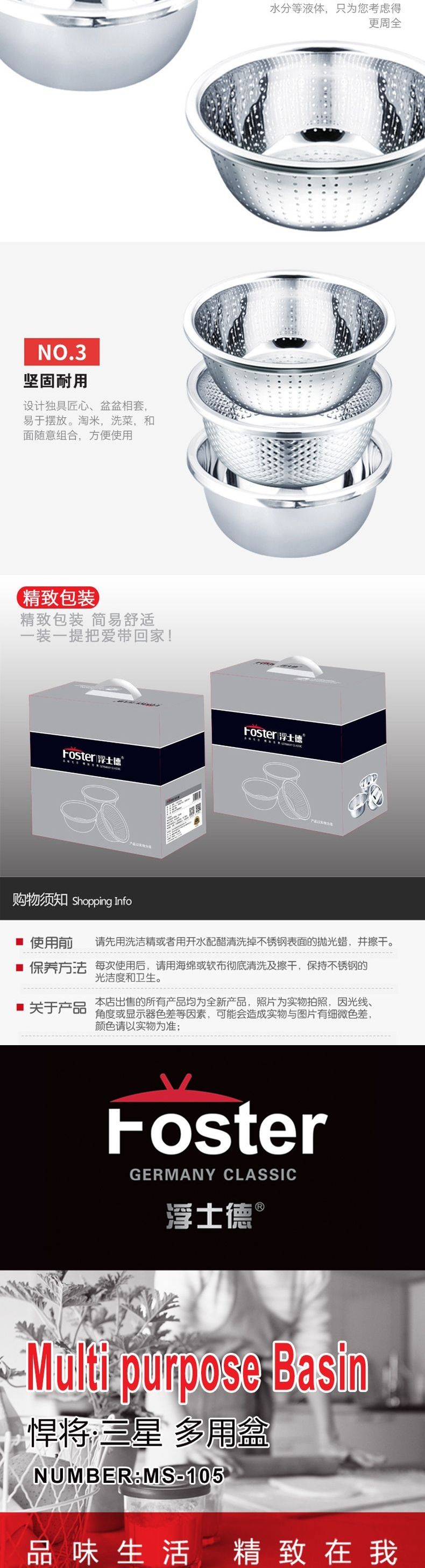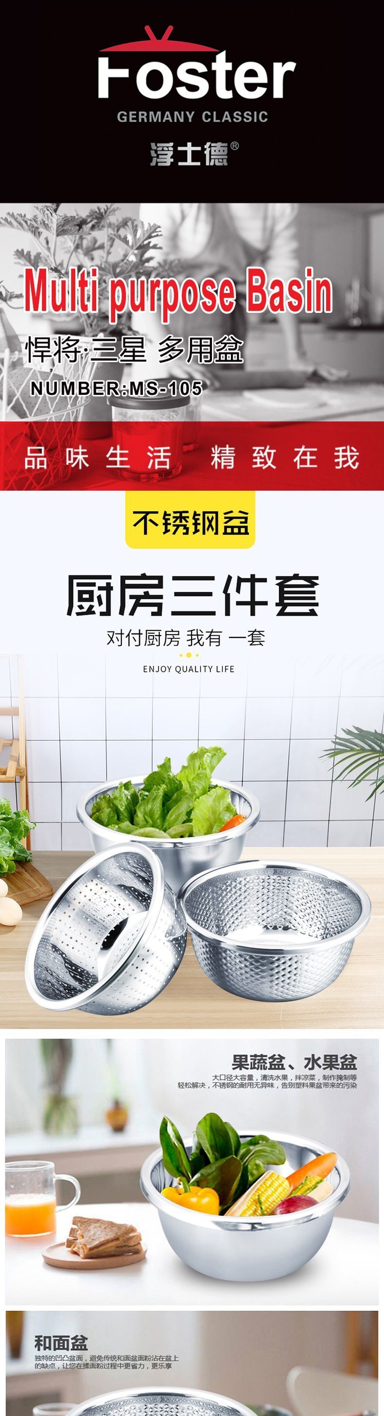 浮士德 悍将三星多用盆 MS-105 不锈钢洗菜盆和面盆