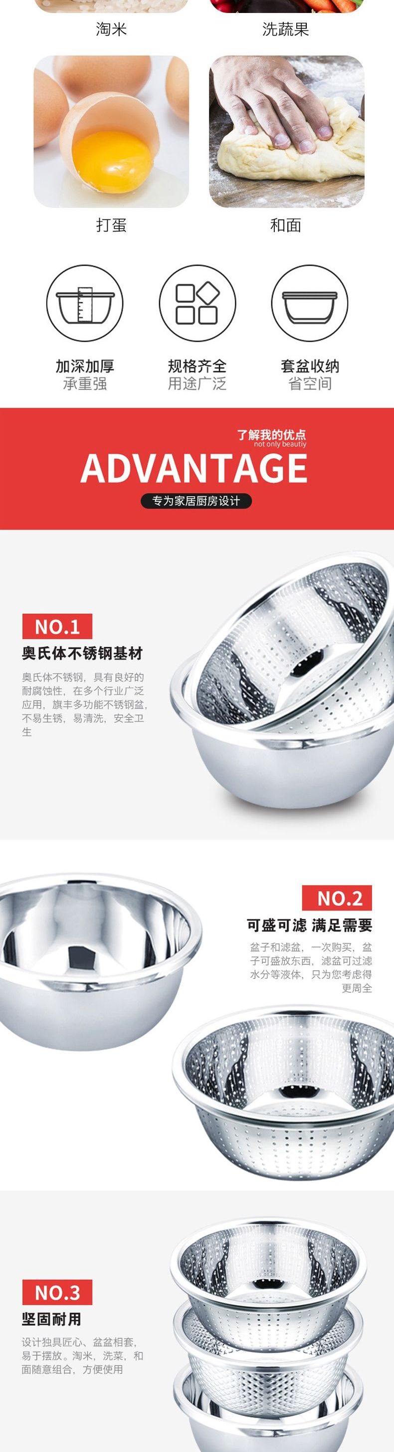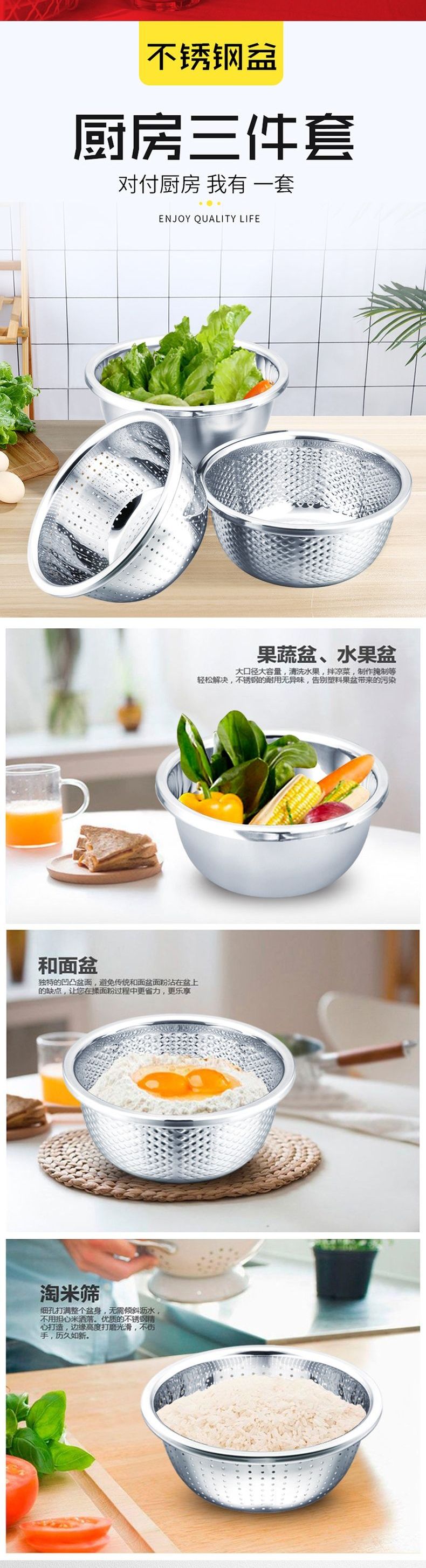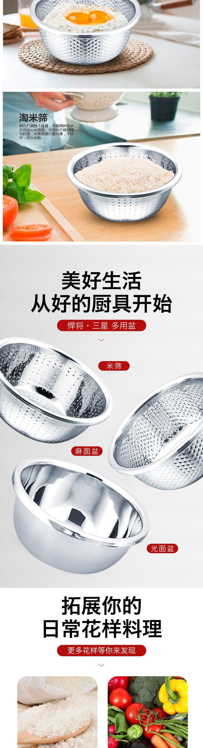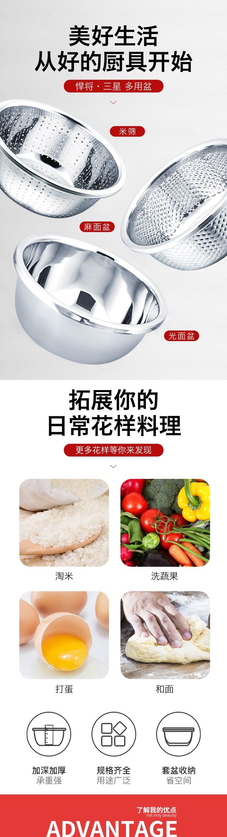 浮士德 悍将三星多用盆 MS-105 不锈钢洗菜盆和面盆
