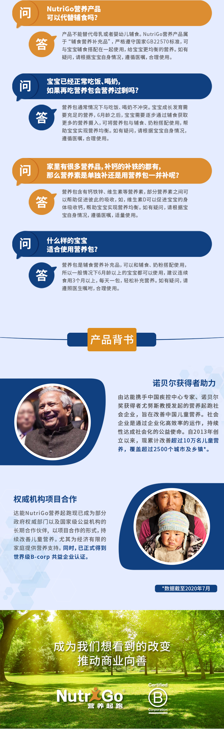 每日1-2次,每次1包,有条件可长期使用保证营养摄入全面均衡。营养包产品适用于单独温水冲泡,也可以加入牛奶等液体食物混合。在搅拌均匀后,进行喂养。(45℃以下,单独冲泡用水30ml~60ml,和奶粉一起喝可以多加50毫升水或者少1-2勺奶粉,等冲好奶再直接加入营养包搅拌均匀即可饮用)一岁以内一天一包就够了,一岁以上一天2次,每次一包。