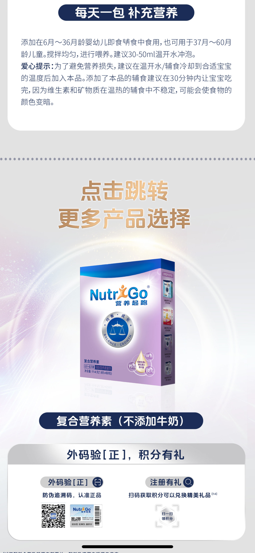 (普宝适用)早期营养包优质蛋白乳粉基质营养包6-60月龄12克*30袋