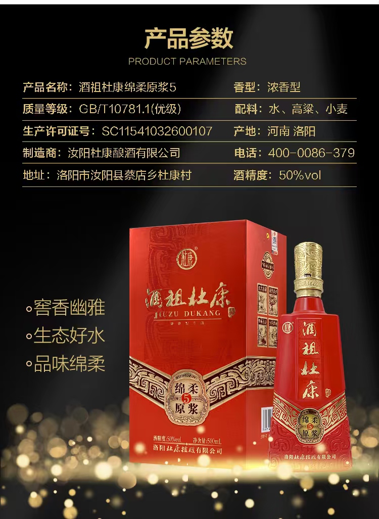【自营】杜康酒祖杜康 绵柔原浆5酒 50度原浆白酒 高端送礼自饮绵柔原浆酒送礼 50度 500mL 6瓶