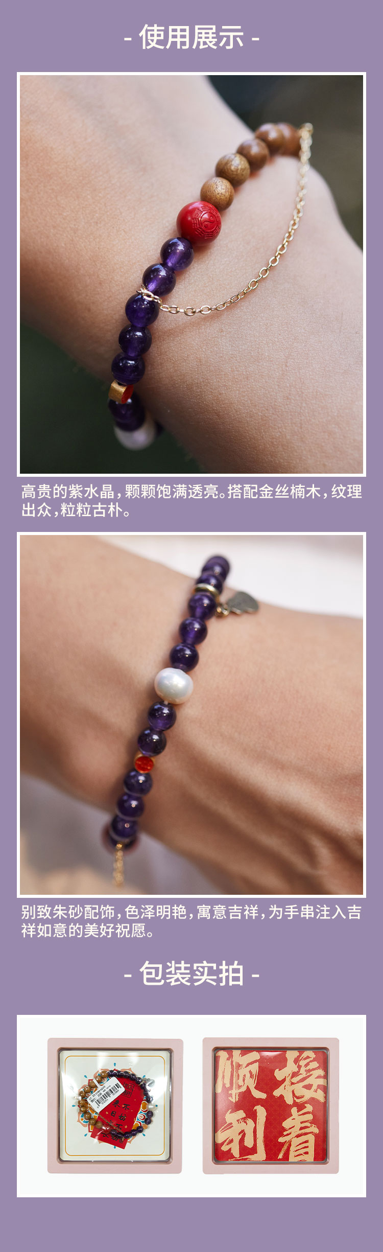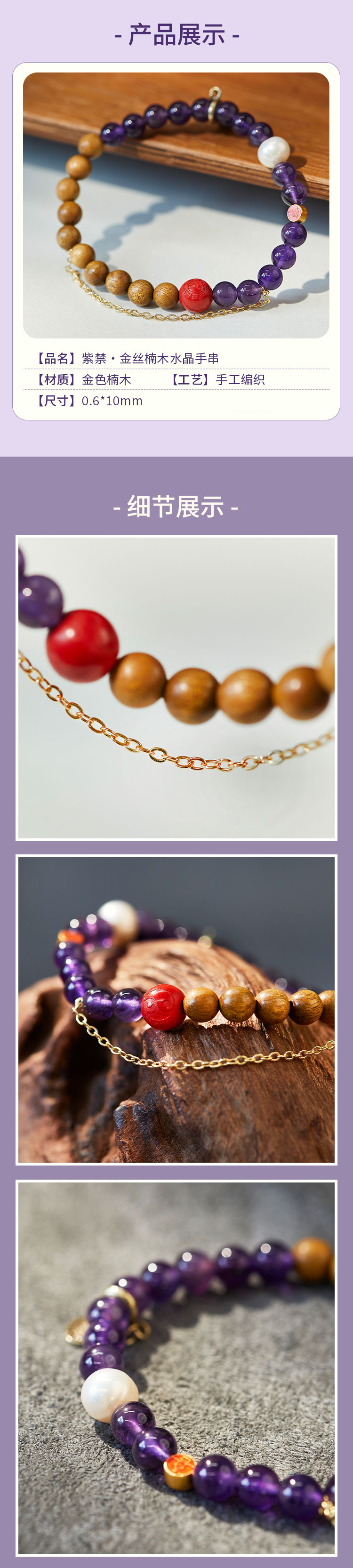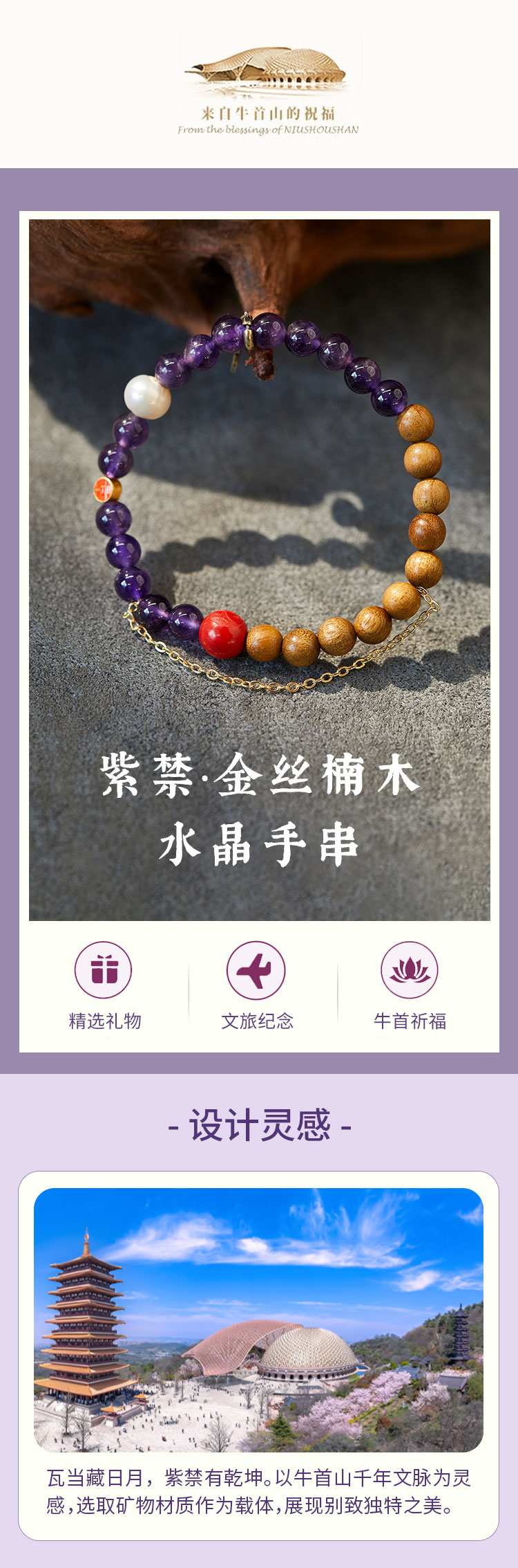 牛首山文创紫禁·金丝楠木水晶手串原创精致国风单圈手饰礼物