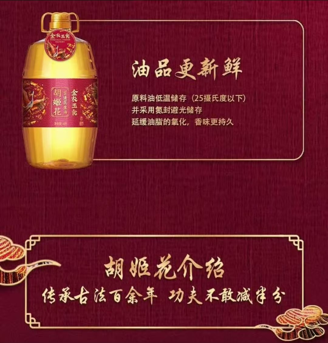 胡姬花金衣玉食古法花生油 4L