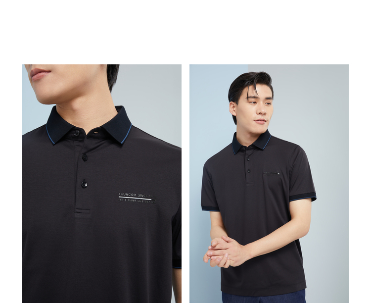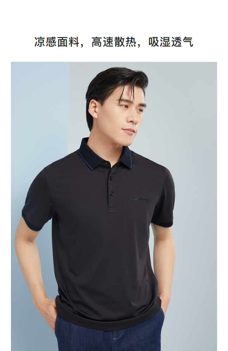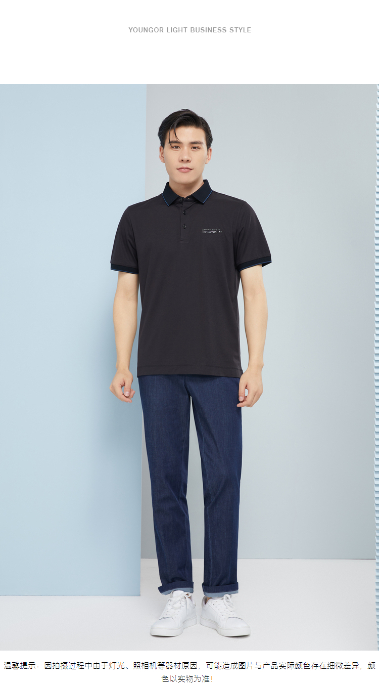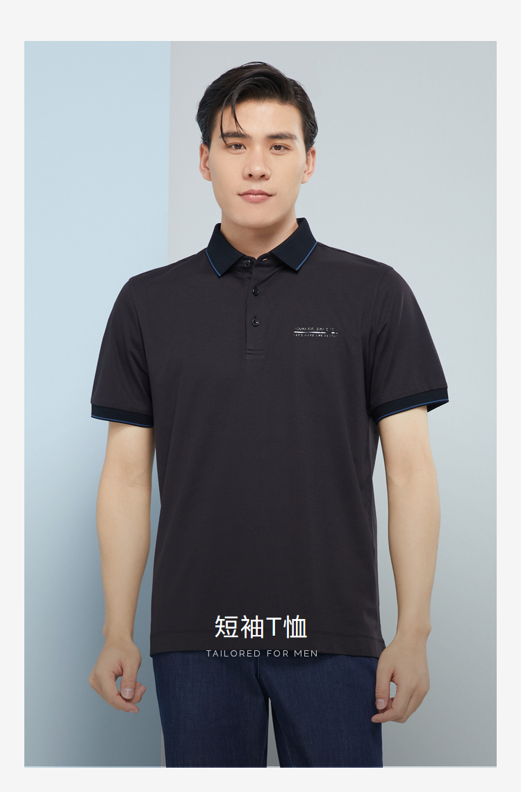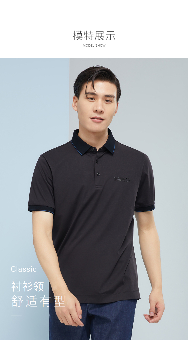 雅戈尔男士夏衬衫领素色短袖T恤YSET570213ACY