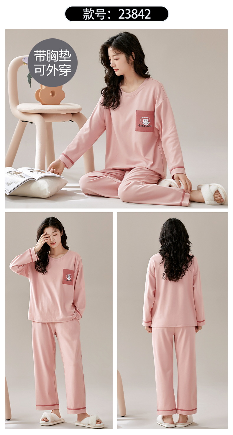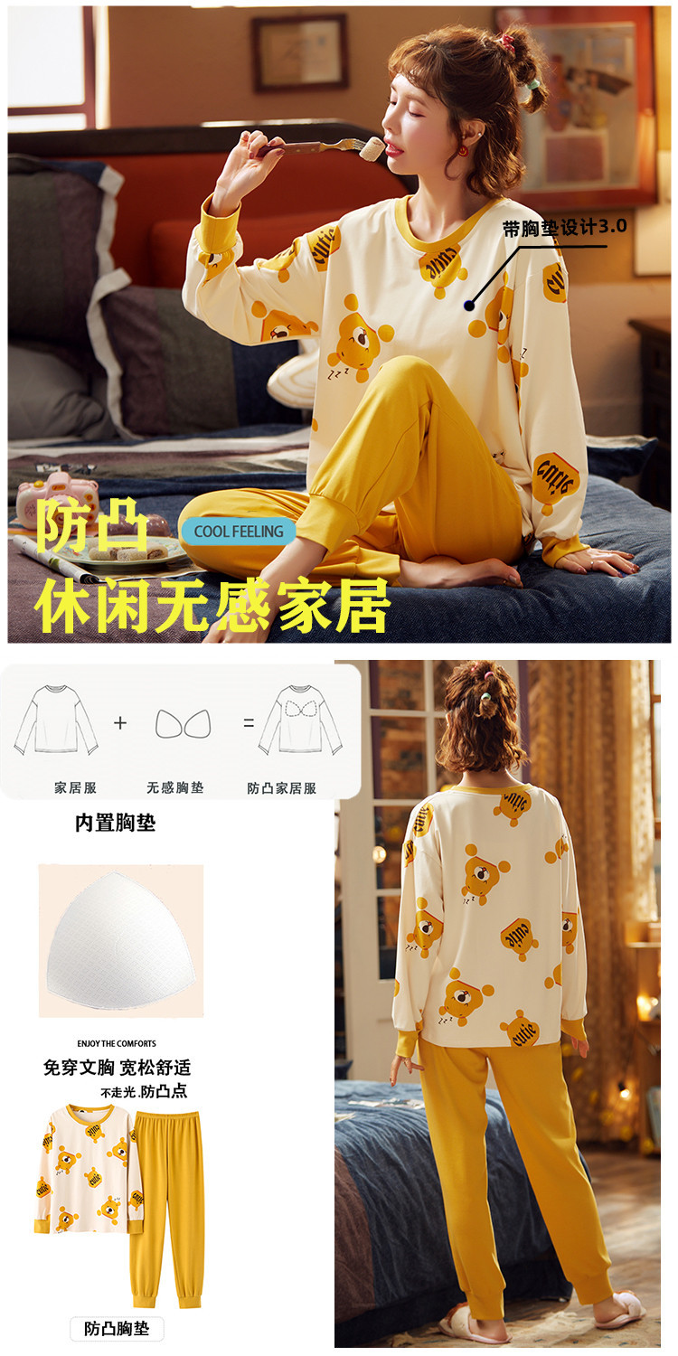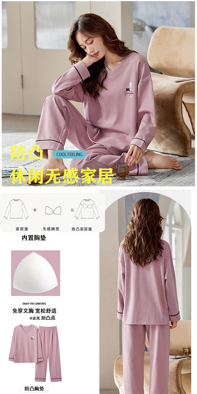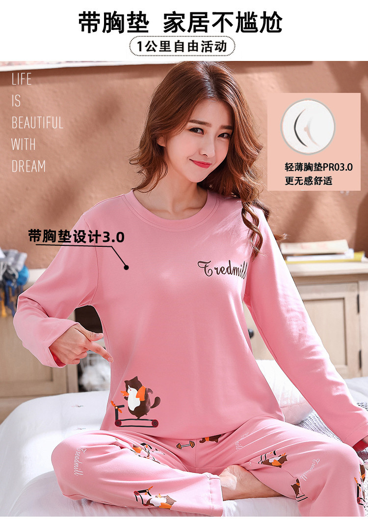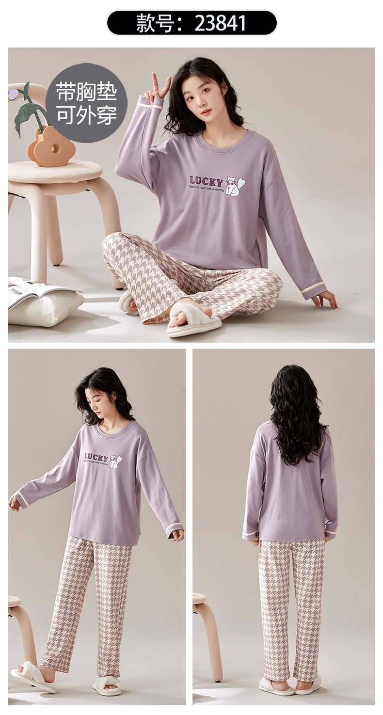 秋季新款家居服圆领套头睡衣女春秋款带胸垫免穿内衣长袖家居服防凸点可外穿起居