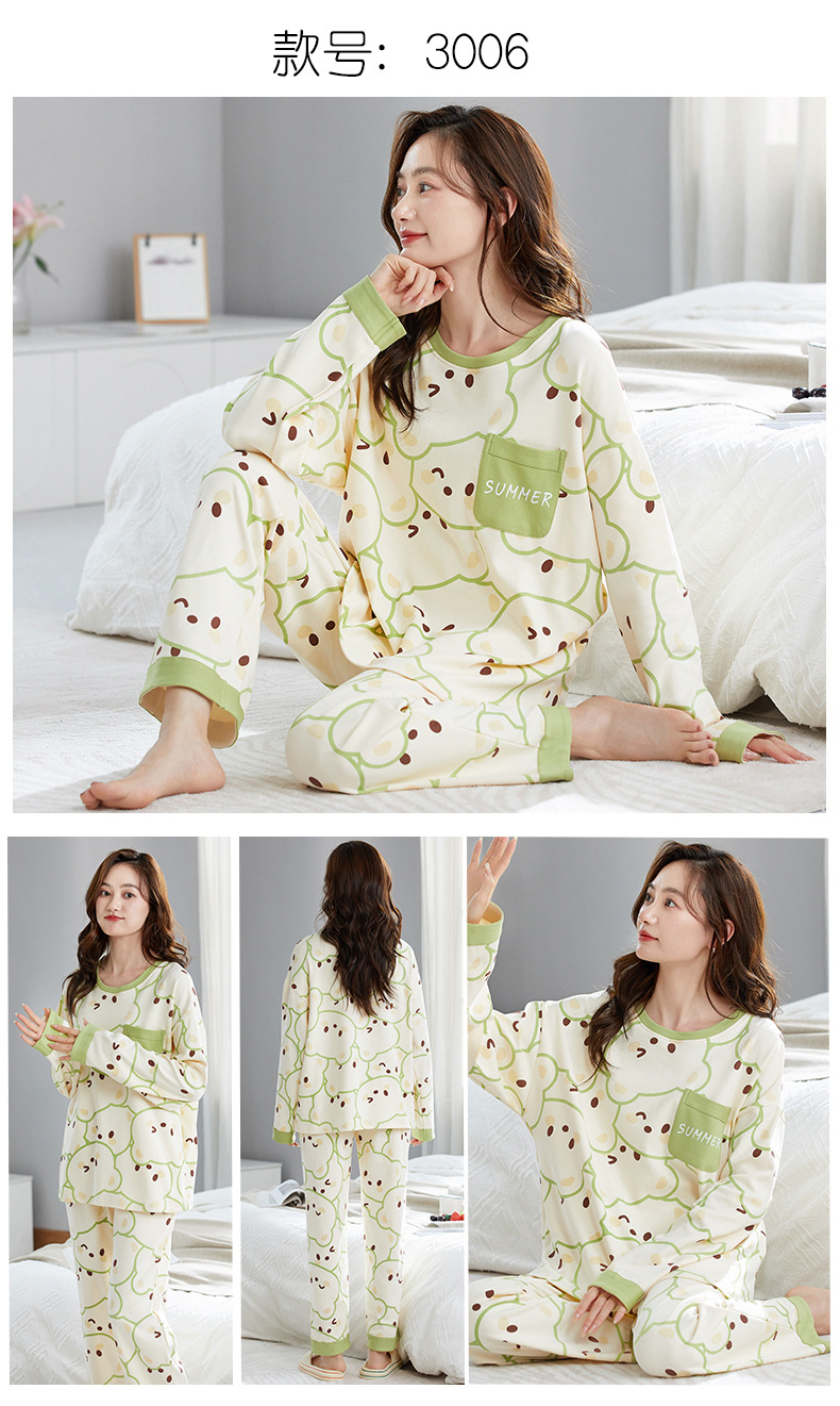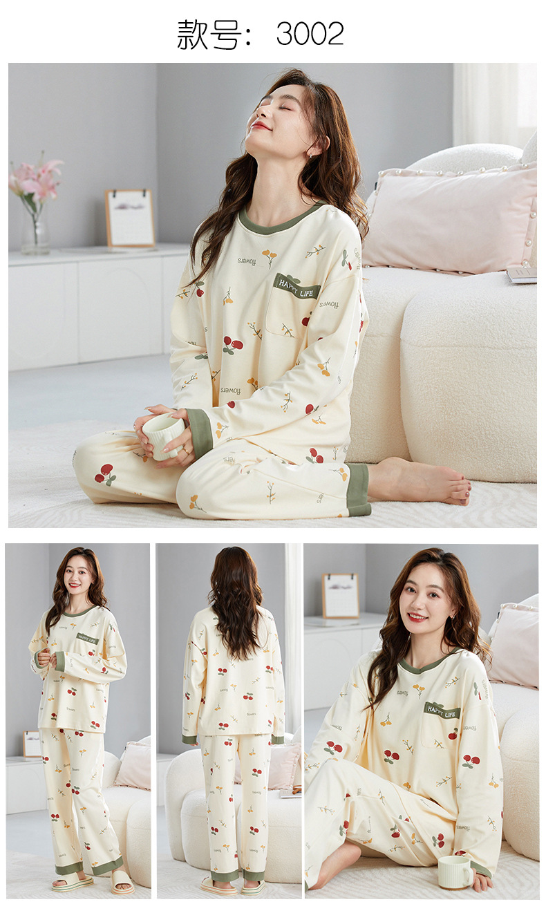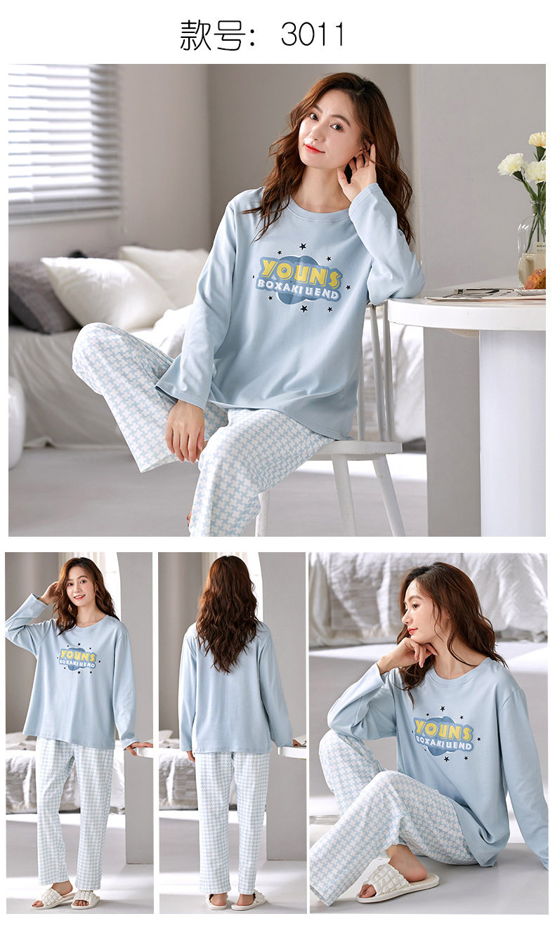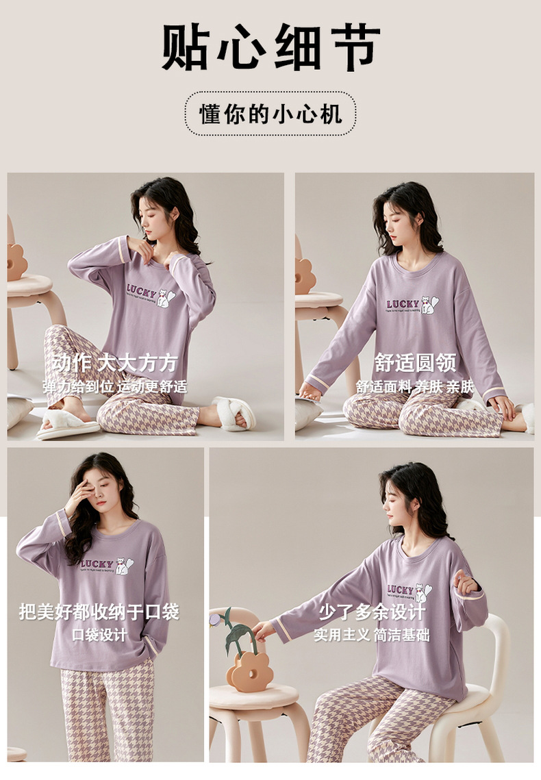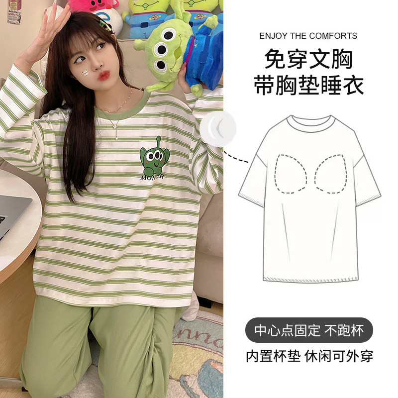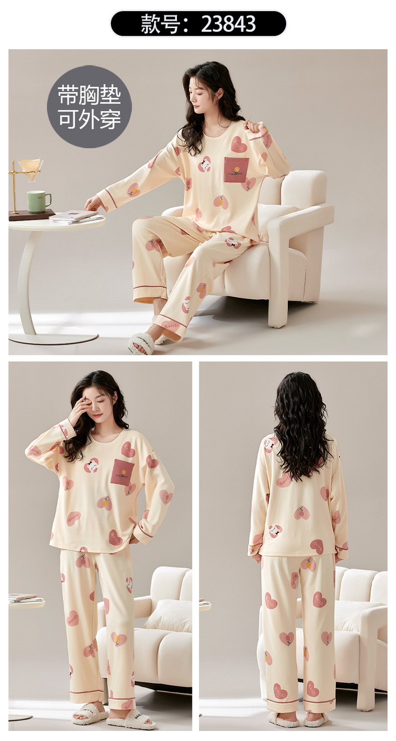 秋季新款家居服圆领套头睡衣女春秋款带胸垫免穿内衣长袖家居服防凸点可外穿起居