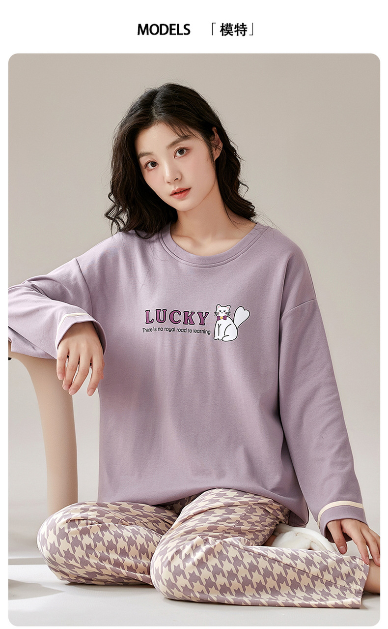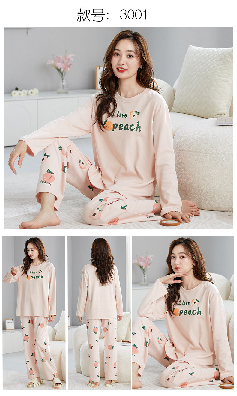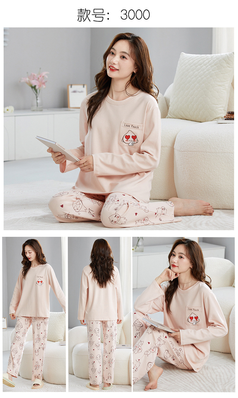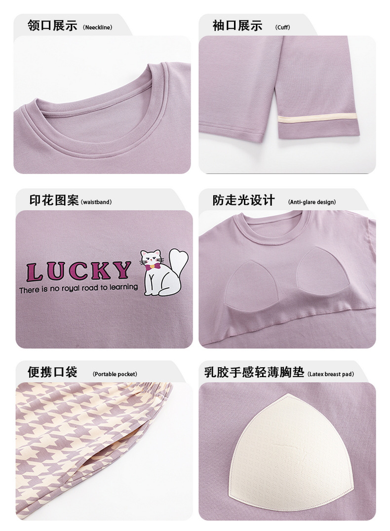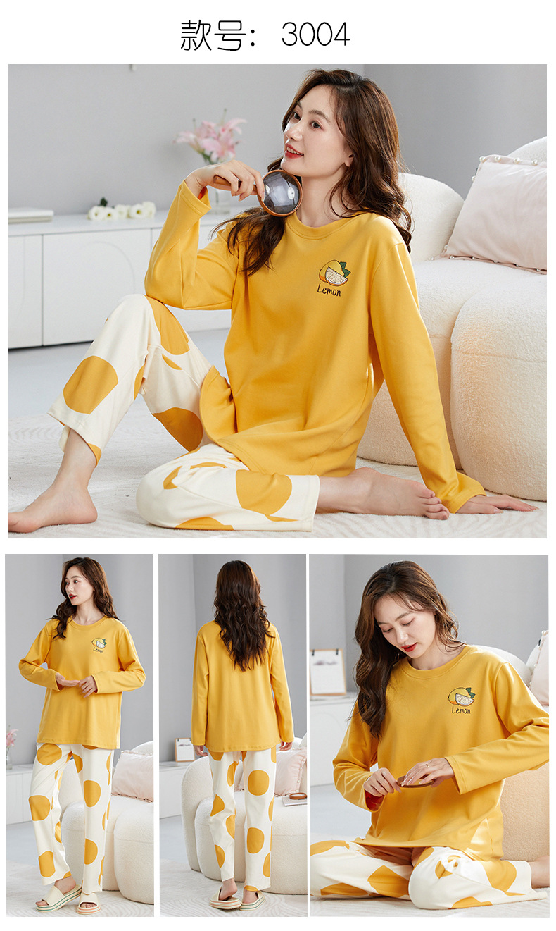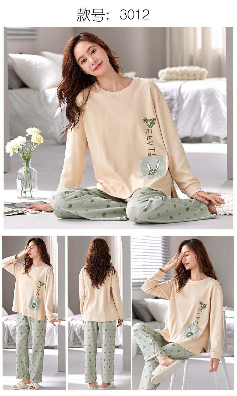秋季新款家居服圆领套头睡衣女春秋款带胸垫免穿内衣长袖家居服防凸点可外穿起居