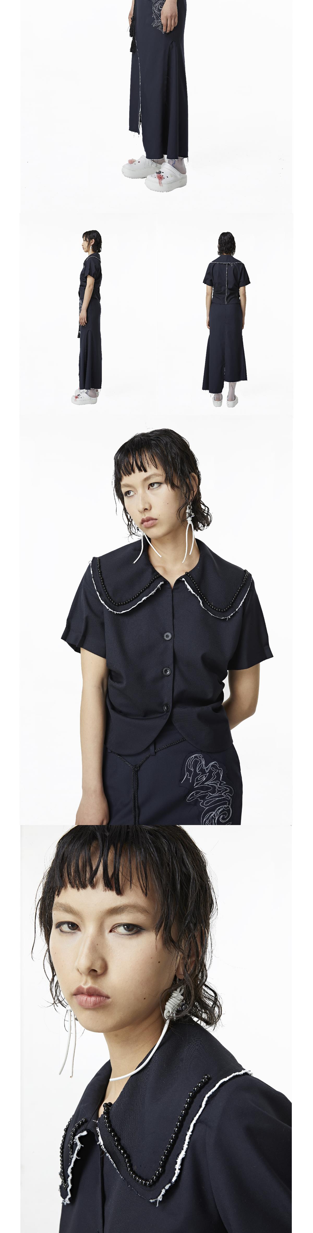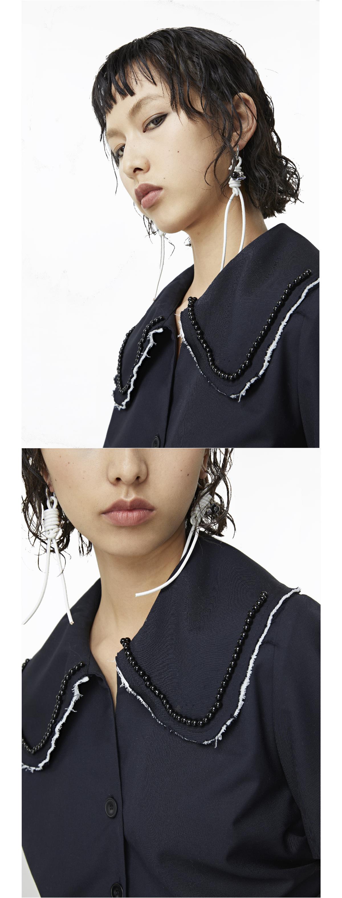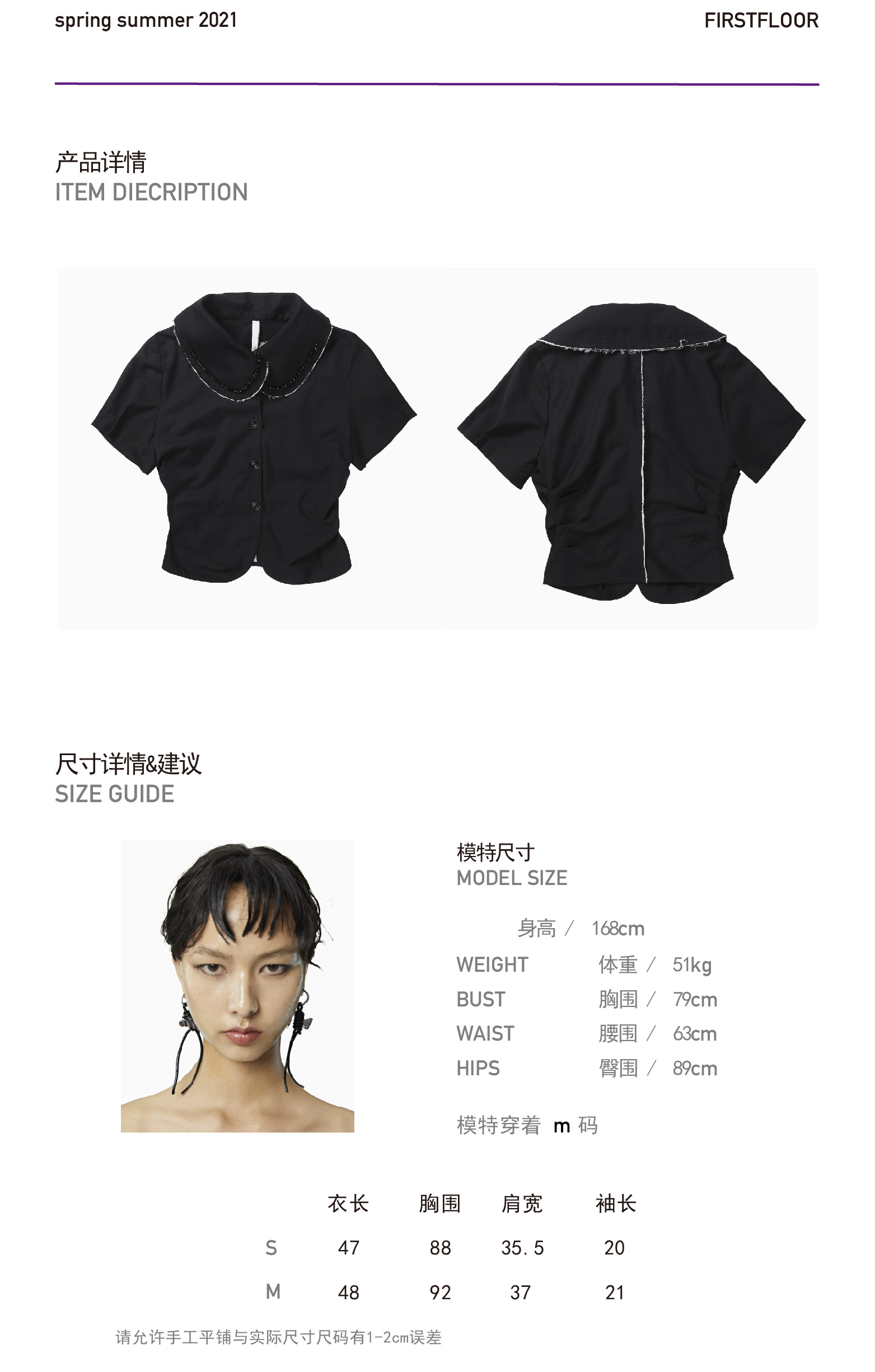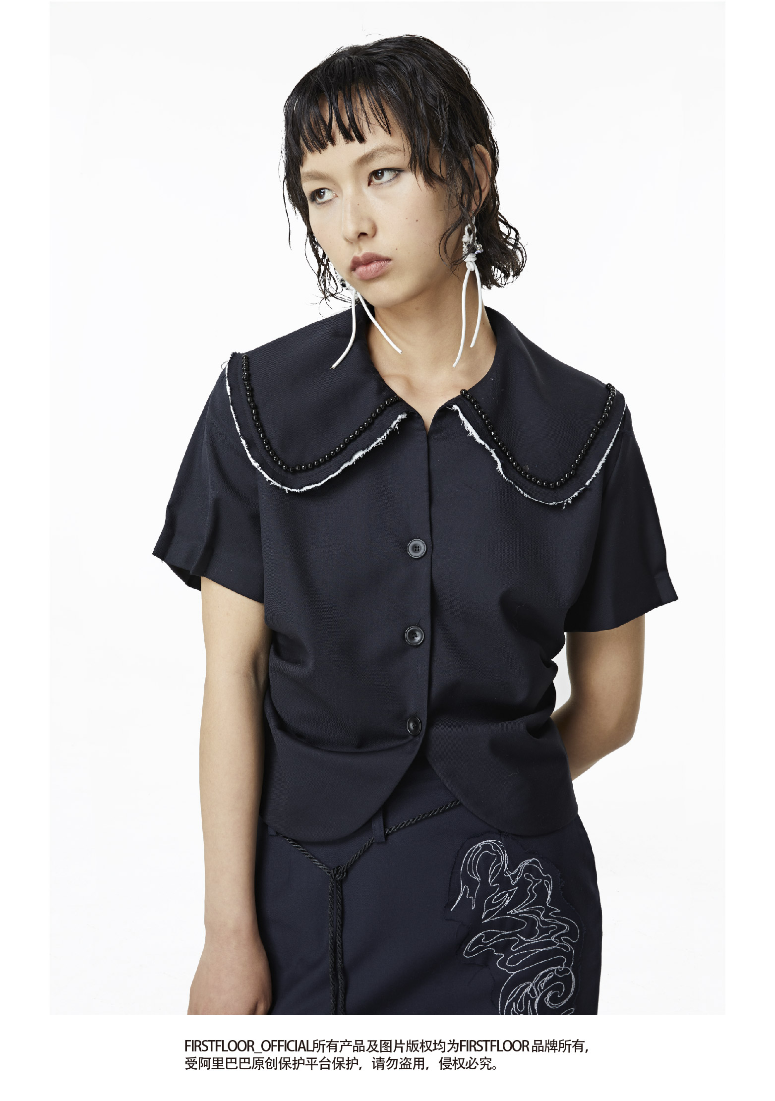 FIRSTFLOOR毛边设计复古娃娃领衬衫原创褶皱不规则泡泡袖大翻领