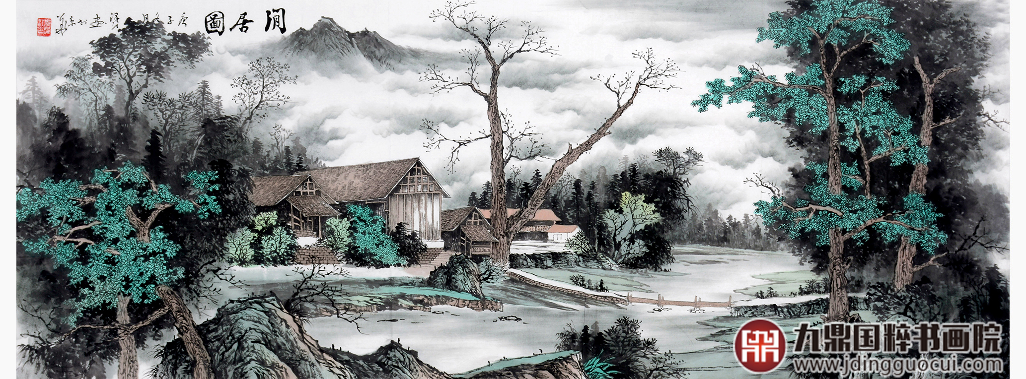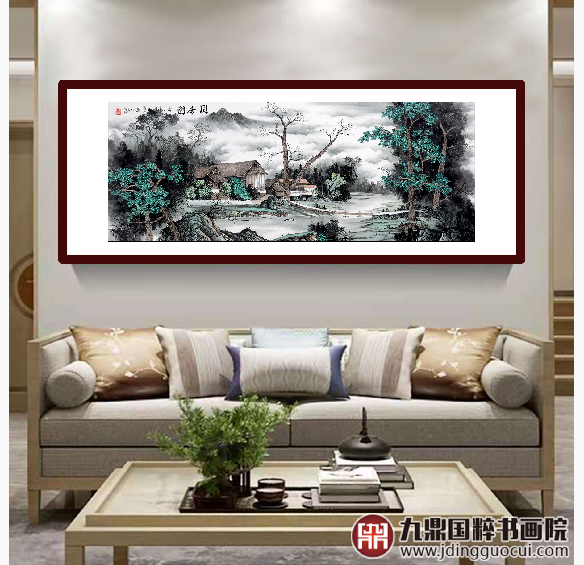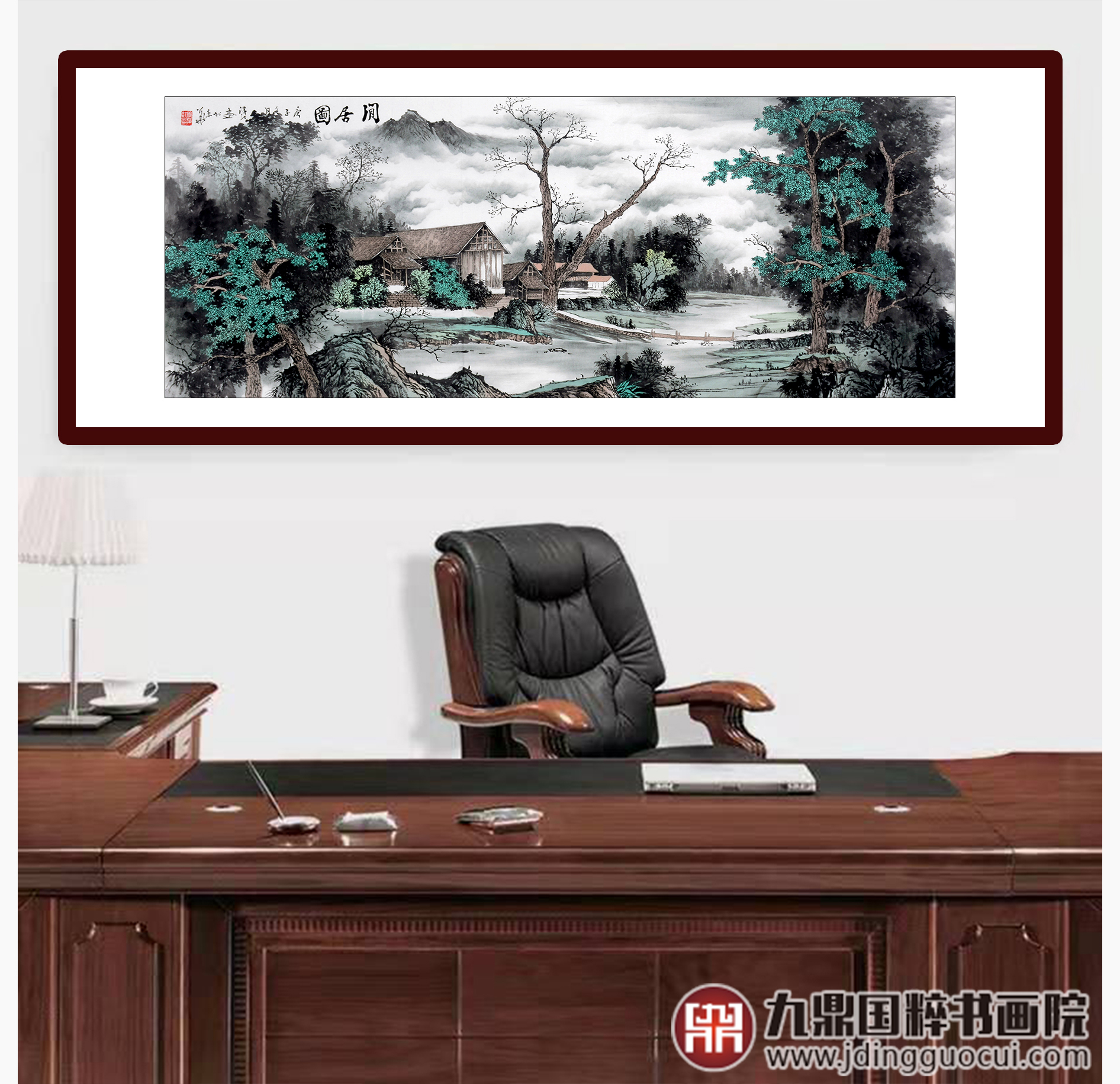 李泽江《闲居图》68*178cm 山水横幅作品 办公室/客厅挂画