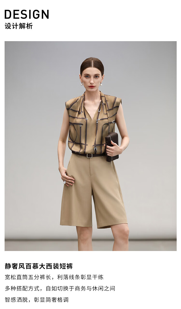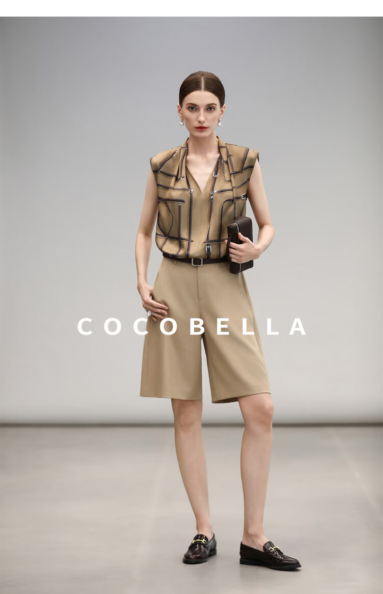COCOBELLA商务通勤挺括五分休闲裤高腰直筒西服短裤SO3047-2