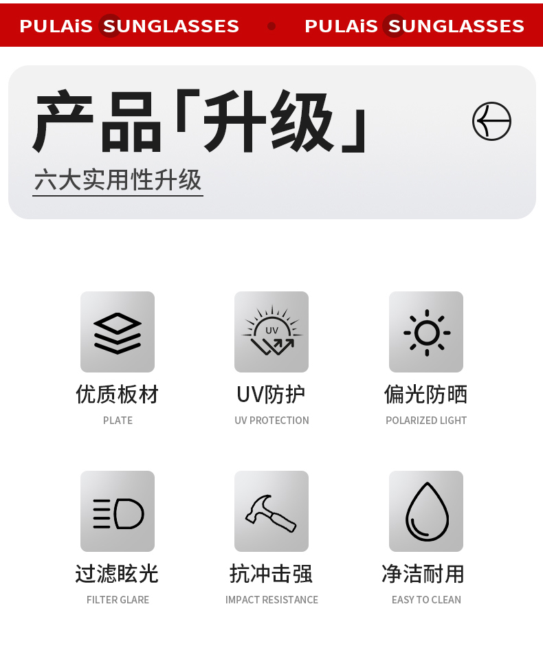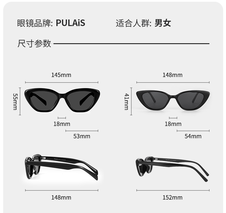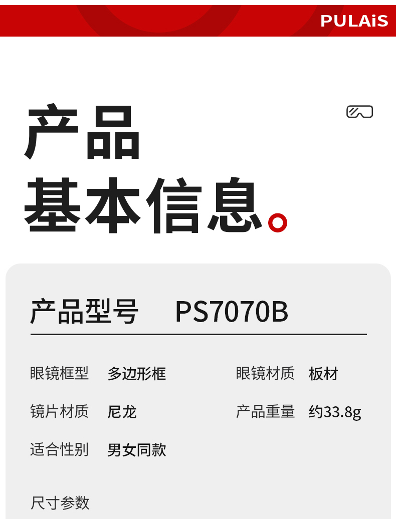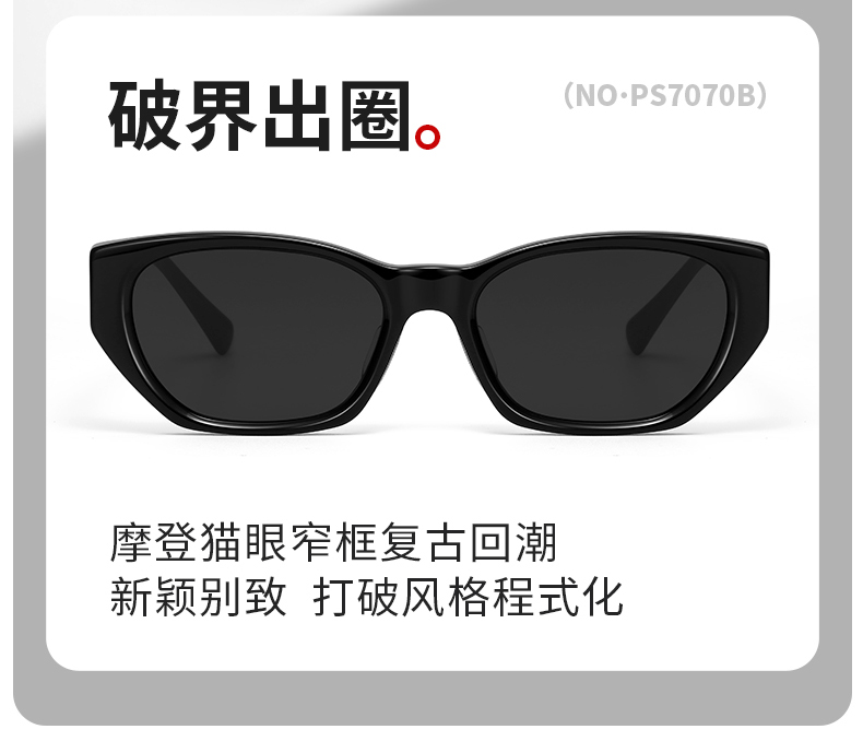 普莱斯新款太阳镜PS7070B 飒酷猫眼一秒出片 板材多边形镜框 TAC偏光镜片 男女通用 双色可选