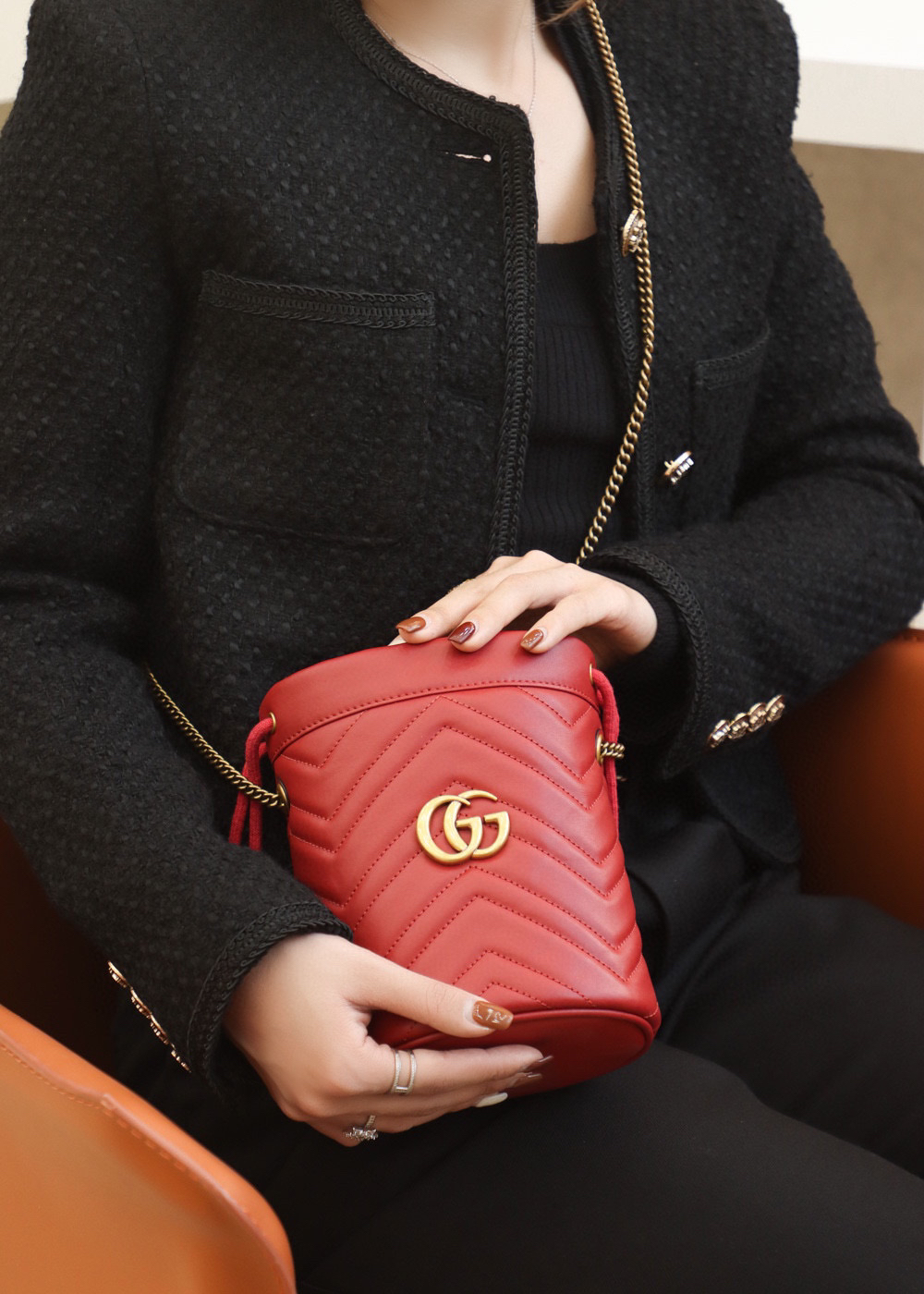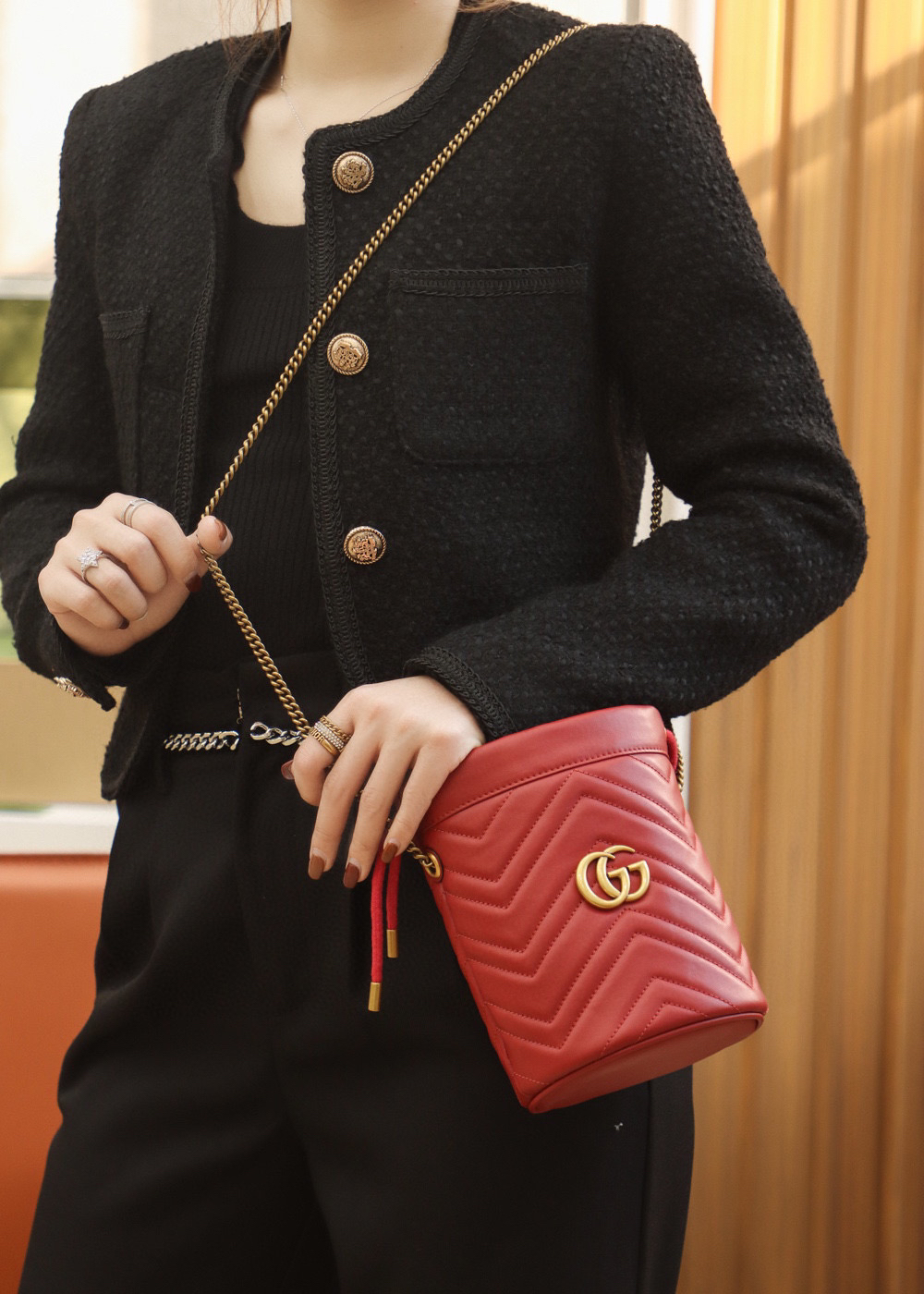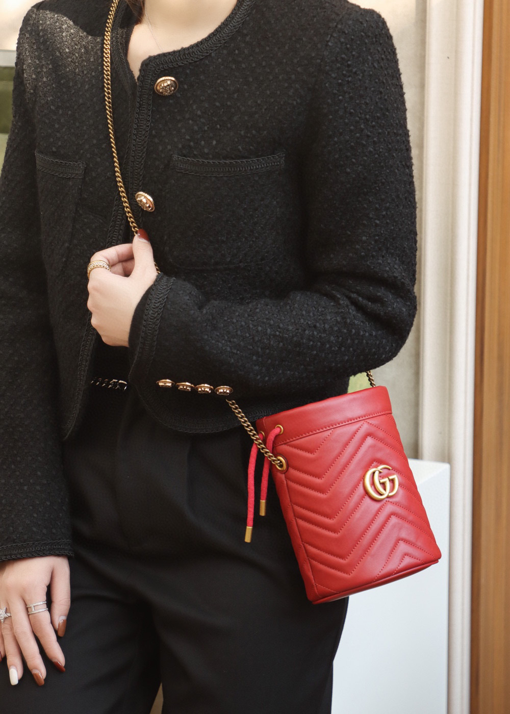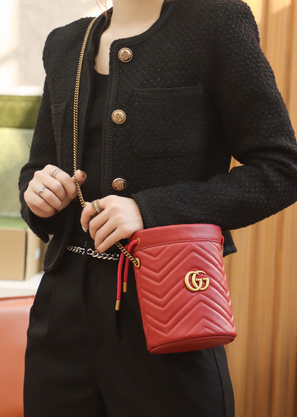 包身正面以经典的姿态𝐆𝐆标志✅五金呈现,