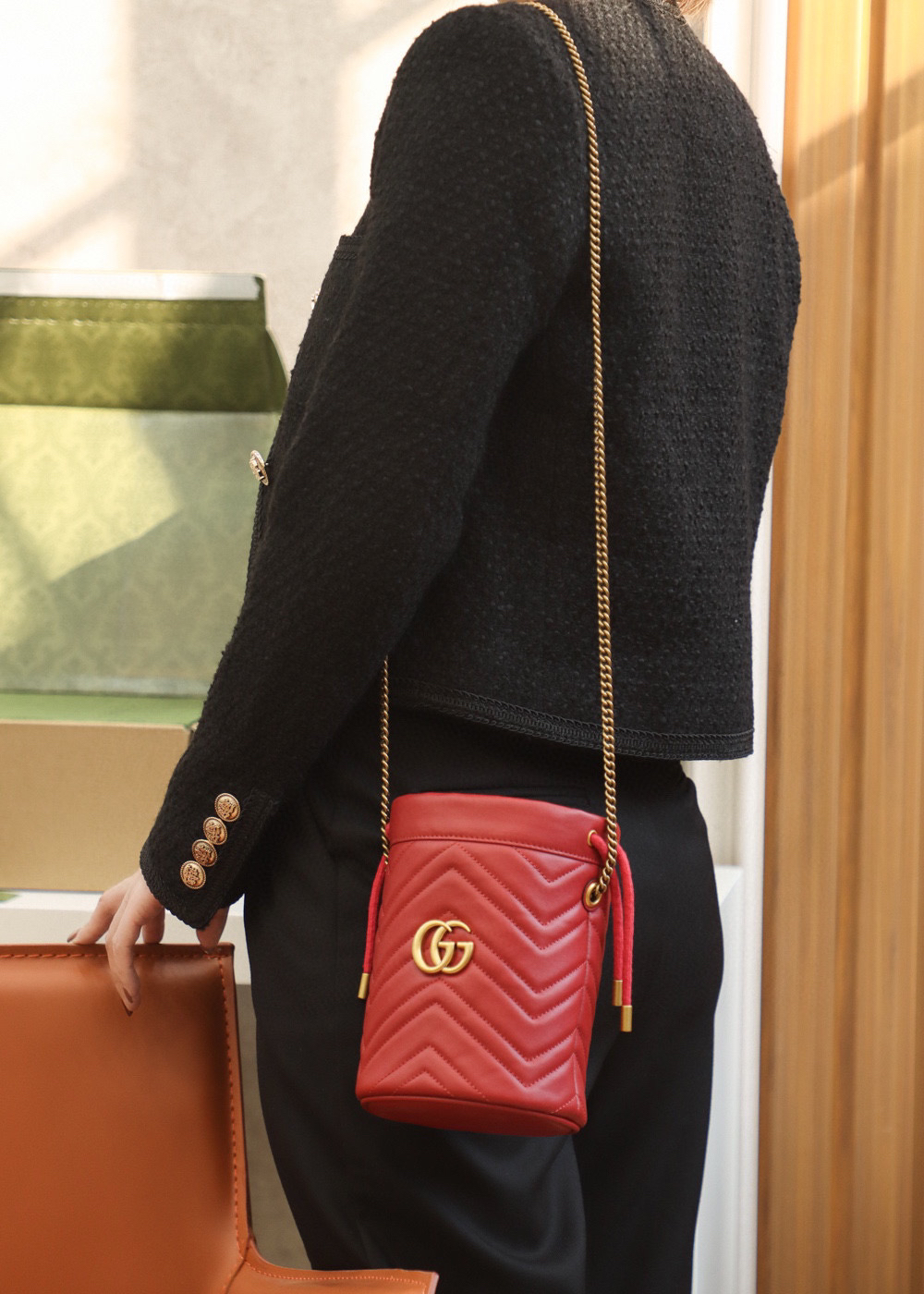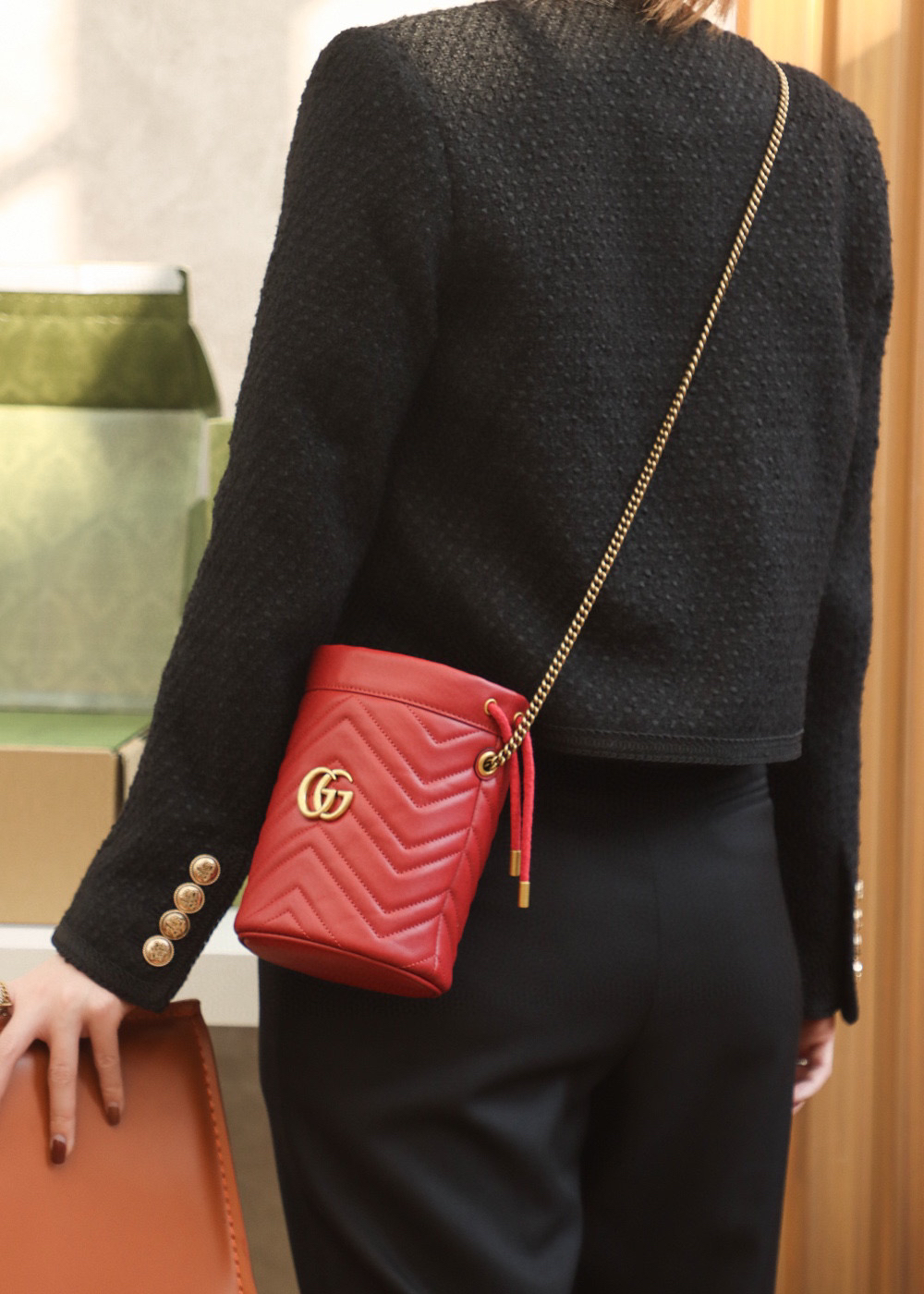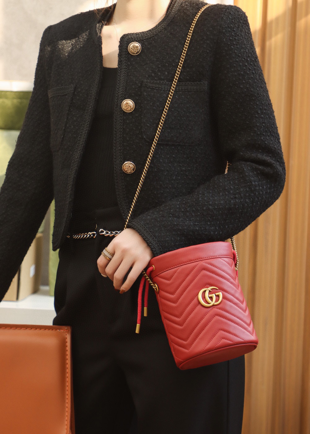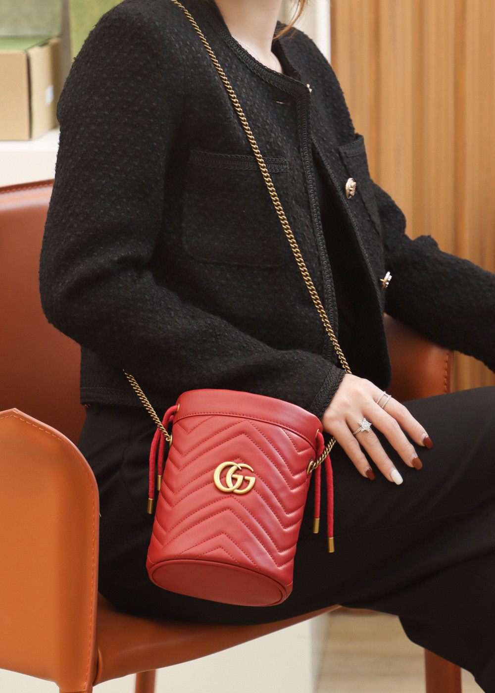 包身正面以经典的姿态𝐆𝐆标志✅五金呈现,