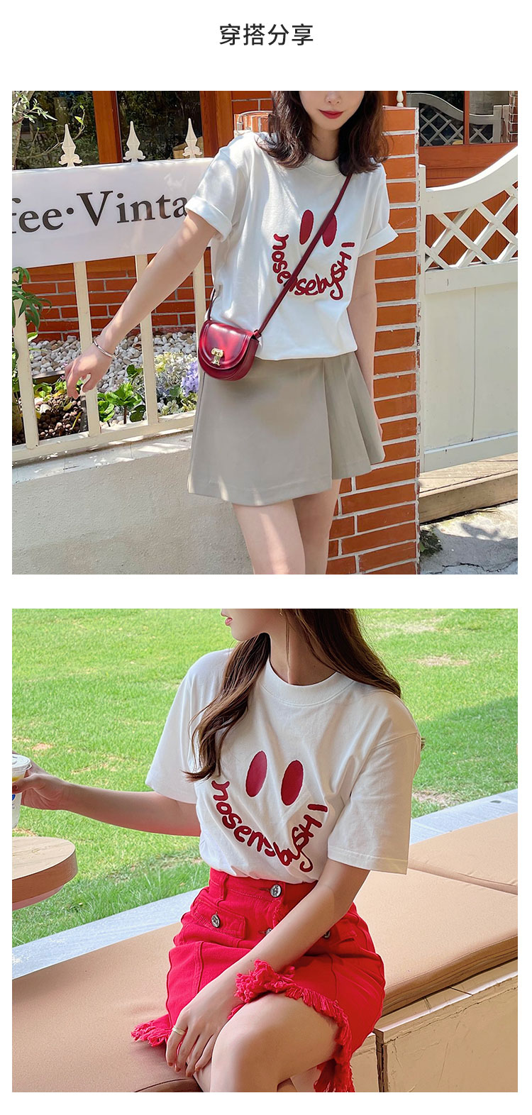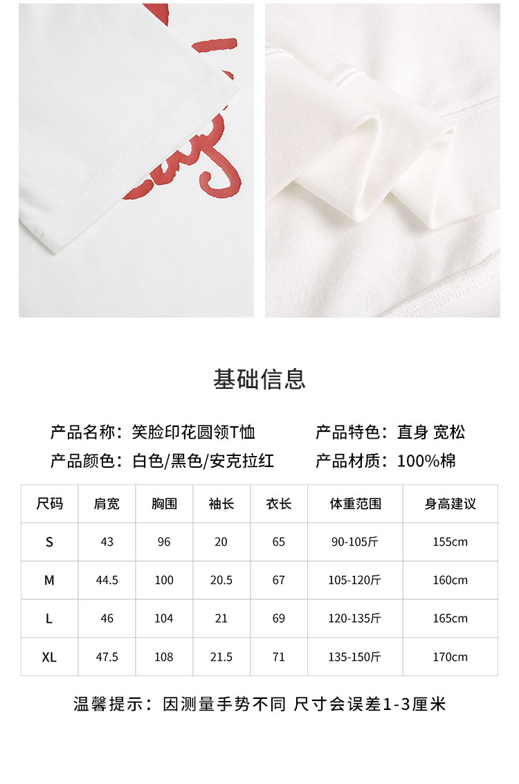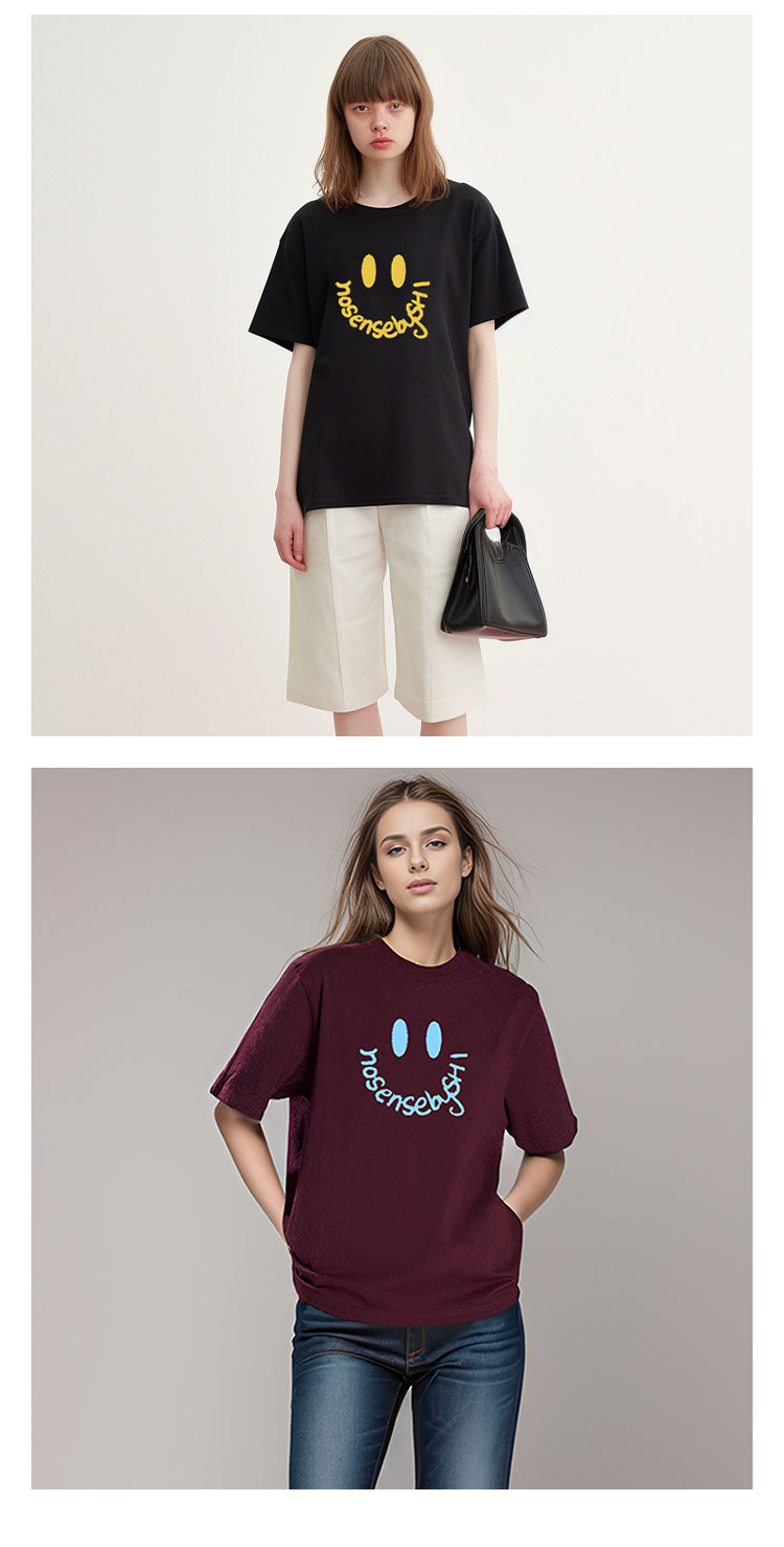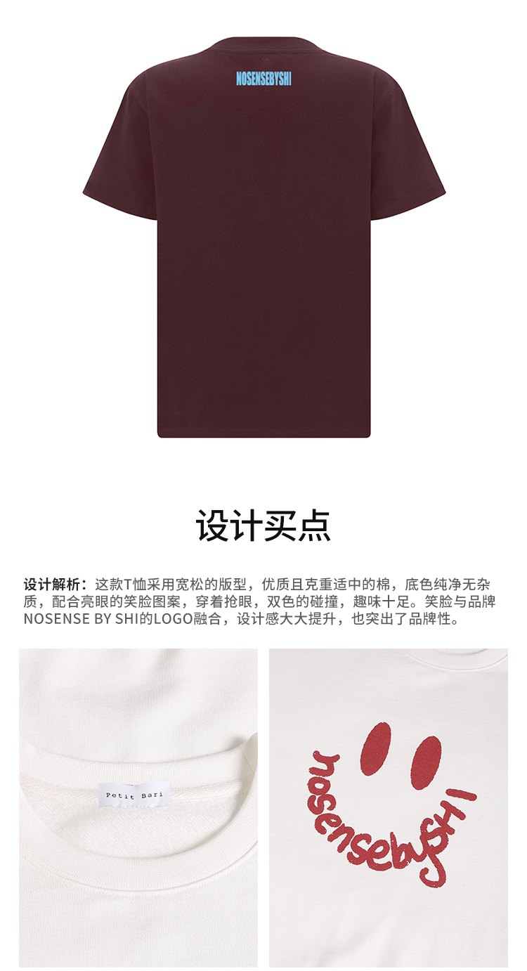 【2件9折】【Petit Bari】(多色)设计师联名款笑脸短袖女士T恤随性帅气