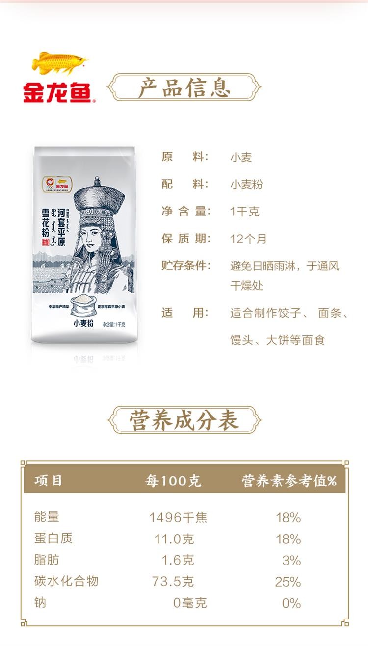 【自营】 金龙鱼 河套平原雪花粉 1kg*3