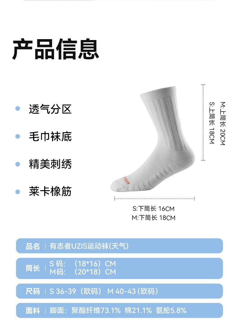 有志者UZIS美式休闲运动长袜男高筒专业篮球跑步训练毛巾底袜天气