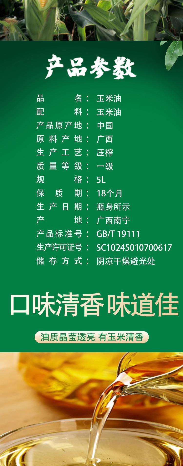 【自营】花家盛世 玉米油5L 非转基因压榨油玉米糁玉米渣新 HJSS004
